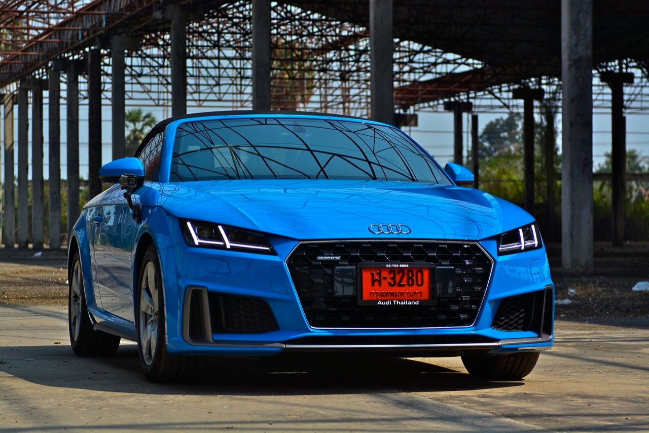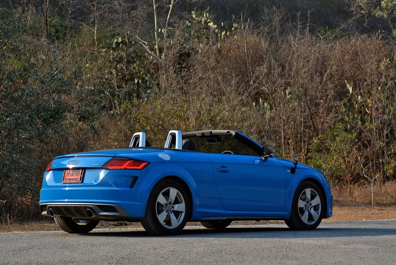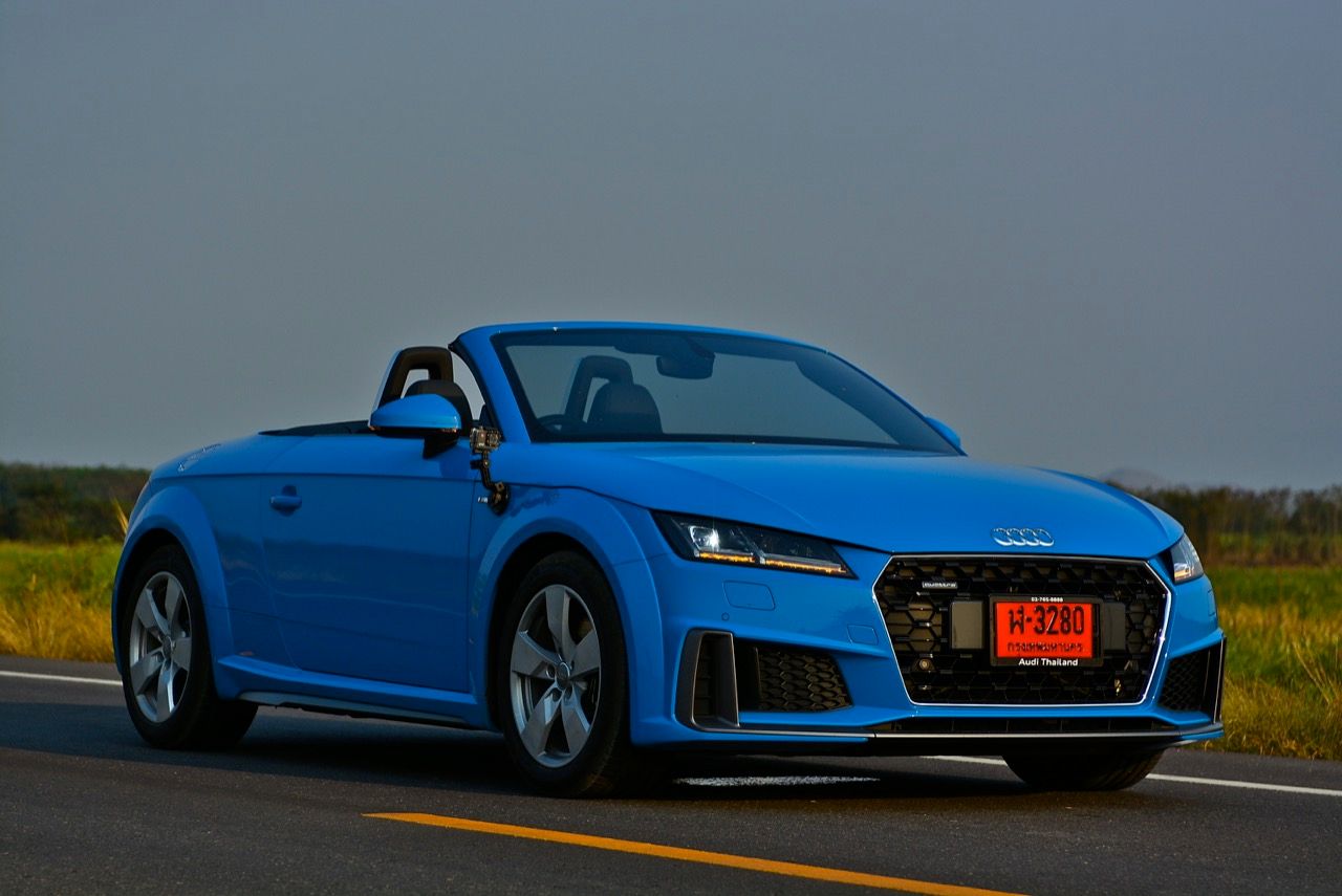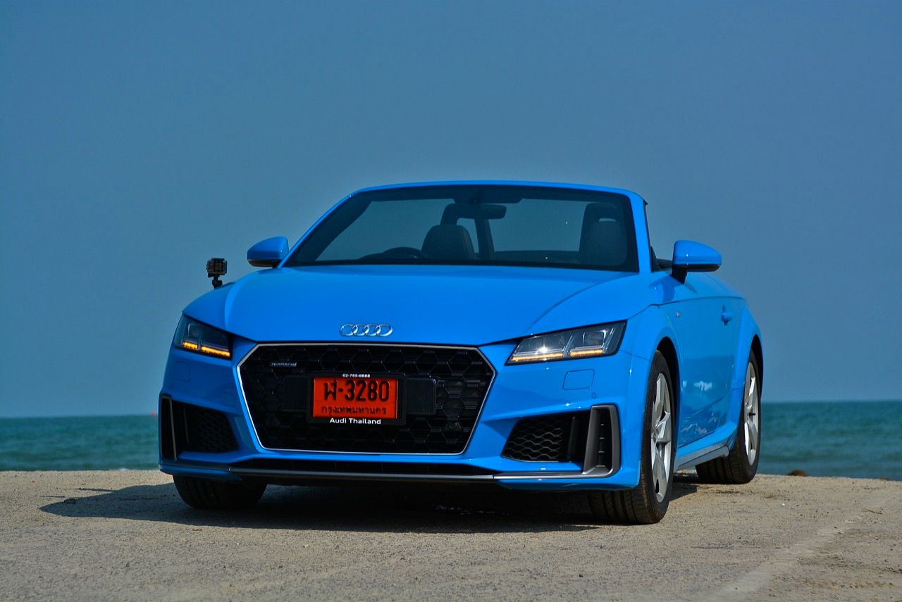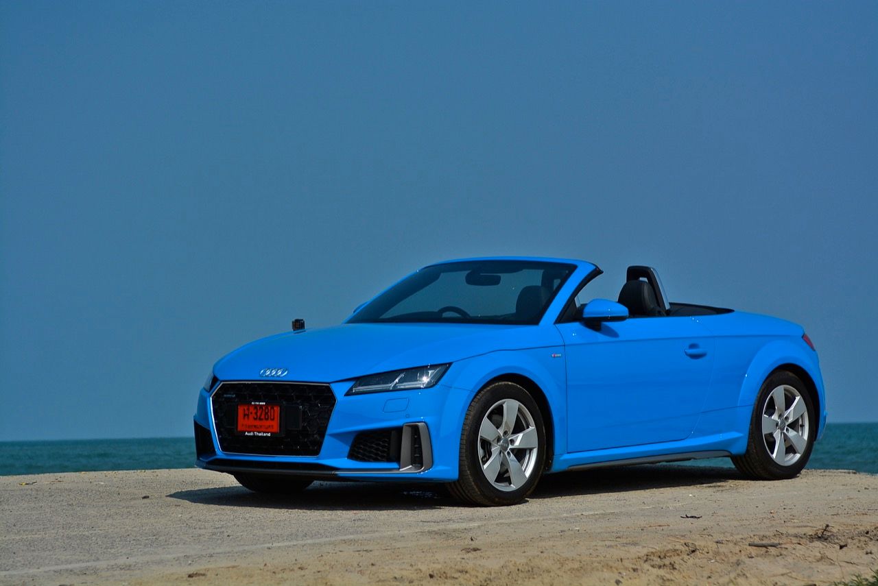 สีฟ้ากระจ่างตา Turbo blue solid (N6PA) TT Roadster เป็นรถเปิดหลังคาผลิตในเยอรมันที่มีค่าตัวถูกที่สุดเมื่อเทียบกับคู่แข่งอย่าง SLC300 / Z4 sDRIVE30i รวมถึง Porsche 718 Boxster ช่วงล่างและพวงมาลัยที่เชื่อมต่อกับระบบขับเคลื่อน 4 ล้อทำให้คุมรถได้ง่าย เกียร์ทำงานราบเรียบ เปลี่ยนอัตราทดเร็วและมีความกระชับ ตัวถังหนักกว่ารุ่น Coupe นิดเดียวทำให้เครื่องยนต์ 2.0 ลิตร เทอร์โบให้ความแรงและอัตราเร่งที่เพียงพอต่อความต้องการ ช่วงล่างเซ็ตมาดีมาก ช่วยลดอาการโคลงโดยไม่เพิ่มความกระด้างเมื่อวิ่งผ่านผิวทางที่ไม่เรียบ ตัวถังขนาดกะทัดรัดของ TT Roadster สัมพันธ์กับห้องโดยสารที่เล็กและแคบแต่ไม่ได้สร้างความรู้สึกอึดอัดเมื่อขับแบบปิดหลังคา ส่วนหลังคาผ้าใบความหนา 2 ชั้นทำงานด้วยไฟฟ้ามีการเปิด-ปิดที่รวดเร็วมากแค่ 10 วินาที ในการพับเก็บหรือกางออก