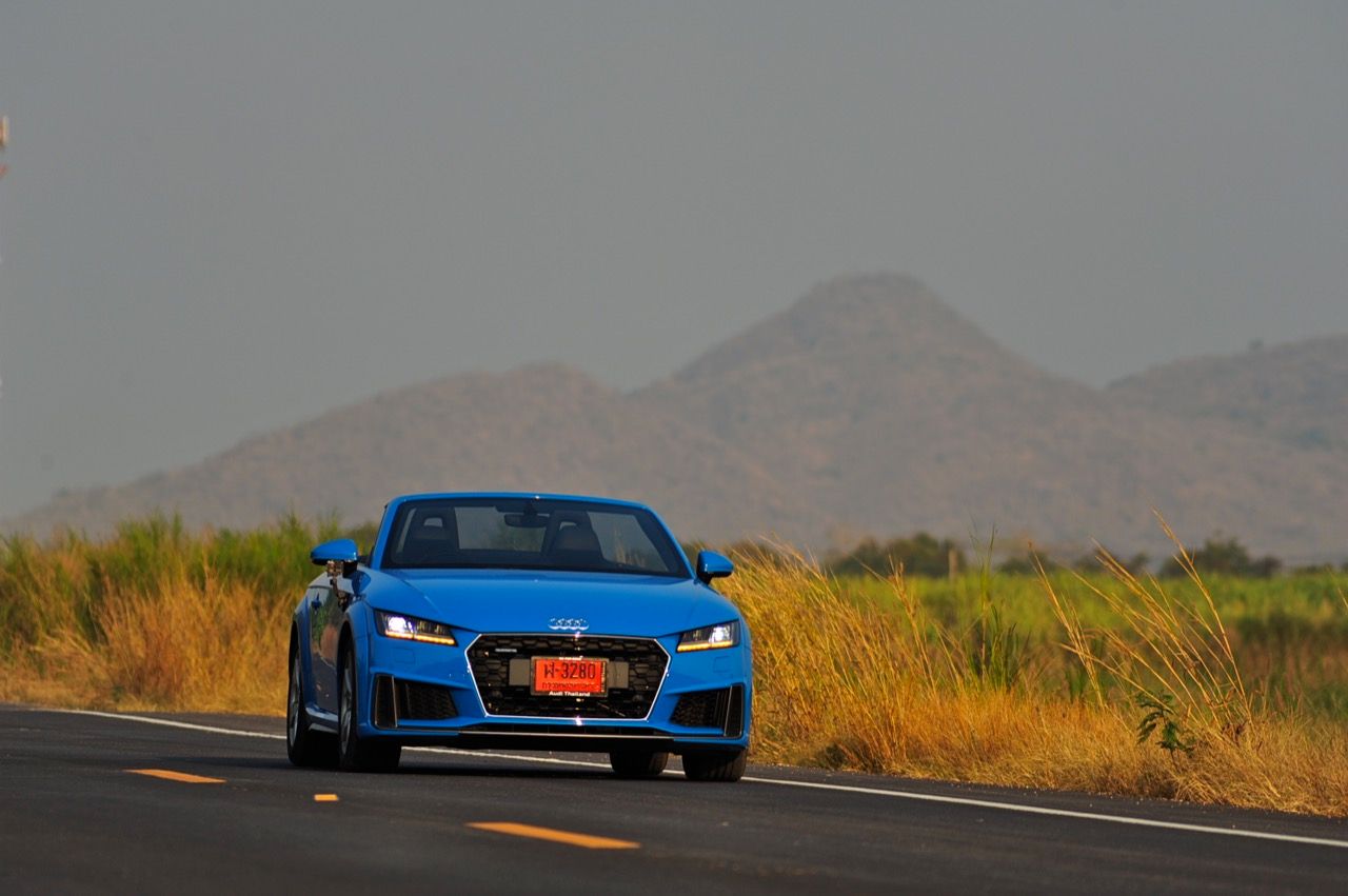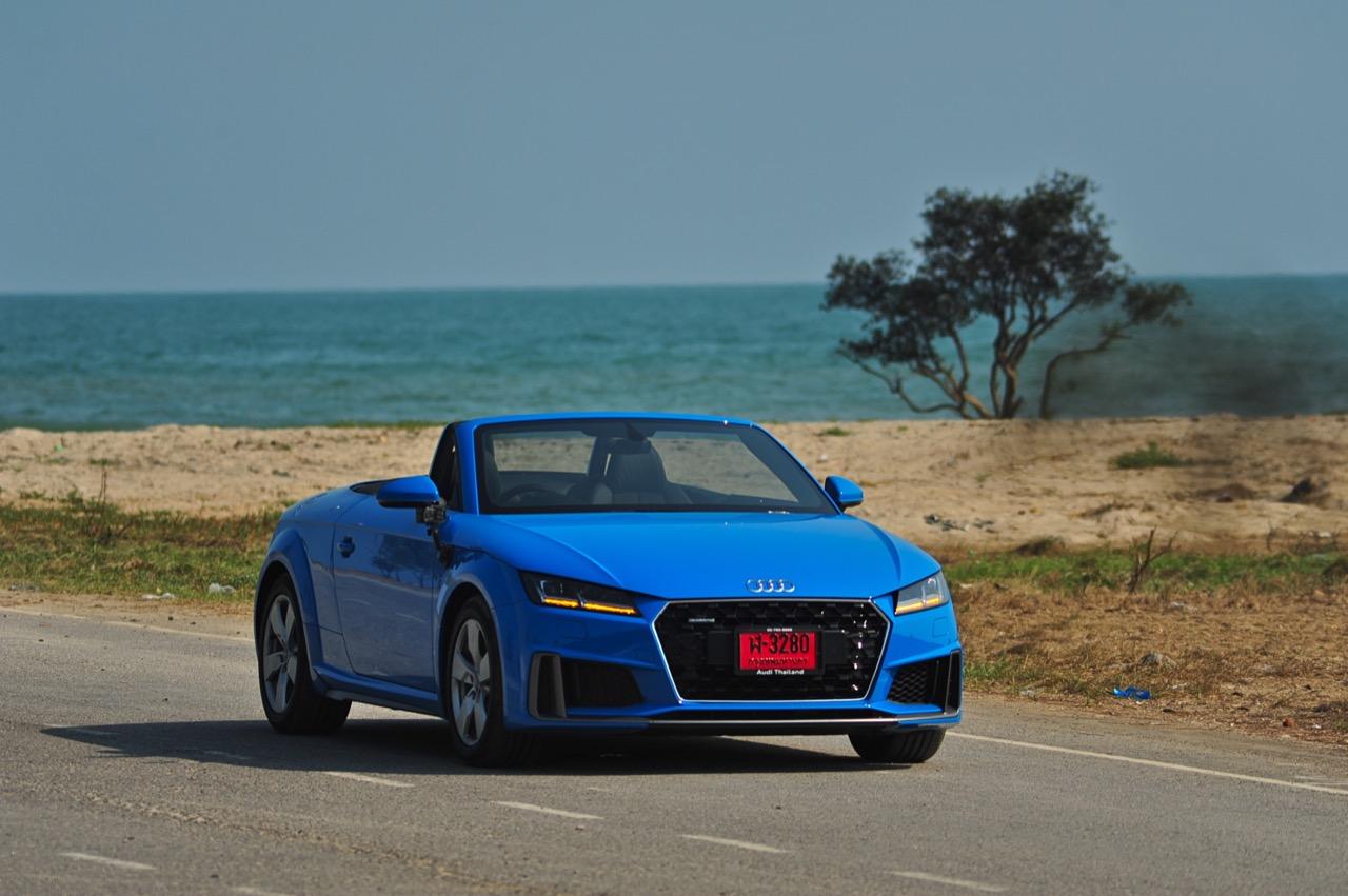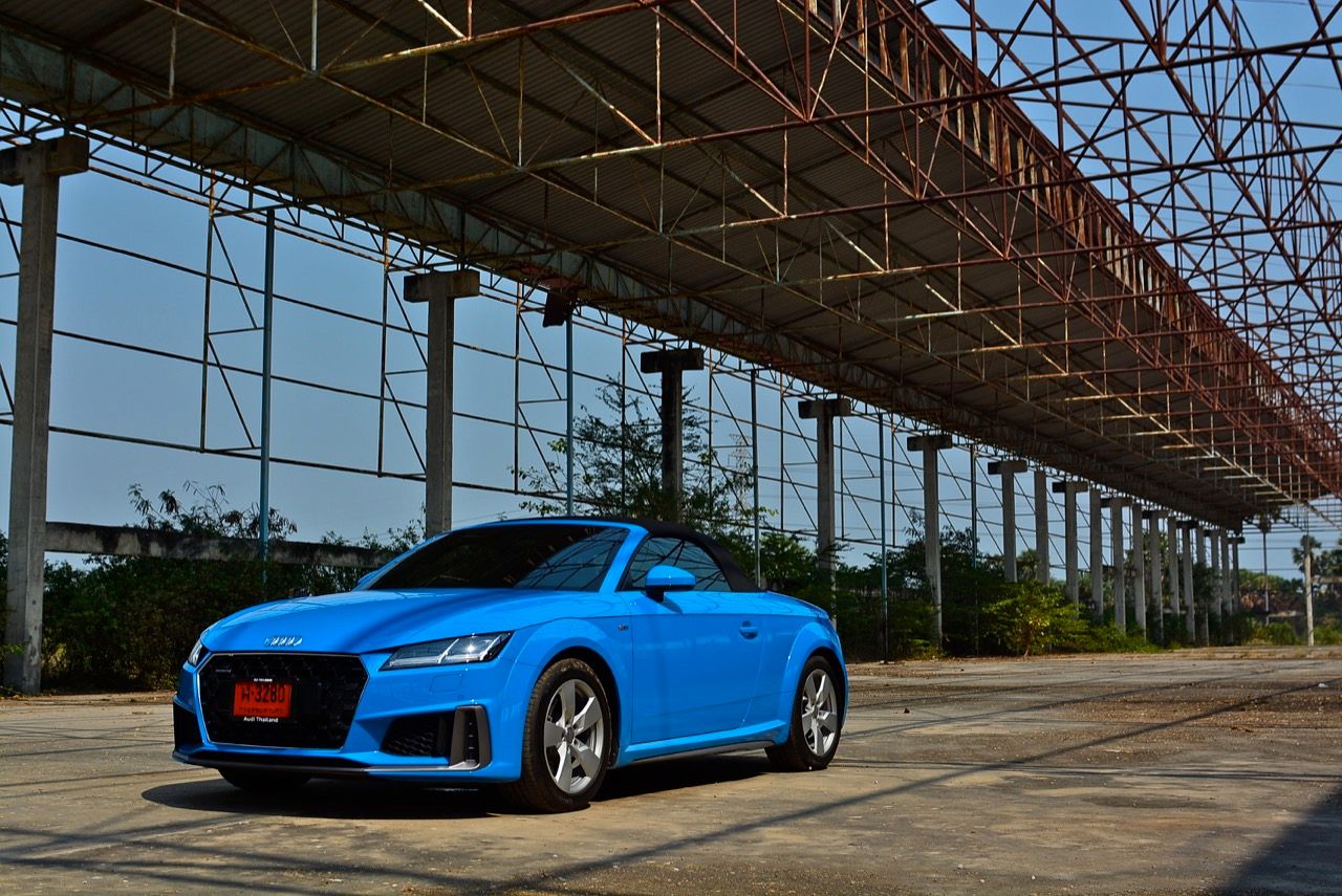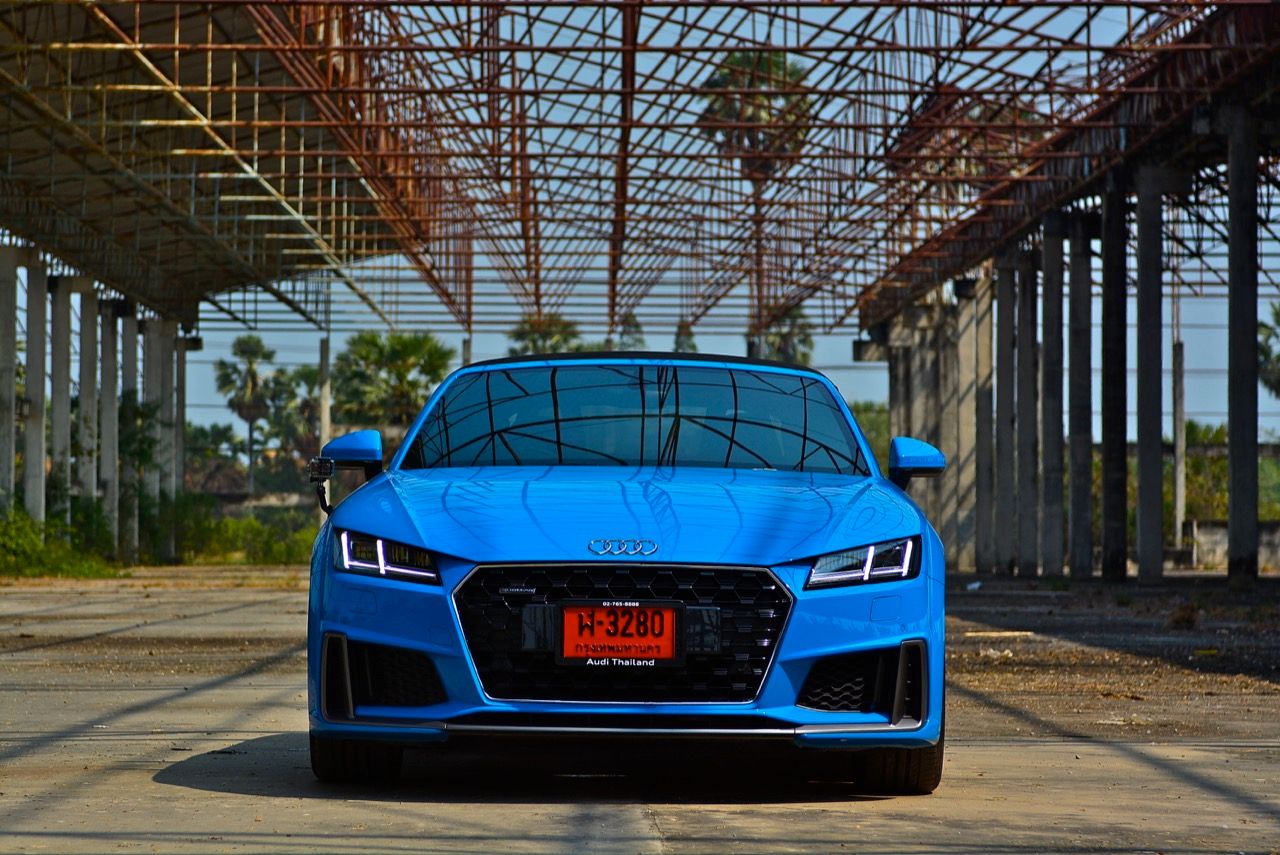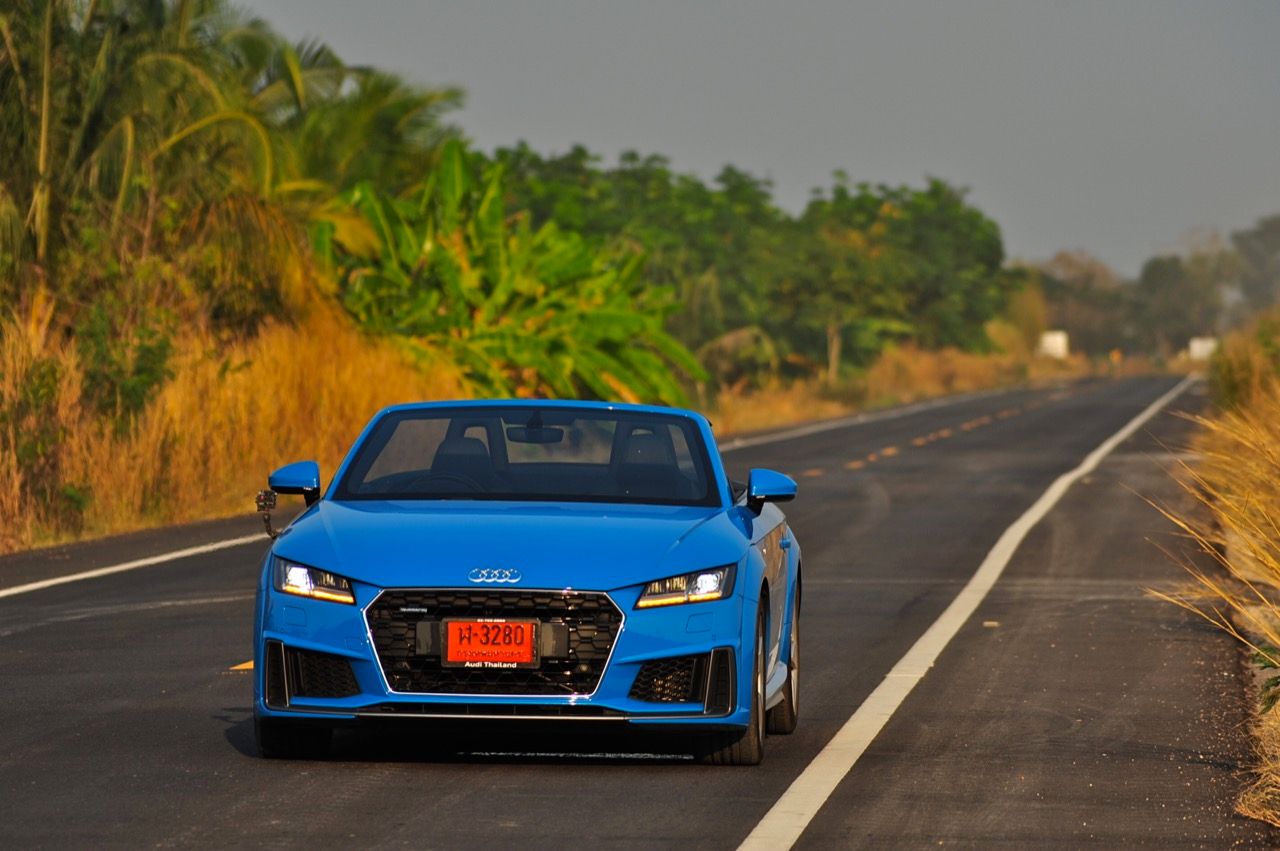 สีฟ้ากระจ่างตา Turbo blue solid (N6PA) TT Roadster เป็นรถเปิดหลังคาผลิตในเยอรมันที่มีค่าตัวถูกที่สุดเมื่อเทียบกับคู่แข่งอย่าง SLC300 / Z4 sDRIVE30i รวมถึง Porsche 718 Boxster ช่วงล่างและพวงมาลัยที่เชื่อมต่อกับระบบขับเคลื่อน 4 ล้อทำให้คุมรถได้ง่าย เกียร์ทำงานราบเรียบ เปลี่ยนอัตราทดเร็วและมีความกระชับ ตัวถังหนักกว่ารุ่น Coupe นิดเดียวทำให้เครื่องยนต์ 2.0 ลิตร เทอร์โบให้ความแรงและอัตราเร่งที่เพียงพอต่อความต้องการ ช่วงล่างเซ็ตมาดีมาก ช่วยลดอาการโคลงโดยไม่เพิ่มความกระด้างเมื่อวิ่งผ่านผิวทางที่ไม่เรียบ ตัวถังขนาดกะทัดรัดของ TT Roadster สัมพันธ์กับห้องโดยสารที่เล็กและแคบแต่ไม่ได้สร้างความรู้สึกอึดอัดเมื่อขับแบบปิดหลังคา ส่วนหลังคาผ้าใบความหนา 2 ชั้นทำงานด้วยไฟฟ้ามีการเปิด-ปิดที่รวดเร็วมากแค่ 10 วินาที ในการพับเก็บหรือกางออก