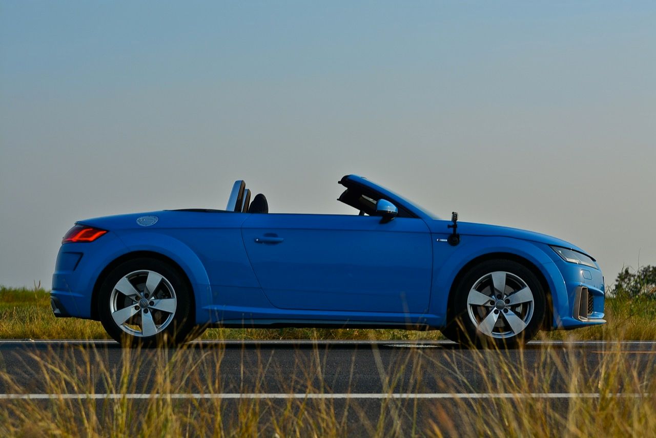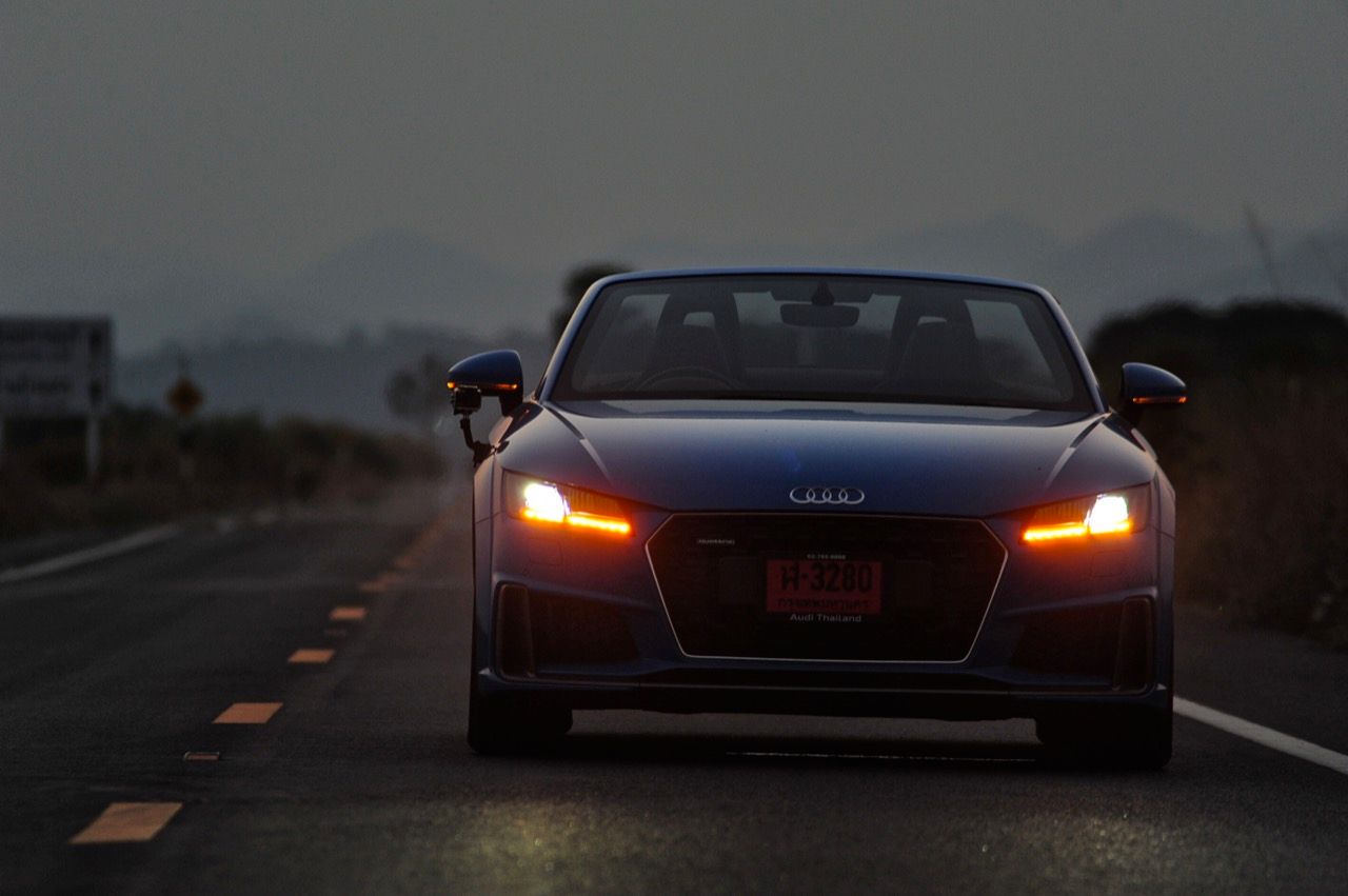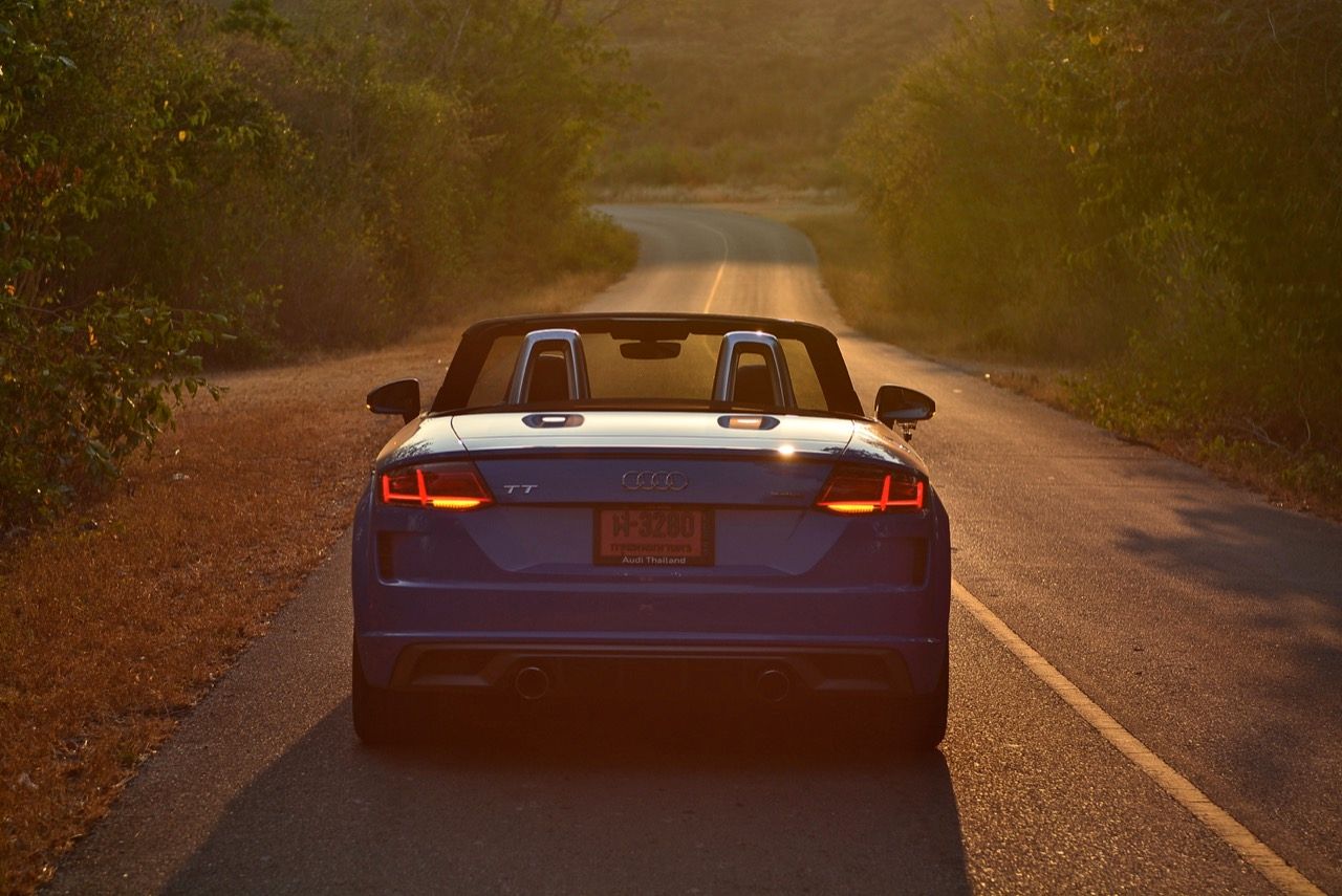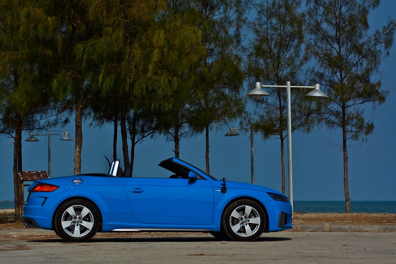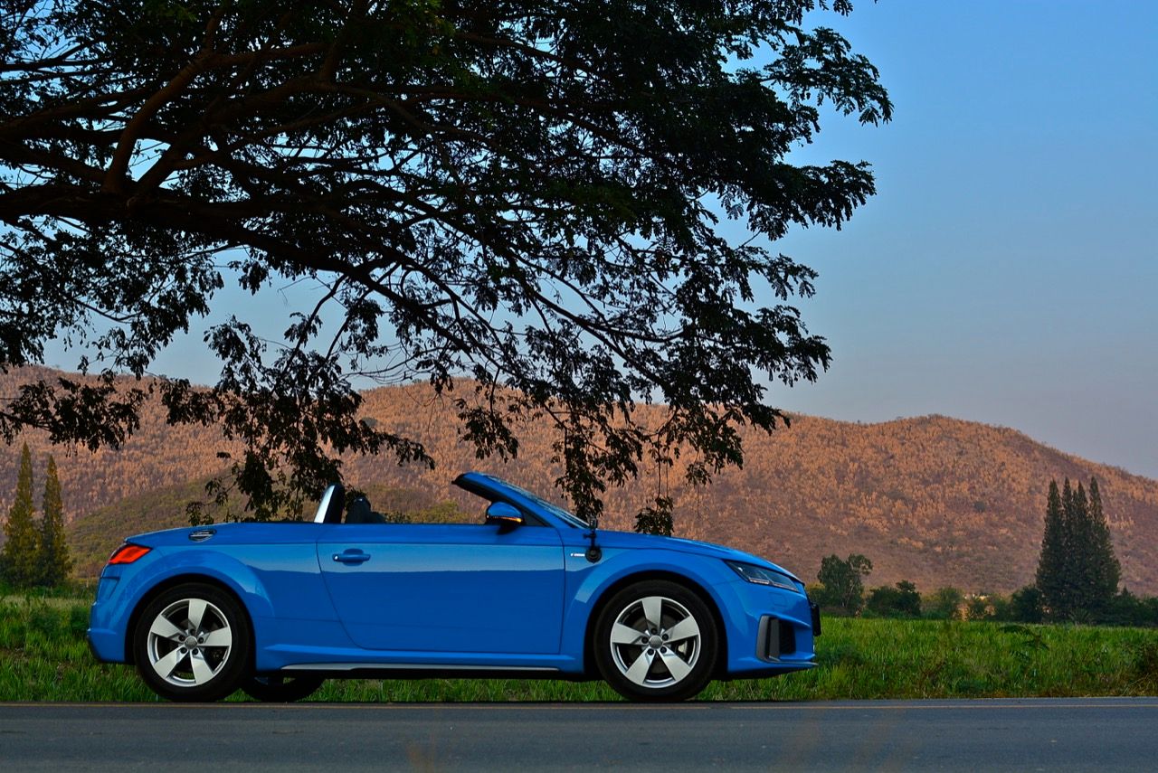 สีฟ้ากระจ่างตา Turbo blue solid (N6PA) TT Roadster เป็นรถเปิดหลังคาผลิตในเยอรมันที่มีค่าตัวถูกที่สุดเมื่อเทียบกับคู่แข่งอย่าง SLC300 / Z4 sDRIVE30i รวมถึง Porsche 718 Boxster ช่วงล่างและพวงมาลัยที่เชื่อมต่อกับระบบขับเคลื่อน 4 ล้อทำให้คุมรถได้ง่าย เกียร์ทำงานราบเรียบ เปลี่ยนอัตราทดเร็วและมีความกระชับ ตัวถังหนักกว่ารุ่น Coupe นิดเดียวทำให้เครื่องยนต์ 2.0 ลิตร เทอร์โบให้ความแรงและอัตราเร่งที่เพียงพอต่อความต้องการ ช่วงล่างเซ็ตมาดีมาก ช่วยลดอาการโคลงโดยไม่เพิ่มความกระด้างเมื่อวิ่งผ่านผิวทางที่ไม่เรียบ ตัวถังขนาดกะทัดรัดของ TT Roadster สัมพันธ์กับห้องโดยสารที่เล็กและแคบแต่ไม่ได้สร้างความรู้สึกอึดอัดเมื่อขับแบบปิดหลังคา ส่วนหลังคาผ้าใบความหนา 2 ชั้นทำงานด้วยไฟฟ้ามีการเปิด-ปิดที่รวดเร็วมากแค่ 10 วินาที ในการพับเก็บหรือกางออก