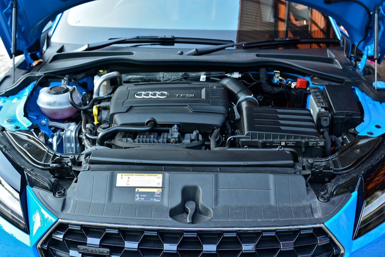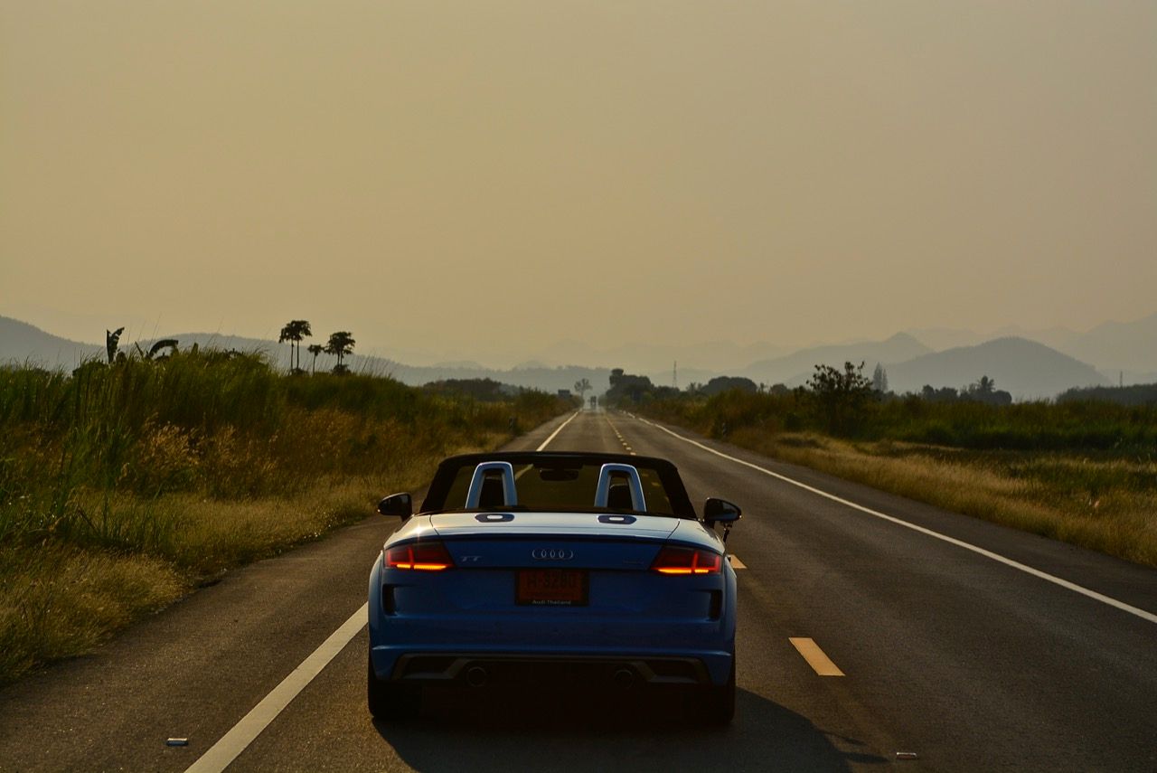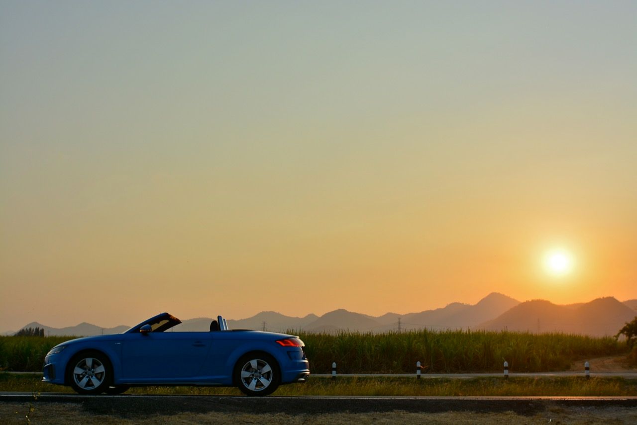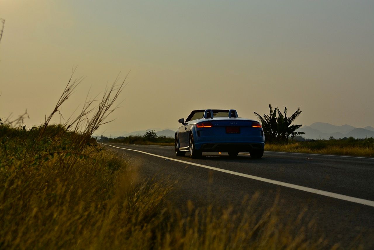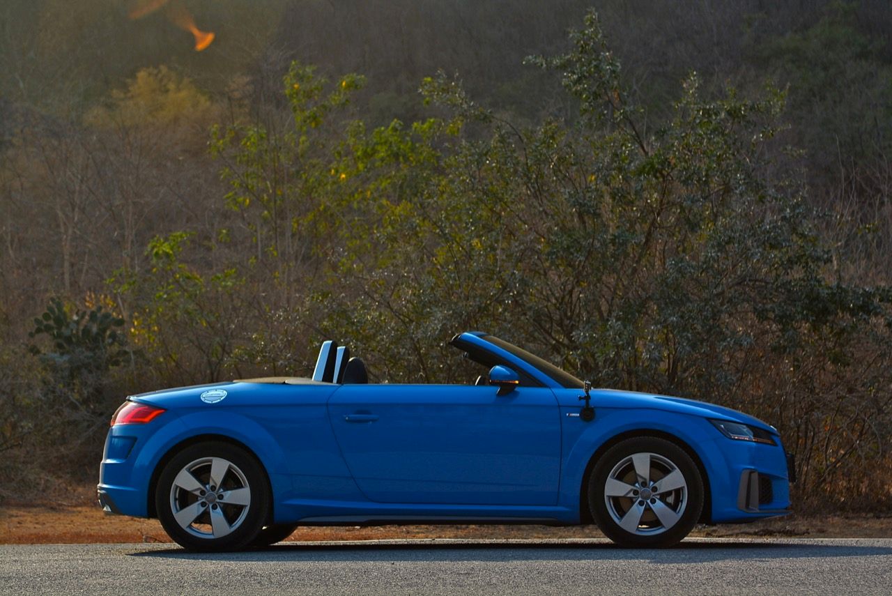 สีฟ้ากระจ่างตา Turbo blue solid (N6PA) TT Roadster เป็นรถเปิดหลังคาผลิตในเยอรมันที่มีค่าตัวถูกที่สุดเมื่อเทียบกับคู่แข่งอย่าง SLC300 / Z4 sDRIVE30i รวมถึง Porsche 718 Boxster ช่วงล่างและพวงมาลัยที่เชื่อมต่อกับระบบขับเคลื่อน 4 ล้อทำให้คุมรถได้ง่าย เกียร์ทำงานราบเรียบ เปลี่ยนอัตราทดเร็วและมีความกระชับ ตัวถังหนักกว่ารุ่น Coupe นิดเดียวทำให้เครื่องยนต์ 2.0 ลิตร เทอร์โบให้ความแรงและอัตราเร่งที่เพียงพอต่อความต้องการ ช่วงล่างเซ็ตมาดีมาก ช่วยลดอาการโคลงโดยไม่เพิ่มความกระด้างเมื่อวิ่งผ่านผิวทางที่ไม่เรียบ ตัวถังขนาดกะทัดรัดของ TT Roadster สัมพันธ์กับห้องโดยสารที่เล็กและแคบแต่ไม่ได้สร้างความรู้สึกอึดอัดเมื่อขับแบบปิดหลังคา ส่วนหลังคาผ้าใบความหนา 2 ชั้นทำงานด้วยไฟฟ้ามีการเปิด-ปิดที่รวดเร็วมากแค่ 10 วินาที ในการพับเก็บหรือกางออก