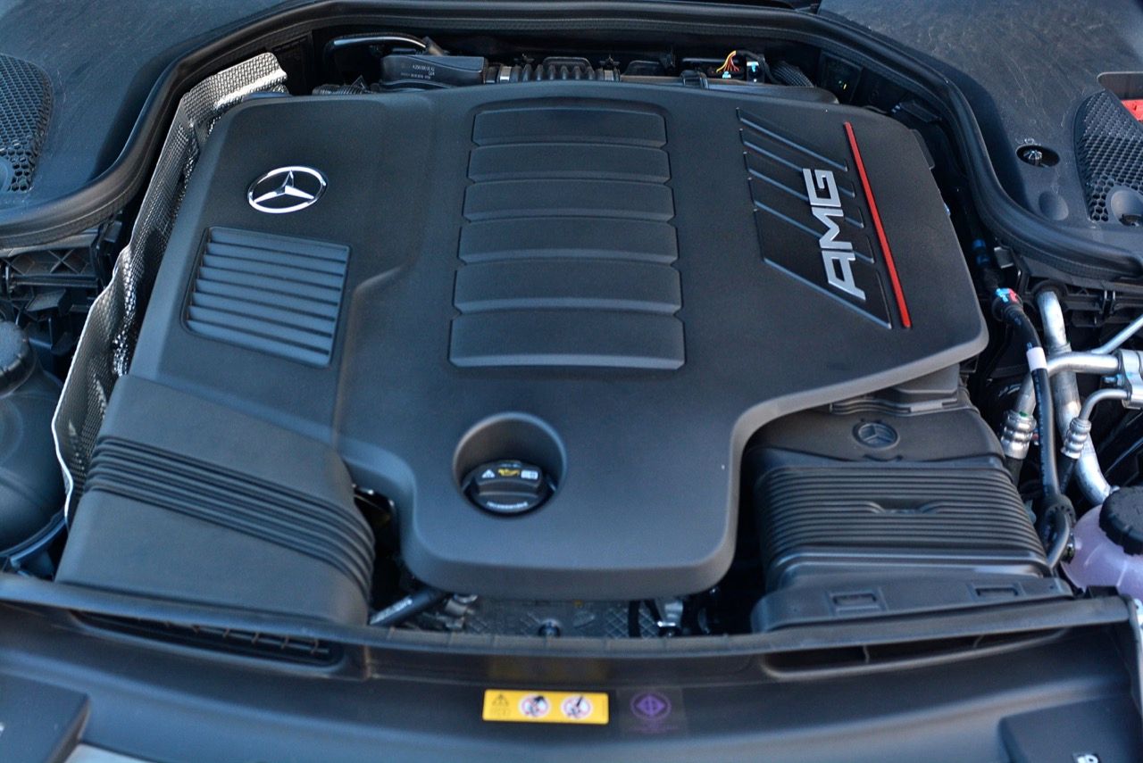 หัวใจของเสี่ยเยาวราชคันนี้คือ เครื่องยนต์เบนซินรุ่นใหม่ล่าสุดจาก AMG ที่ประจำการอยู่ในรถสปอร์ตรหัส 53 ทั้งหมด เป็นแบบแถวเรียง 6 กระบอกสูบ อัดอากาศด้วยเทอร์โบและอินเตอร์คูลเลอร์ นี่คือเครื่องยนต์ 6 สูบเรียงรุ่นใหม่ล่าสุดของแบรนด์ตราดาว ที่ทำออกมาเพื่อต่อกรกับเครื่อง 6 สูบเรียงประสิทธิภาพสูงของ BMW M ระบบ EQ Boost ของ Mercedes ใช้ไดสตาร์ตทำหน้าที่เป็นมอเตอร์สตาร์ตด้วย ISG มอเตอร์ไฟฟ้ามีกำลัง 16 กิโลวัตต์ กับแรงบิด 250 นิวตัน-เมตร โดยวางแทรกอยู่ในชุดเกียร์ 9G-Tronic คอยเสริมแรงและรับหน้าที่ส่งกำลังไฟฟ้าไปหมุนปั๊มน้ำกับคอมเพรสเซอร์แอร์ ทำให้ไม่มีความจำเป็นจะต้องใช้สายพานหน้าเครื่องยนต์อีกต่อไป ช่วยลดกำลังที่สูญเสียไปกับแรงเสียดทาน ช่วยทำให้เครื่องยนต์ 6 สูบเรียงของ AMG ที่ประจำการอยู่ใน CLS 53 /E53 4Door / GT53 4Door และ E53 Coupe มีขนาดที่สั้นลง เมื่อทำงานร่วมแกนกับระบบไฮบริดจิ๋วขนาด 48 โวลต์ E-Compressor หรือที่ Mercedes เรียกว่า EQ Boost ช่วยลดอาการรอรอบหรือเทอร์โบแลคได้ดี เมื่อกดคันเร่งเต็มที่ แรงบิดสูงสุดจะมาเร็วมากในเวลาแค่ 0.2 วินาที ตั้งแต่ยังไม่ถึง 2,000 รอบต่อนาที แรงบิดก็เทออกมาจนเกือบหมดแล้ว วิศวกรของ AMG ในแผนกเครื่องยนต์ ลงมือจูนเพื่อการตอบสนองที่รวดเร็วทันใจ ป้องกันอาการเทอร์โบแลคหรืออาการรอรอบ โดยร่วมมือพัฒนากับค่าย Audi และ Bentley เพื่อปรับปรุงระบบ E-Compressor (EQ Boost) ซึ่งถูกใช้เพื่อลดอาการรอรอบในเครื่องยนต์เบนซิน โดยทำงานร่วมกับ ISG ตัว eZV ประกบอยู่กับเทอร์โบที่ต่อเข้ากับท่อไอเสีย มันสามารถเร่งรอบการทำงานได้ถึง 70,000 รอบต่อนาที ในเวลาเพียงแค่ 0.3 วินาที ช่วยเพิ่มบูสให้กับเครื่องยนต์ในย่าน 1,000-3,000 รอบต่อนาที โดยไม่มีข้อจำกัดในด้านของรอบเครื่องยนต์และโหลด