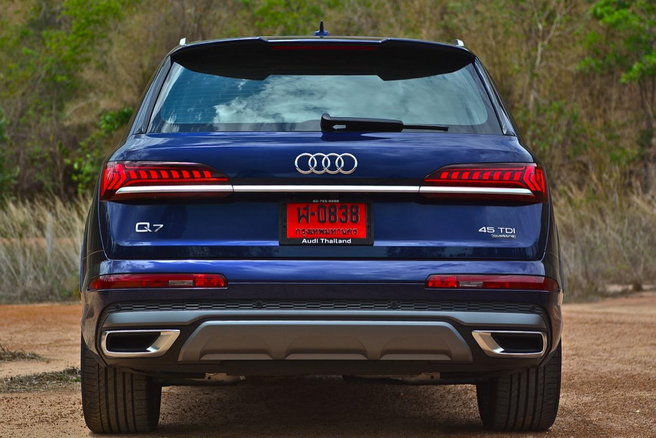 Q7 ดีเซล รุ่นสูงสุดที่ขายในประเทศ (45 TDI Quattro S Line) เป็นรถที่มีความละเอียดอ่อนและสุดยอดในหลายด้าน เริ่มจากขนาดตัวถังที่ใหญ่โตโอ่โถงสะดวกสบายและเงียบ ระบบขับเคลื่อนที่มีประสิทธิภาพสูง ทั้งเครื่องยนต์ดีเซลกับเกียร์ 8 สปีด ผนวกกับช่วงล่างถุงลมที่ถูกจูนมาอย่างดีจากมืออาชีพซึ่งมีความเข้าอกเข้าใจไดนามิกที่ดีของการขับขี่ สำหรับบริษัทที่ให้ความสำคัญกับการขับอย่าง Audi ทุกอย่างต้องดีกว่าเสมอ หลังจาก Q7 รุ่นก่อนปรับโฉมทำตลาดได้ดีและได้รับความนิยมจากลูกค้าไทยพอสมควร การเปิดตัว Q7 ใหม่ท่ามกลางสถานการณ์ของการแพร่ระบาดจากไวรัสโควิดทำให้ Audi Thailand ต้องปรับเปลี่ยนแผนงานประจำปีใหม่หมด Q7 รุ่นที่ผ่านมาประสบความสำเร็จจากเสียงตอบรับของลูกค้าที่บรรยายถึงการขับขี่ที่สุดยอดของมัน จากการที่เป็นรถเอสยูวีคันใหญ่ หน้าตาทันสมัยพร้อมอุปกรณ์ภายในที่เน้นความหรูหราเพื่อจับลูกค้ามหาเศรษฐี แม้จะมีขนาดเท่ากับ New X5 และ New GLE แต่ Audi สวยดุกว่าในด้านของหน้าตาที่เอาจริงเอาจัง ตัวถังสีน้ำเงิน กระจังหน้าทรง 8 เหลี่ยมขนาดใหญ่ที่โดนใจคนรุ่นใหม่ Audi พยายามวางตำแหน่งของ Q7 ให้มีการขับที่ใกล้เคียงกับรถรุ่นพี่อย่าง Porsche Cayenne ด้วยระบบขับเคลื่อน แชสซีและอุปกรณ์ภายในยุคใหม่ของแบรนด์ 4 ห่วง ราคา 5.29 ล้านบาท ของมันก็ยังถูกกว่า Porsche Cayenne รุ่นต่ำสุดอีกด้วย