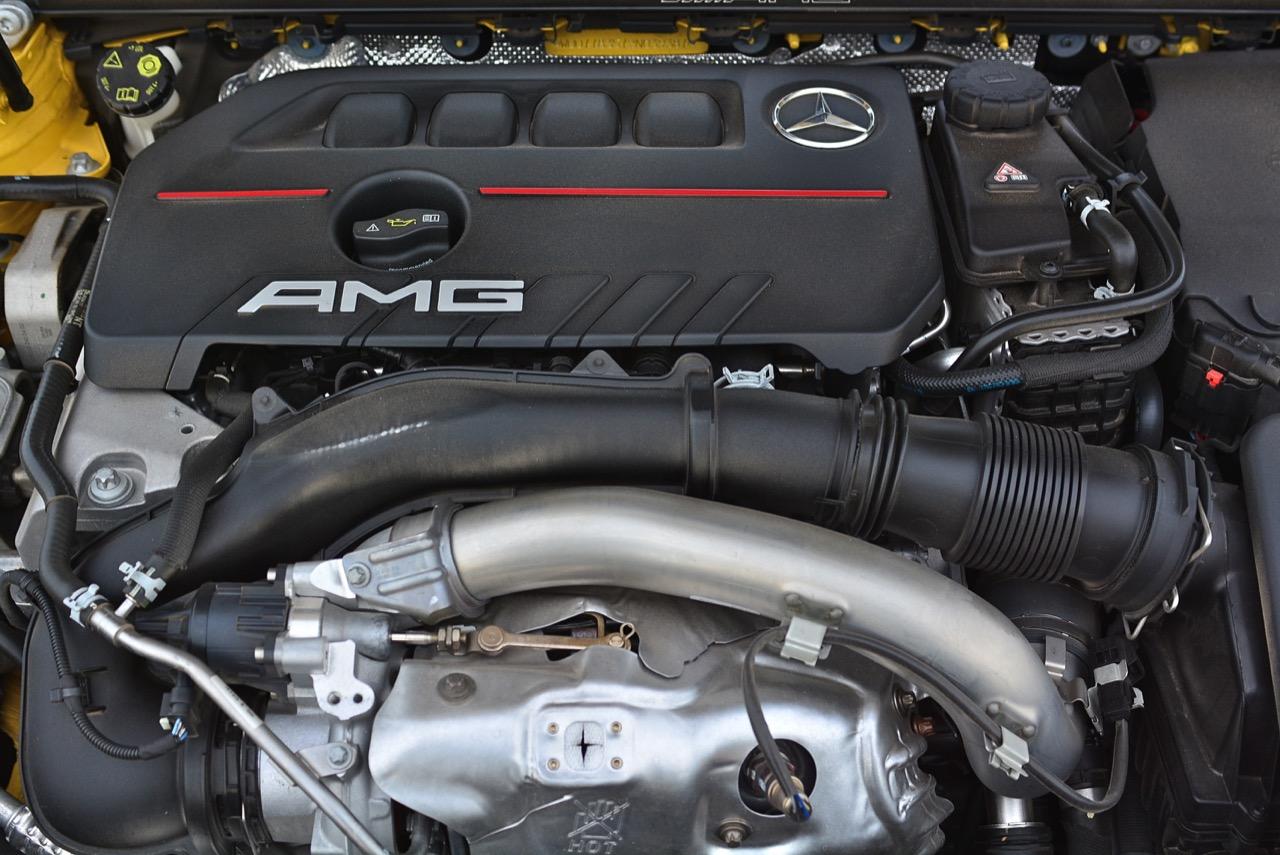 AMG CLA35 สี่ประตูพร้อมระบบขับเคลื่อนสี่ล้อ 4MATIC วางเครื่องยนต์เบนซิน แบบแถวเรียง 4 สูบ เทอร์โบชาร์จแปรผัน twin-scroll turbocharger รหัสเครื่องยนต์ M260 ขนาด 2.0 ลิตร พร้อมระบบ CAMTRONIC variable valve control จ่ายเชื้อเพลิงด้วยหัวฉีดแรงดันสูง piezo injectors multi-spark ignition ผลิตกำลังได้ 225 กิโลวัตต์ หรือ 306 แรงม้า กับแรงบิดสาแก่ใจวัยแรงที่ 400 นิวตันเมตร แจกจ่ายแรงฉุดลากให้กับล้อทั้งสี่ผ่านระบบขับเคลื่อน 4 ล้อ 4MATIC ที่เชื่อมต่อกับเกียร์ทวินคลัตช์ 7 สปีด AMG SPEEDSHIFT DCT 7G dual-clutch transmission โหมดการขับเคลื่อนปรับผ่านปุ่ม DYNAMIC SELECT พร้อมโปรแกรมใหม่ 'Slippery' เริ่มจาก Comfort, Sport, Sport + และ Individual ที่ผู้ขับสามารถปรับตั้งการทำงานและการตอบสนองแบบแยกย่อยของเครื่องยนต์ เกียร์ และพวงมาลัยไฟฟ้า ตัวเลขสมรรถนะ Mercedes-AMG CLA35 4MATIC เร่งจากหยุดนิ่งถึง 100 กม./ชม. ใน 4.9 วินาที ความเร็วสูงสุดถูกจำกัดด้วยระบบอิเล็กทรอนิกส์เอาไว้ที่ 250 กม./ชม. ห้องเครื่องยนต์มีสตรัทบาร์อะลูมีเนียมของ AMG ติดตั้งโดยใช้ค้ำหัวโช้คป้องกันอาการแชสซีบิดตัวเมื่อเข้าโค้งด้วยความเร็วสูง