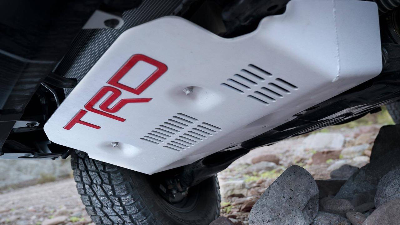 เนื่องจากต้องรองรับการขับแบบออฟโรดบนพื้นที่ทุรกันดาร ระบบกันสะเทือน ล้อและยางของ 4Runner TRD Pro จึงถูกสร้างขึ้นมาเพื่อรับแรงกดดันจาการใช้งาน ช่วงล่าง มาพร้อมชุดซับแรงกระแทก TRD Bilstein กระบอกโช้ค 2.5 นิ้ว สปริงมีการปรับตั้งค่าใหม่ ยกความสูงขึ้นที่ด้านหน้า 1.0 นิ้ว และด้านหลังอีก 2.0 นิ้ว ล้ออัลลอย TRD สีดำเคลือบเงา ขนาด 17 นิ้ว ยางออฟโรด Nitto Terra Grappler ไซส์ 265/70R17 รองรับสำหรับการขับใช้งานในทุกพื้นที่ทุรกันดาร ด้านหน้า บริเวณใต้ห้องเครื่องยนต์ ติดตั้งแผ่นอะลูมิเนียมกันกระแทก แปะตรา TRD เพื่อช่วยป้องกันหิน ระบบส่งกำลังของ 4Runner TRD Pro ใช้ระบบขับเคลื่อนสี่ล้อ พร้อมโหมดขับเคลื่อนผ่านหิน ดิน ทราย หิมะ และหล่มโคลน อุปกรณ์ในการเอาตัวรอด เช่น ดริฟต์ล็อกไฟฟ้า และระบบ Multi-Terrain Select เพื่อช่วยให้คุณผ่านเส้นทางที่ยากลำบาก
