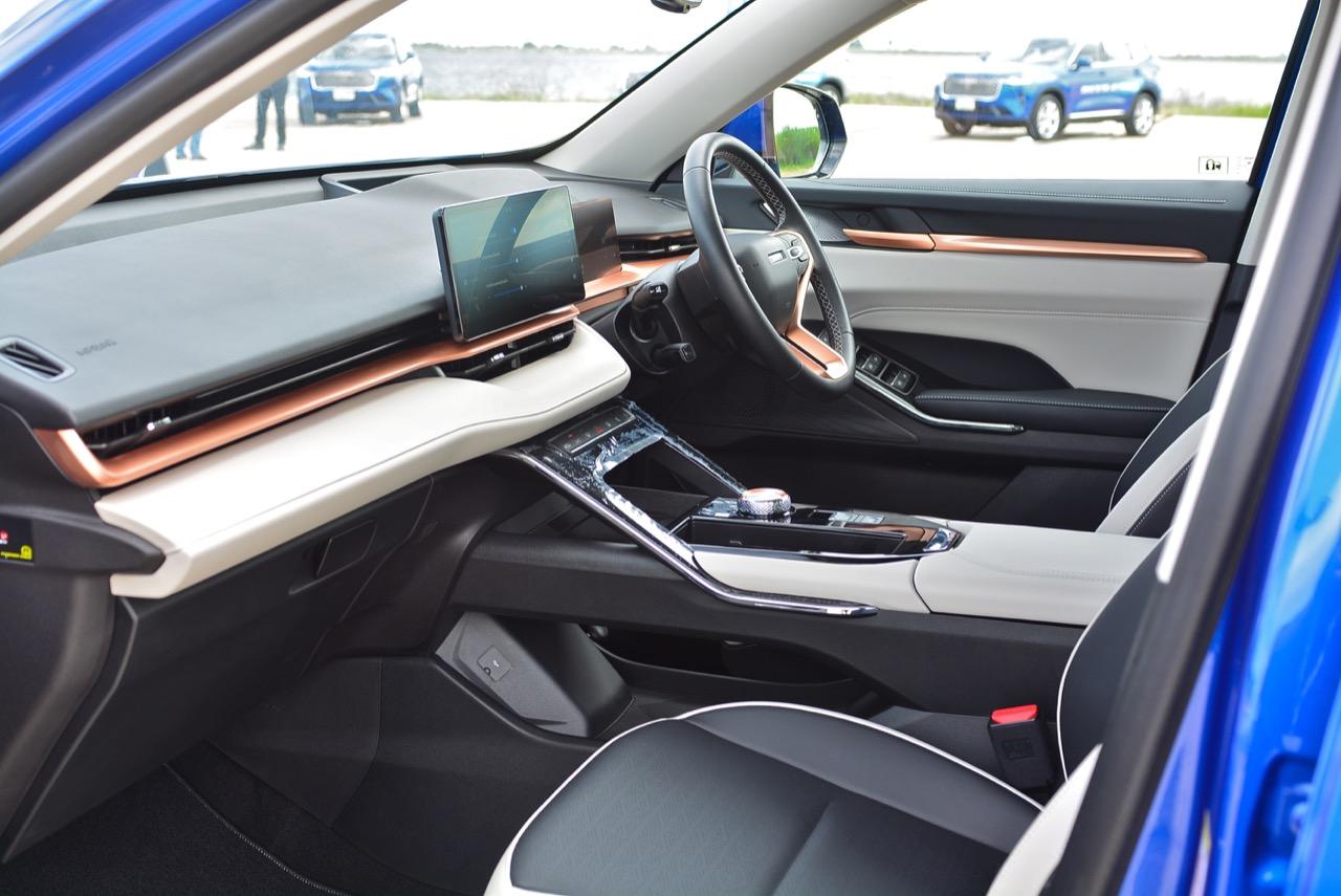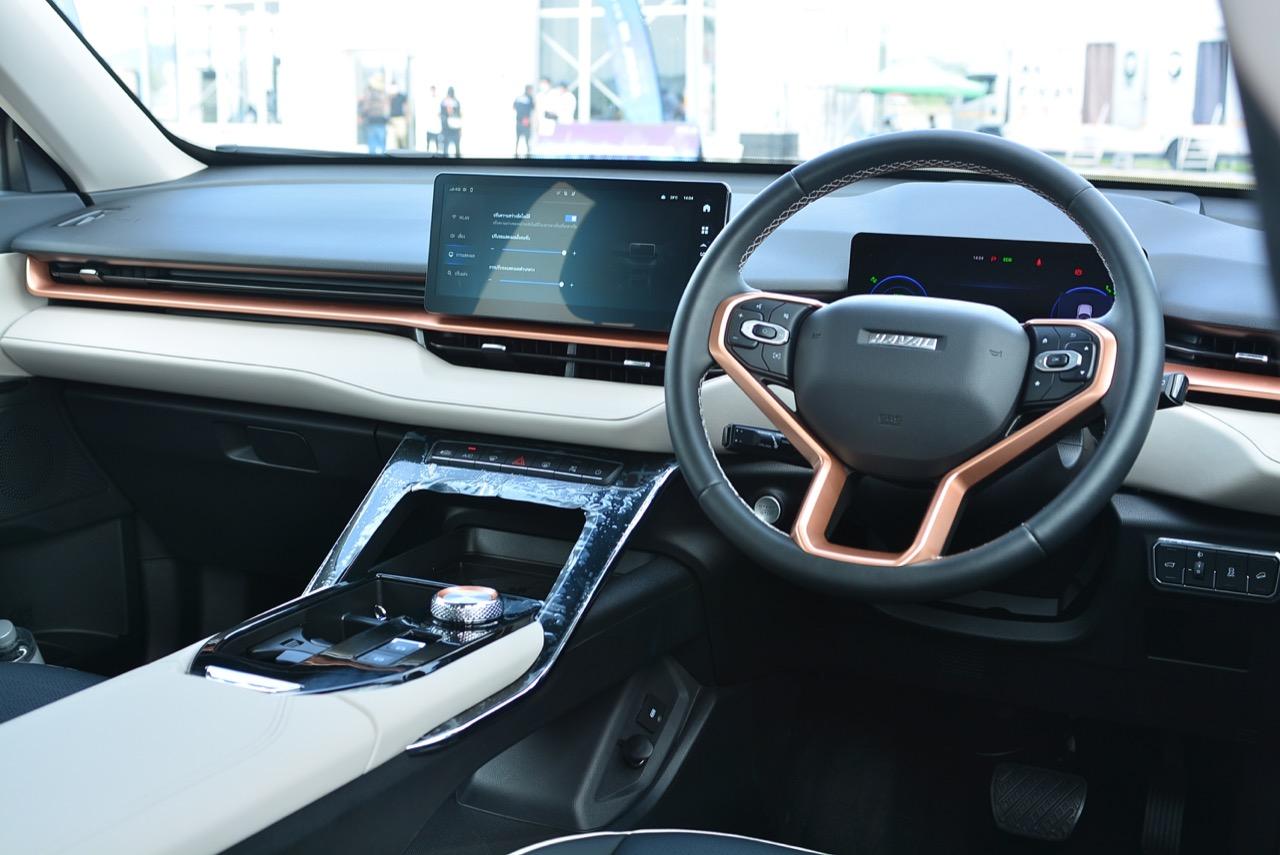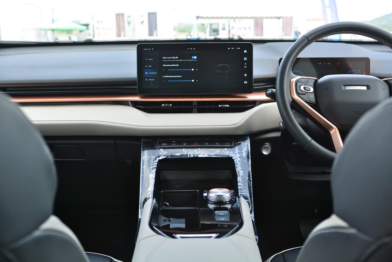 เมื่อ MG ปรับงานตกแต่งภายในจนทำให้ HS กลายเป็นรถอเนกประสงค์รุ่นขายดี จากรูปแบบของงานดีไซน์ภายในที่เน้นความหรูหรา มีการปรับวัสดุภายในให้ดีกว่ารถญี่ปุ่นบางแบรนด์ ทำให้ HS เป็นรถที่มีห้องโดยสารหรูหราหมาเห่าเอาเรื่อง พอมาถึงคู่แข่งอย่าง H6 ค่าย GWM ก็ไม่ยอมน้อยหน้าในด้านความพยายาม โดยมีการออกแบบภายในของ H6 Hybrid ให้มีความพรีเมียมน่าใช้งาน นับเป็นจุดเด่นและกลายมาเป็นจุดขายหลักของรถยนต์จากประเทศจีนในปัจจุบันเลยทีเดียว ภายใน ที่แซงหน้ารถญี่ปุ่นไปไกลในเรื่องของเทคโนโลยีต่างๆ HAVAL H6 Hybrid ใช้งานดีไซน์ภายในแบบ 360 องศา จากแนวคิด Future Intelligent Cockpit หรือห้องโดยสารแบบอนาคตพร้อมนวัตกรรมใหม่ที่คอยอำนวยความง่ายในการใช้งาน เพื่อสร้างสุนทรียภาพให้กับสัมผัสของอุปกรณ์ภายใน การเลือกใช้โทนสีและวัสดุ พวกหนังสังเคราะห์ ผ้า พลาสติกและโลหะที่ทำออกมาได้อย่างสวยงาม ห้องโดยสารของ H6 Hybrid มีความคล้ายกับ Range Rover evoque การเชื่อมต่อของหน้าจอทั้ง 3 Head Up Display (HUD) เน้นไปที่ความคมชัดและความละเอียด เพื่อทำให้สังเกตได้ง่าย