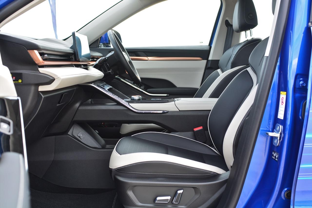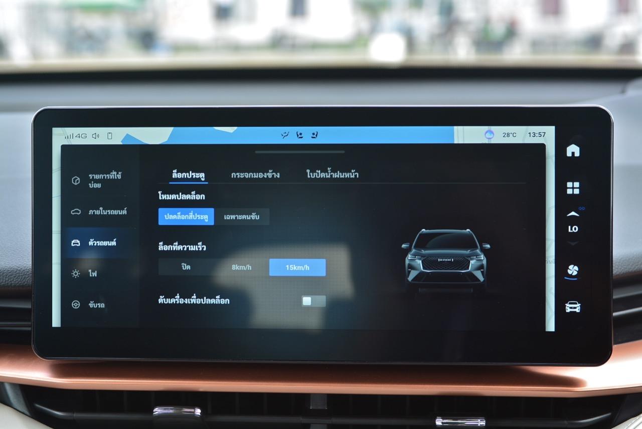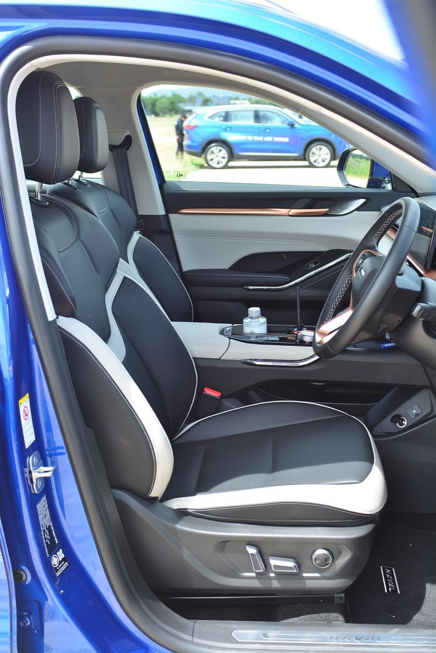นอกจากจะใช้รูปแบบงานภายในที่คล้ายรถยุโรปราคาแพงแล้ว เบาะของ H6 ยังใช้โทนสีที่เรียบง่ายสะอาดตาและดูดี (มาก) ความหรูหราด้วยสีของเบาะนั่งและงานตกแต่งบริเวณแผงประตูกับคอนโซลกลาง H6 Hybrid เป็นรถที่มีภายในสวยงามจากการออกแบบ และใช้วัสดุคุณภาพดี กับอุปกรณ์ตกแต่งที่แสดงออกถึงความใส่ใจ งานตัดเย็บที่ประณีต จุดเด่นของภายในอีกตำแหน่งก็คือ หลังคากระจกไฟฟ้าแบบ พาโนรามิก ซันรูฟ ขนาด 1.2 ตารางเมตร เบาะหนังสังเคราะห์คุณภาพสูง อันนี้นั่งได้สบายตัวแต่เบาะปรับไฟฟ้าคู่หน้าของรุ่นท็อปไม่มีตำแหน่งให้ยกบริเวณที่รองน่อง เบาะนั่งทั้งคู่หน้าและด้านหลัง ออกแบบตามหลักสรีรศาสตร์ โดยเบาะคู่หน้าสามารถปรับได้ 6 ทิศทาง พร้อมระบบดันหลังปรับด้วยระบบไฟฟ้า จัดท่านั่งให้สบายและอยู่ในตำแหน่งที่มองเห็นวิสัยทัศน์ได้ดี ช่วยลดความเหนื่อยล้าในการขับขี่และเพิ่มความปลอดภัย มาพร้อมกับการบำรุงรักษาที่ง่าย ที่เจ๋งและชอบก็คือ การระบายอากาศที่เบาะหน้า สามารถปรับระดับได้ โดยสามารถระบายอากาศได้อย่างรวดเร็วและช่วยควบคุมอุณหภูมิเบาะให้เหมาะสมได้ดียิ่งขึ้น โดยเฉพาะในวันที่มีอากาศร้อน เบาะที่มีระบบปรับอากาศอยู่ภายใน เท่าที่เคยทดสอบ มีเฉพาะ Lexus บางรุ่นเท่านั้น! Haval H6 HEV ยังมีไฟตกแต่งภายในตอนกลางคืนหรือที่เรียกว่า Ambient Light ให้มาอีกด้วย