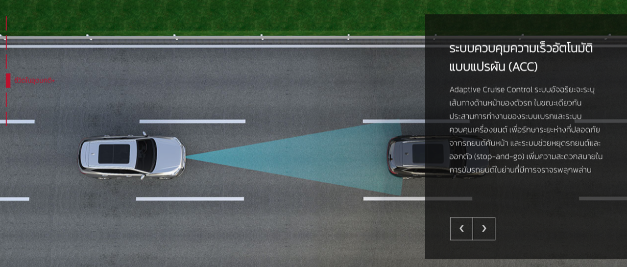 ทำงานตามความเร็วที่ผู้ขับขี่ตั้งเอาไว้ แต่จะตรวจจับรถคันหน้าเพื่อรักษาระยะห่างที่ปลอดภัย