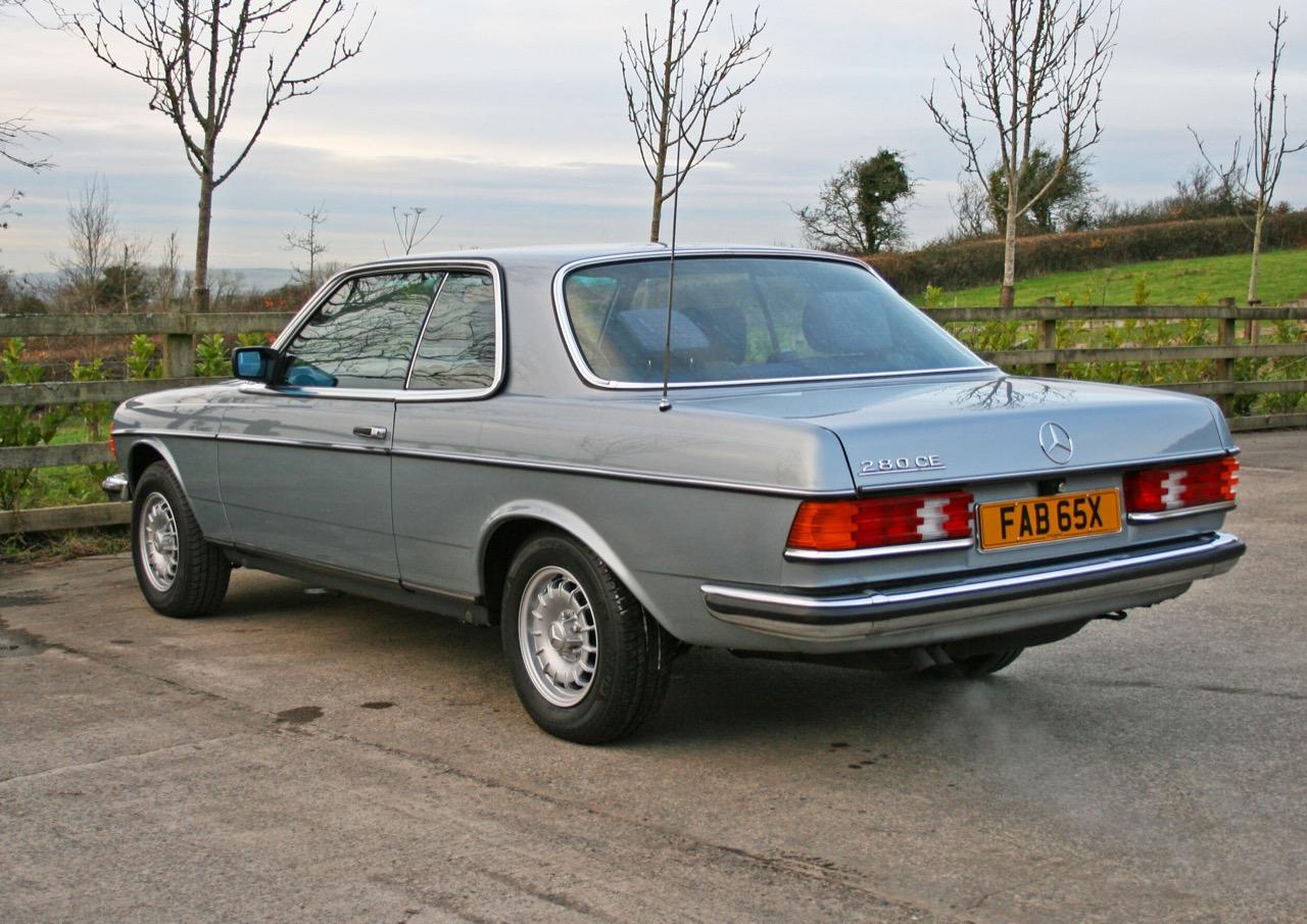 ตามโบรชัวร์อย่างเป็นทางการในปี พ.ศ. 2526 สำหรับ 230CE และ 280CE รูปทรงของรถ Mercedes coupé แสดงถึงความสง่างามแบบสปอร์ตเหนือกาลเวลา เส้นตัวถังที่ไหลลื่นดึงดูดสายตา และยังผสานเข้ากับรูปลักษณ์โดยรวมของรถ ด้วยความกลมกลืน จากความพยายามอย่างสูงสุดของนักออกแบบและวิศวกร การผลิต C123 coupés สิ้นสุดลงในเดือนสิงหาคม ปี พ.ศ. 2528 (1985) หลังจากผ่านไปแปดปีด้วยยอดจำหน่ายรวม 99,884 คัน รุ่นที่หายากที่สุดคือ 280C ซึ่งมีการผลิตเพียงแค่ 3,704 คัน.