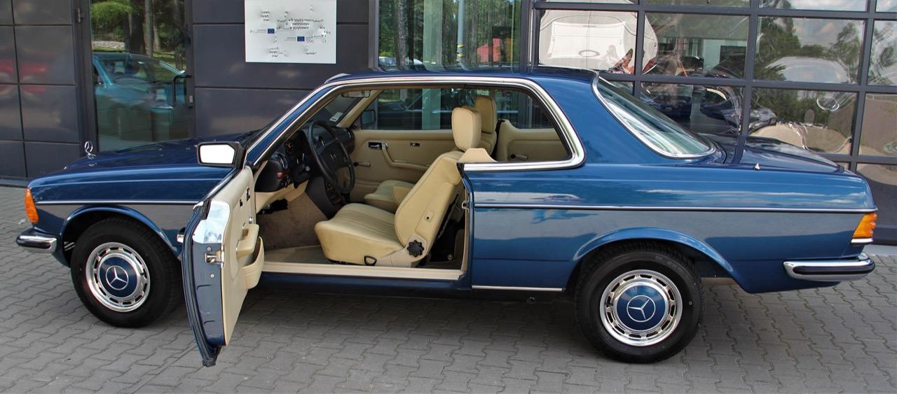 คูเป้ที่น่าดึงดูดใจในซีรีส์รุ่น C123 เสริมความแข็งแกร่งให้กับกลุ่มผลิตภัณฑ์ W123 ของ Mercedes-Benz ในปี พ.ศ. 2520 รถรุ่นคูเป้สองประตู เปิดตัวต่อจาก W123 saloons หนึ่งปี และมุ่งเป้าหมายการครองตลาดไปที่ผู้ที่ชื่นชอบยานยนต์เยอรมันที่ให้ความสำคัญกับความสง่างามในรูปแบบสปอร์ตคูเป้ C123 Coupe เตี้ยลง 4 ซม. และสั้นกว่า W123 8.5 ซม. จากนั้นมีการปรับเปลี่ยนแนวด้านข้างของตัวถัง ด้วยกระจกด้านหน้าและด้านหลังที่มีความลาดเอียงและโค้งมากขึ้น บวกกับบานประตูขนาดใหญ่เต็มที่ ซึ่งไม่ได้คั่นด้วยเสากลางหรือเสา B เหมือนรถคูเป้ทั่วไป ผลลัพธ์ที่ได้คือช่วงบานประตูที่ยาวและดูมีชีวิตชีวา ผู้โดยสารตอนหลังมีทัศนวิสัยที่ดีโดยไม่ถูกขัดขวางด้วยแนวของเสากลาง