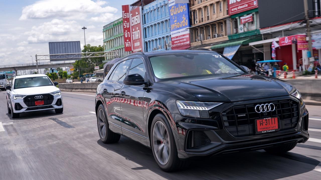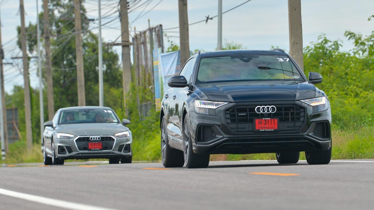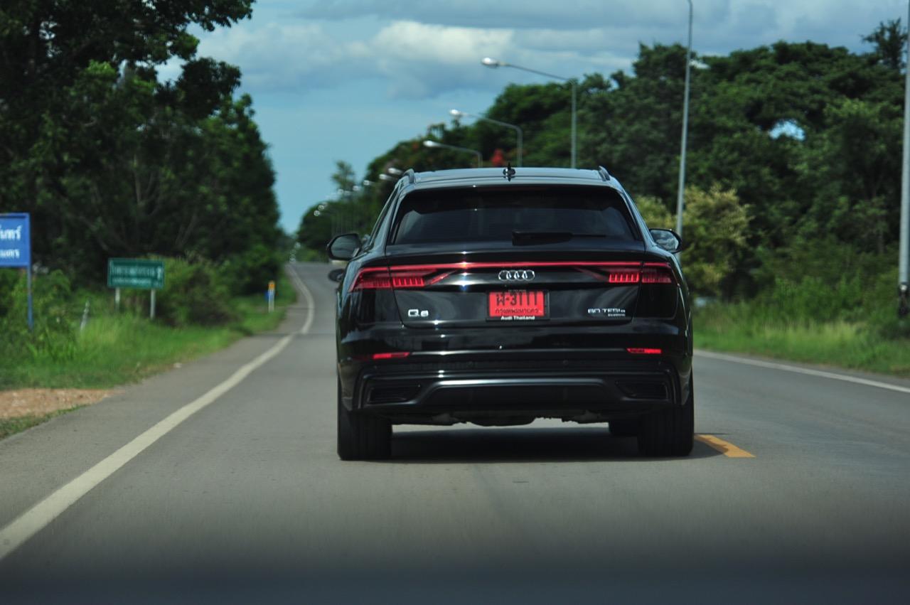 ตอนกระแทกคันเร่งออกไปได้สักพัก ผมกับคุณไปป์ยังมองหน้ากันแล้วยิ้มหวาน..สื่อรถยนต์อย่างเรานี่ขับซุปเปอร์คาร์ 500 ม้ากันมาหลายคันแล้ว แต่การที่ไอ้รถ SUV Coupe หนัก 2.4 ตันทะยานไปแบบนี้ เราก็อดชมมันไม่ได้ ยิ่งในเรื่องรสชาติการขับขี่ ผมรู้สึกว่า Audi เซตการทำงานของระบบถุงลมช่วงล่างมาเหมาะกับการวิ่งทางไกลมากกว่าเพื่อนร่วมห้องอย่าง Cayenne ด้วยซ้ำถ้ามองในแง่ของการซับแรงกระแทก การควบคุมตัวรถไม่ให้เคลื่อนไหวขึ้น/ลงมากเกินไป ใน Cayenne นั้น ถ้าผมใช้โหมด Comfort ขับ ผมจะแอบเมานิดๆ ซึ่ง Audi ไม่เป็น ในขณะเดียวกัน ถ้าโยกสาดแรงมากๆ Cayenne ในโหมด SPORT ก็ยวบน้อยกว่า Audi อยู่นิดหน่อย แต่ในภาพรวม ทั้งคู่คือ SUV เดินทางไกลความเร็วสูงที่หนักแน่น มั่นคง ถ้าจะให้ลมพัดเสียหลักคงต้องไปตามเฮอริเคนแคทรีนามานั่นแหละ