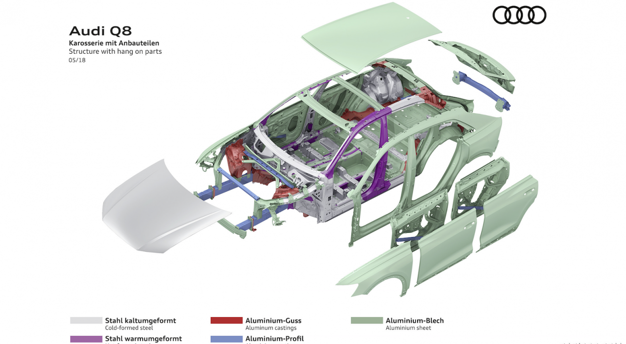 ลึกลงไปใต้เรือนร่างของ Q8 นั้น โครงข้างในและเทคโนโลยีต่างๆ ก็คือแพลตฟอร์ม MLB-EVO ของรถในเครือ Volkswagen Group ซึ่งนอกจากจะใช้กับ Audi Q7/Q8 แล้ว ก็ยังอยู่ใน Lamborghini Urus, Bentley Bentayga และ Porsche Cayenne โฉมปัจจุบันอีกด้วย ซึ่งแน่นอนว่า หลายส่วนของรถจะเหมือนกัน แต่มีการปรับจูนรายละเอียดปลีกย่อยไปตามเอกลักษณ์ของแต่ละค่าย แต่ความที่ Audi กับ Porsche นั้นเหมือนเพื่อนที่อยู่กันมาตั้งแต่สมัยเรียน รักกันบ้าง หยอกกันบ้าง ต่อยกันบ้างแต่ทำงานด้วยกันได้มาตลอด เทคโนโลยีการขับเคลื่อนก็เช่นกัน