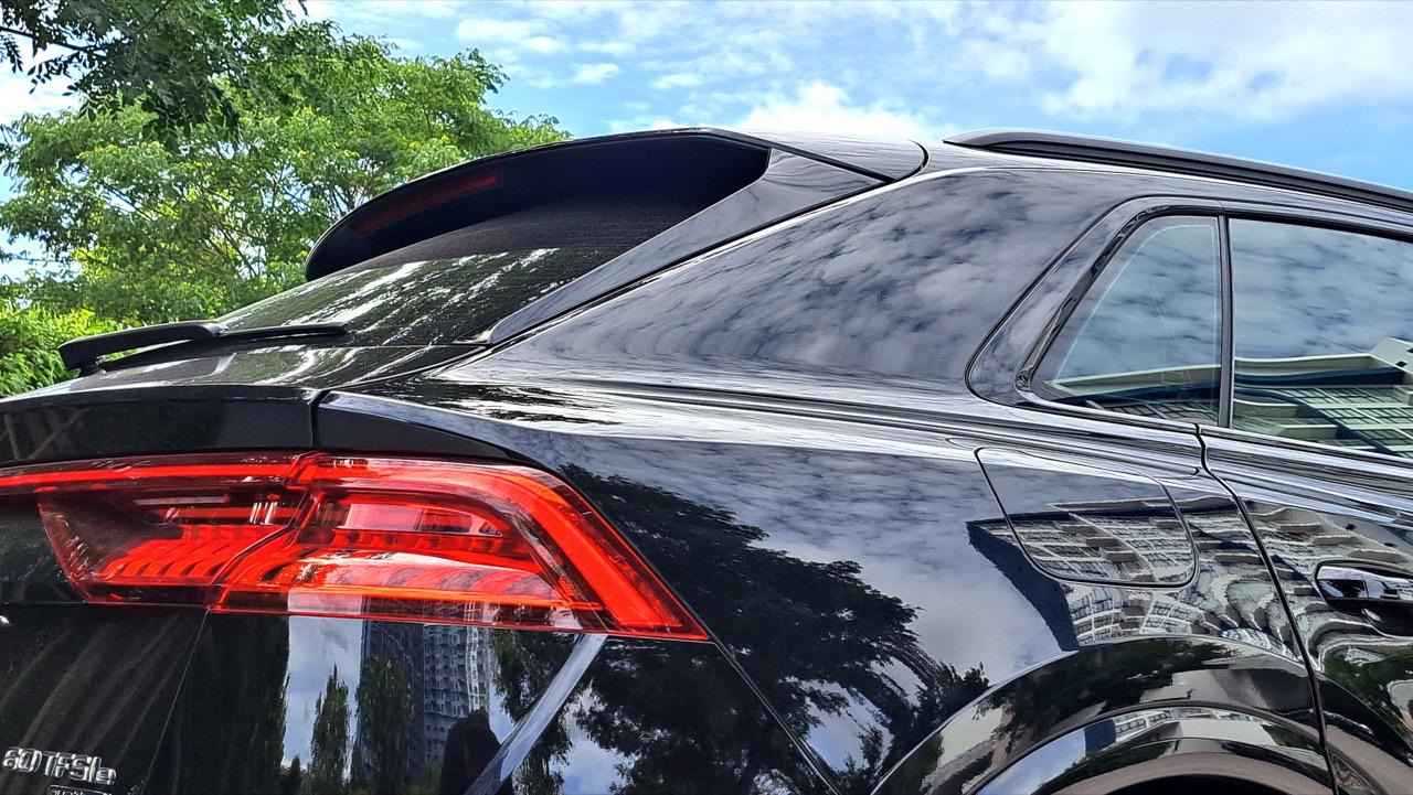 พละกำลัง ความฉลาด ความขี้เล่น ช่างเหมือนกับบุคลิกของ Q8 คันนี้ ซึ่งถ้าคุณมองผ่านๆ มันก็คือรถ SUV สไตล์ Coupe แบบเดียวกับ BMW X6 และ Mercedes-Benz GLE Coupe รวมถึง Porsche Cayenne Coupe แต่ในขณะที่ผมเผาเรื่องการออกแบบของรถประเภทนี้เกือบทุกรุ่น Q8 เป็นเหยื่อที่ผมละเว้นเอาไว้ เพราะเคารพในความคิดของนาย Marc Lichte ผอ.คุมฝ่ายออกแบบของ Audi ที่เลือกจะไม่ทำทรงของหลังคาที่ดูลาดเอียงหรือกลมมนเกินไป แต่กลับนำเอาทรวดทรงของรถแข่งแรลลี่ยุค 80s ที่โด่งดังอย่าง Audi Ur-Quattro ซึ่งเป็นทรง เหลี่ยม-ลาด-โหดแบบวัยกลางคน มาใช้แทนในท่อนบนของรถ บวกกับไฟท้ายที่ประยุกต์มาจาก Audi ยุค 90s แต่เอามาพลิกกลับด้านกัน ผมพบว่าผมใช้เวลาชื่นชมก้นอันสวยงามของ Q8 มากกว่าหน้ามันเสียด้วยซ้ำ ดีนะที่มันเป็นรถ ถ้าเป็นคน ผมน่าจะโดนกรี๊ดใส่ก่อนแล้วตบร่วงไปอยู่กับพื้น