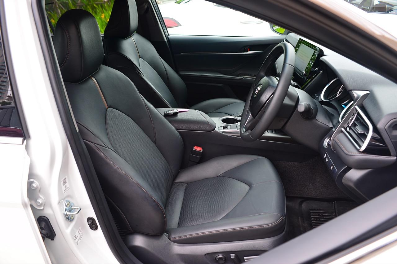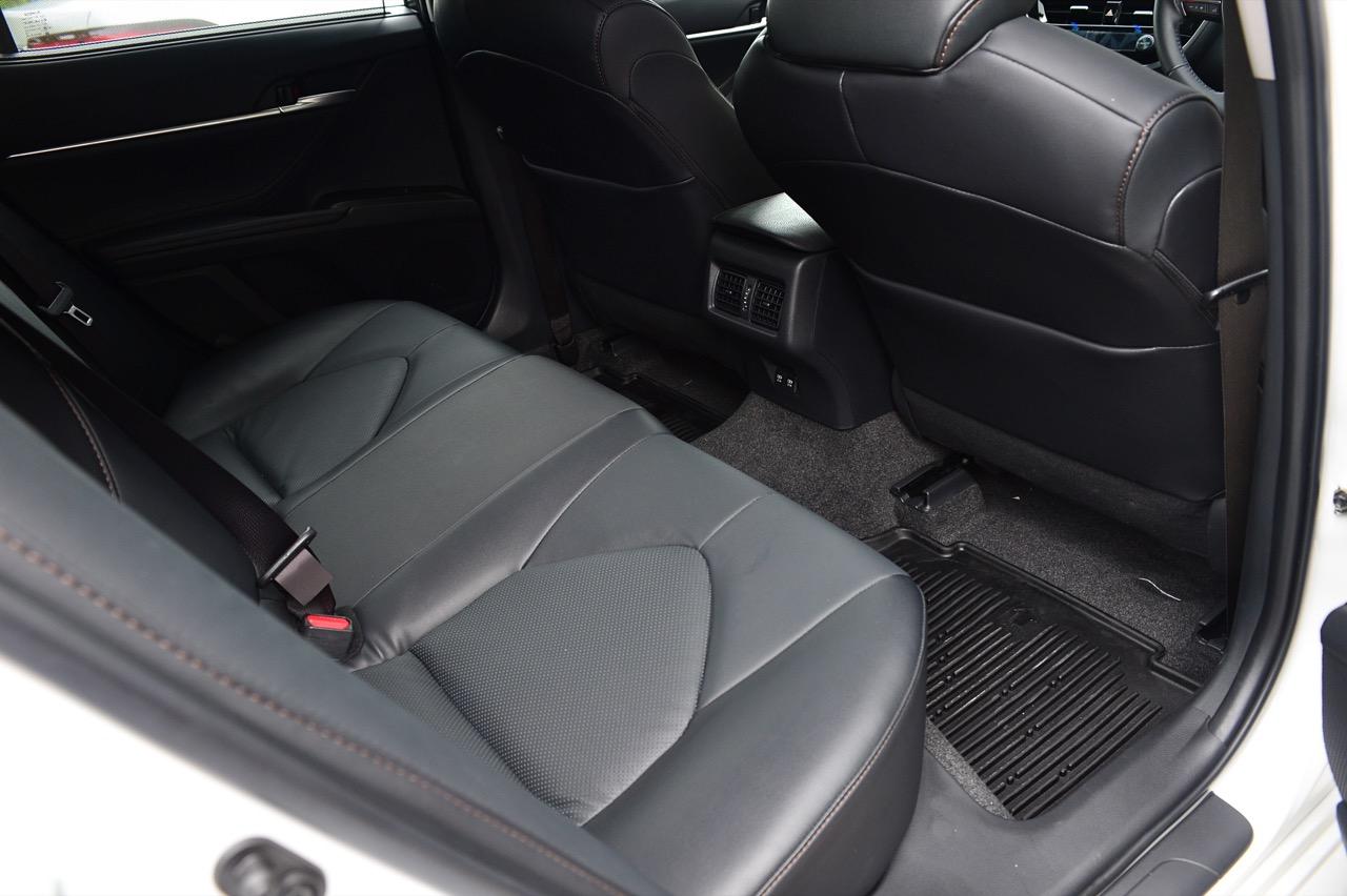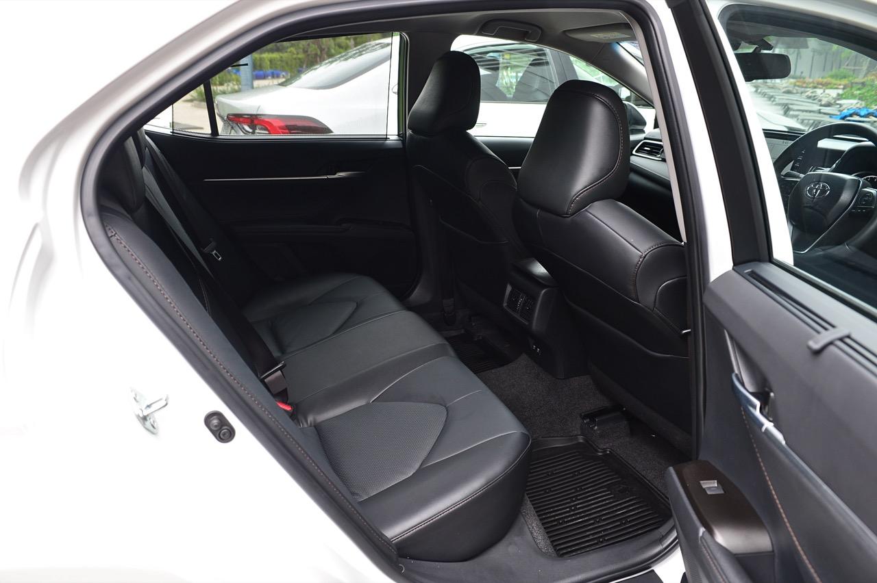 มองไปที่ห้องโดยสารแสนสบายนั่งขับได้ทั้งวัน ทั้ง new Camry และ new Accord ต่างแข่งกันที่ความหรูหราและสมรรถนะ Camry ใหม่นั้นมีภายในที่คล้ายกับการยกเอาภายในของ Lexus รุ่น ES มาปรับให้ไม่หรูเท่า เครื่องยนต์ 2.5 ลิตร เบนซิน กำลัง 209 แรงม้าพร้อมเกียร์อัตโนมัติลูกใหม่แบบ 8 สปีด ไม่ใช่เกียร์ CVT ที่น่าเบื่อแต่เป็นเกียร์เฟืองที่ผ่องถ่ายอัตราทดได้เร็วและเนียน เมื่อขับในเมืองเพื่อลองจับอาการ เจ้า new Camry 2.5 Sport MoDellista มีความคล่องตัวสูง แม้จะมีขนาดตัวถังไม่ใช่เล็กๆ แต่ก็ขับได้อย่างคล่องแคล่ว คุณสามารถเลี้ยวกลับลำ หมุนพวงมาลัยเพื่อถอยจอดแบบเข้าซอง หรือเลี้ยวเข้าซอยแคบๆ ได้อย่างสบาย โอเวอร์แฮงค์หน้าที่ค่อนข้างยาวส่งผลอยู่เหมือนกันเมื่อต้องการเลี้ยวเข้าไปจอดในที่คับแคบ ส่วนอัตราสิ้นเปลืองในเมืองถ้าประคองคันเร่งกันดีๆ ก็น่าจะมีถึง 12 กิโลเมตรต่อลิตร ถือว่าประหยัดใช้ได้ อัตราเร่งจาก 0-100 ของ new Camry 2.5 Sport MoDellista ทำได้ 8.9 วินาที ไม่ได้เร็วจิ้ดแต่ก็ไม่ได้ชักช้าจนทำให้รำคาญเพราะเร่งไม่ขึ้น! ห้องโดยสารทำออกมาในสไตล์ Toyota ที่คุ้นเคยกันดีอยู่แล้ว แดชบอร์ดคอนโซลสีดำ เบาะหนังปรับไฟฟ้าและแผงประตูสีดำ เย็บด้วยด้ายสีน้ำตาลทำให้ผมชอบภายในโทนสีอ่อนของรุ่นไฮบริดมากกว่าแม้จะมีอุปกรณ์ที่คล้ายๆ กันแต่อย่างที่บอกว่ารุ่นไฮบริดคุณจะได้เบาะแบบมีแอร์ที่เหมาะกับการขับใช้งานในเขตร้อน เบาะหลังปรับเอนไม่ได้ บริเวณพนักเท้าแขนก็ไม่มีปุ่มปรับอุณหภูมิหรือเครื่องเสียงเหมือนรุ่นไฮบริดทำให้ผมชอบรุ่นสูงสุดที่ให้อุปกรณ์มาเยอะกว่า เมื่อจ่ายแพงก็ย่อมได้ของครบเป็นเรื่องปกติธรรมดา
