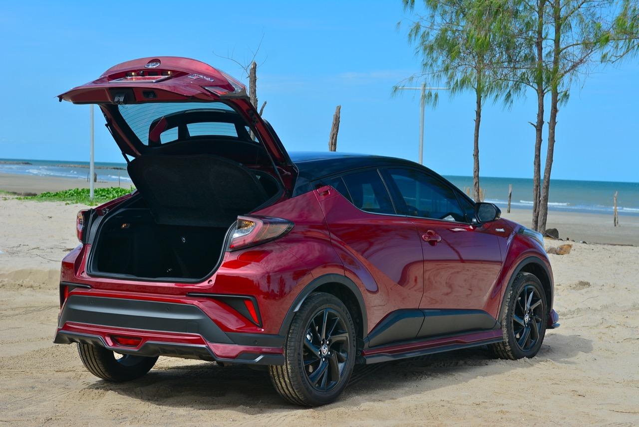 ภายในห้องโดยสาร มีพื้นที่กว้างขวางพอสำหรับคนโสดหรือคนเพื่อนเยอะ หลายคนมักคิดว่าเบาะหลังของ C-HR นั้นแคบ ความจริงนั่งสบายแทบไม่ต่างจาก Corolla Cross ครับ แต่เพราะกระจกประตูบานหลังนั้นเล็กมาก และแนวหลังคาที่เตี้ยกว่าทำให้เวลานั่งแล้วรู้สึกอึดอัดไม่มีที่ทางให้มองออกไป สิ่งที่ Cross ได้เปรียบกว่า C-HR คือมันมีฝาท้ายไฟฟ้า และพื้นที่เก็บของด้านหลังก็ใหญ่โตกว่ามาก ดังนั้นบางท่านพอเริ่มมีครอบครัว มีสรรพสิ่งของสำหรับเจ้าตัวเล็กรวมถึงรถเข็นเด็กแบบพับได้ ก็จะเหมาะที่จะไปใช้ Cross มากกว่าเพราะมีที่เหลือให้ใส่ของมากกว่าเยอะ