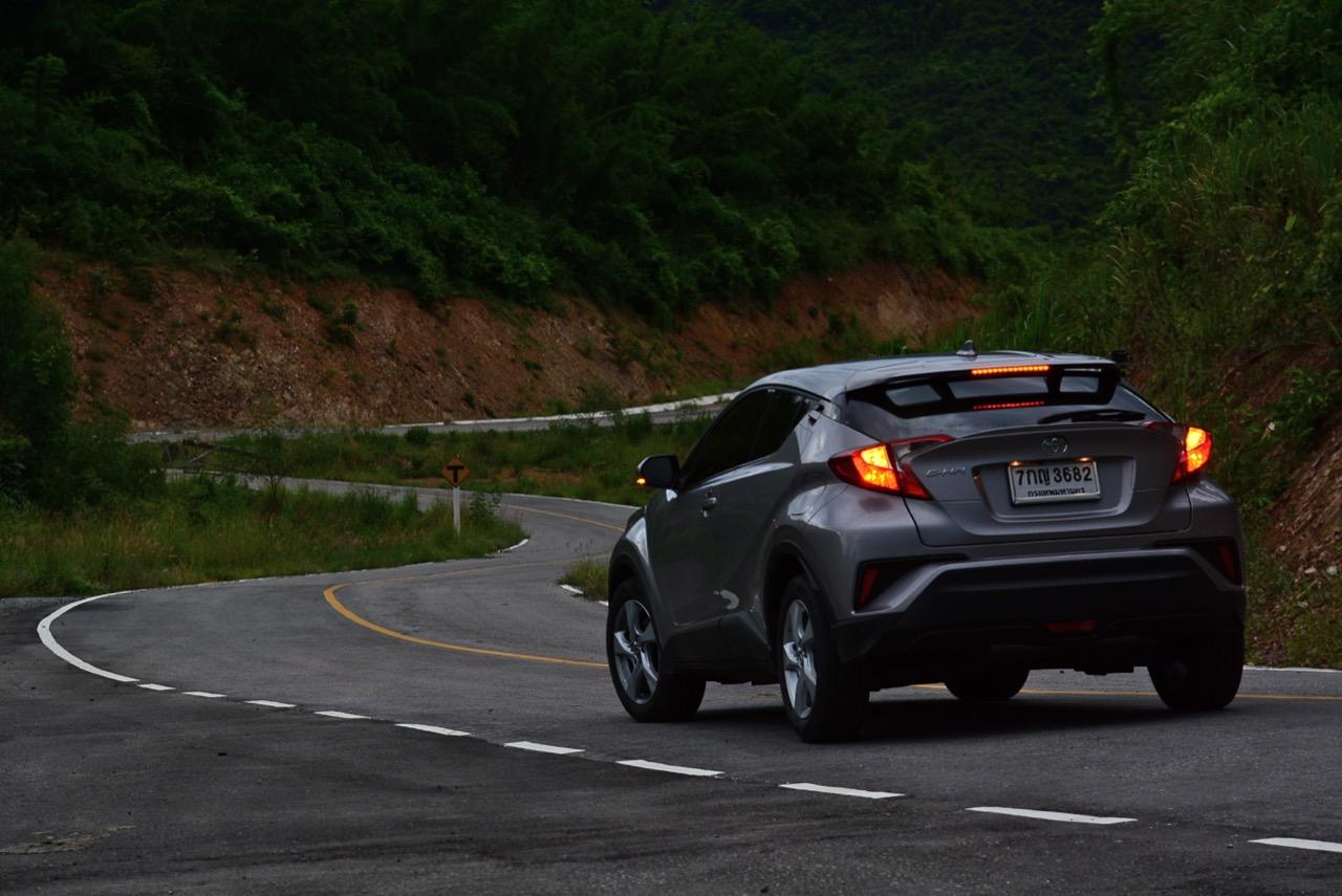 แต่ในแง่การขับขี่ด้านอื่น ขอบอกเลยว่า C-HR เป็น Toyota ยุคใหม่ที่ช่วงล่างเซตมาดีมาก คำว่าดีนี้คือ บนถนนสภาพแย่ๆ คุณก็ไม่รู้สึกสะเทือนไส้มากไปกว่าพวก Toyota ยุคช่วงล่างย้วยมากนัก มันยังปรานีต่ออวัยวะของผู้สูงอายุ และถ้าคุณเป็นคนใช้รถแต่งซิ่งมาก่อน C-HR จะถือว่านุ่มเลยล่ะ แต่เมื่อใช้ความเร็วสูง แล้วต้องโยกหลบพวกเปลี่ยนเลนไม่สนโลก ช่วงล่างของ C-HR นั้นเกาะมั่นแน่นหนึบ ให้ความมั่นใจได้ชนิดที่ผมกล้าใช้คำว่ายกมาตรฐานไปกัดกับยุโรปได้สบาย พวงมาลัยก็ไม่ยาวยานเหนื่อยจิตแบบ Toyota ยุคเก่า ที่เป็นแบบนี้เพราะ C-HR เกิดในยุคของท่านประธาน Akio Toyoda ซึ่งเป็นคนชอบขับรถ และยังเลือกหัวหน้าทีมวิศวกรช่วงล่างของ C-HR ที่บ้ารถ และมีงานอดิเรกขับรถซิ่งเล่นในสนาม คนพวกนี้จะจุกจิกมากเรื่องการบังคับควบคุมแบบที่คนทั่วไปไม่มีใครสนกัน นี่ก็คือส่วนหนึ่งที่ทำให้ C-HR ได้ช่วงล่างหลังแบบอิสระปีกนกสองชั้น ในขณะที่ Cross ซึ่งทำมาขายคนทั่วไป ใช้คานบิดแบบธรรมดา
