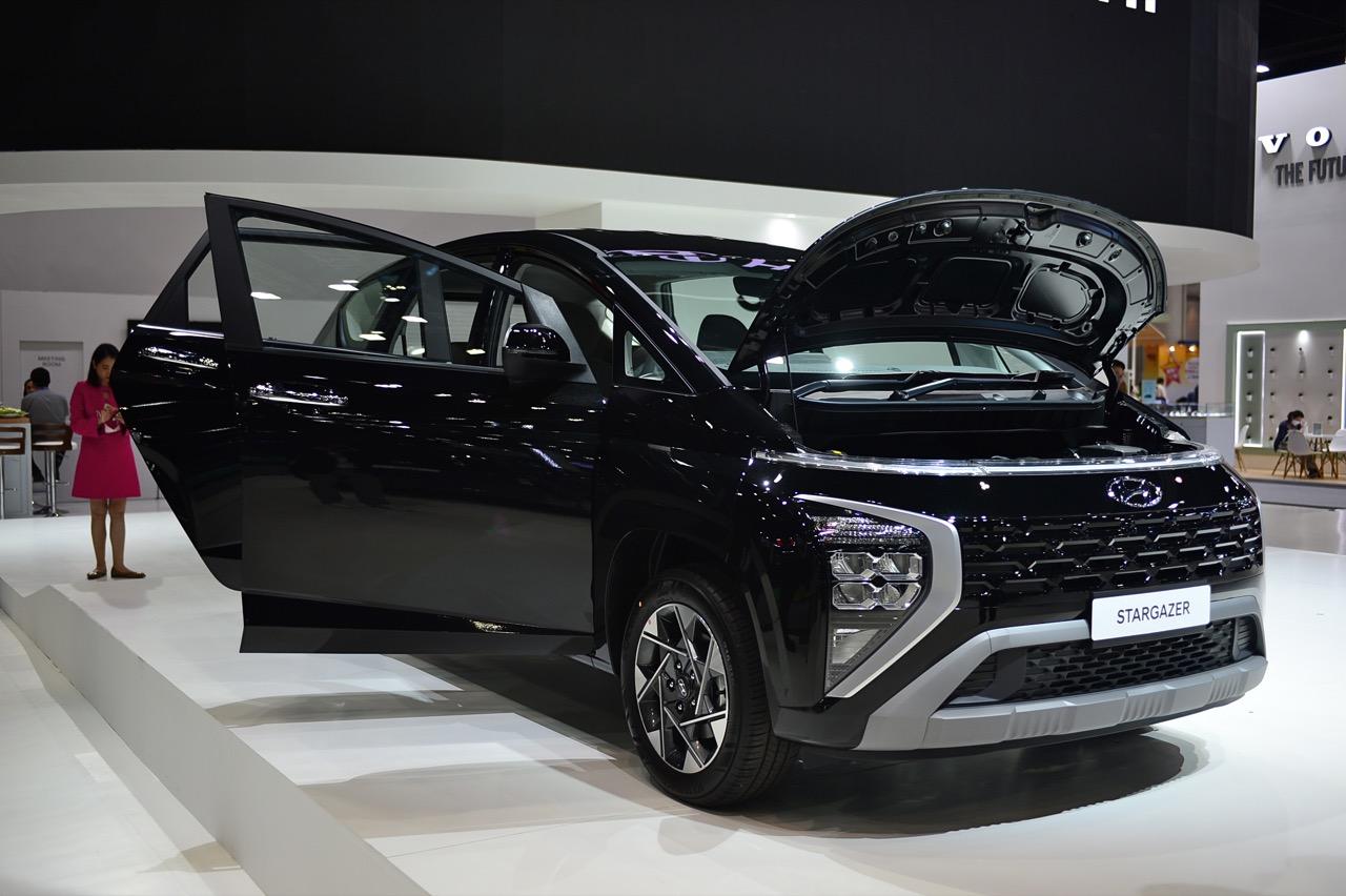 ส่วน Stargazer ก็คือรถ MPV เครื่องยนต์ 1.5 ลิตร ที่เป็นคู่กัดโดยตรงกับ Mitsubishi Xpander มีทั้งแบบ 6 ที่นั่งและ 7 ที่นั่ง หน้าตาภายนอก ถอดแบบมาจากหม้อทอดล้ำยุคอย่าง Staria รุ่นพี่ แอบมีความคล้ายรถ EV อยู่ด้วย ทั้ง Creta และ Stargazer นั้น ประกอบจากโรงงาน PT Hyundai Motor Manufacturing อินโดนีเซีย