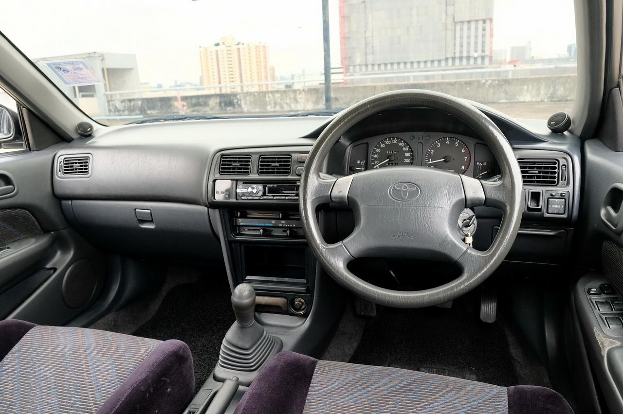 เปิดประตูมาภายใน จุดแตกต่างของรถรุ่นฉลองครบรอบล้านคันนี้ อยู่ที่เบาะผ้าและแผงประตู ซึ่งสาวกสามห่วงอย่างไอ้ตี้ คอนเฟิร์มว่าลายของผ้าในสองจุดนี้ไม่เหมือนกับ Corolla รุ่นอื่นใดและไม่เหมือนรถจากเกาะญี่ปุ่นด้วย หาเปลี่ยนใหม่ก็ไม่มี มีแต่ไปเจอรถรุ่นลิมิเต็ดอีกคันเท่านั้นล่ะ การออกแบบภายใน Simple Style เน้นการใช้งานที่ง่ายมากกว่าความหวือหวา ซึ่งรถญี่ปุ่นระดับนี้ยุคนั้น Civic, Sunny และ Corolla จะมาแนวอนุรักษนิยมในขณะที่ Mazda 323 และ Mitsubishi Lancer จะเน้นความโค้งมันทันสมัยดูมีลูกเล่นมากกว่า AE111 นี้เกิดในยุคที่รายการอุปกรณ์ของรถกินเนื้อที่แค่ครึ่ง A4 จบ คุณจะไม่เจออุปกรณ์ความปลอดภัยอะไรนอกจากถุงลมนิรภัยฝั่งคนขับ อุปกรณ์อำนวยความสะดวก มีแค่กระจกไฟฟ้า เซ็นทรัลล็อก กระจกมองข้างปรับและพับไฟฟ้าเท่านั้น ยังดีที่รุ่นนี้เบาะคนขับสามารถปรับสูง/ต่ำได้ สวิตช์แอร์เป็นคันโยกธรรมดา ช่องใส่วิทยุก็เป็นแบบช่องเดี่ยว มีที่วางของกระจุกกระจิกให้เท่าที่รถยุค 90s พึงมี