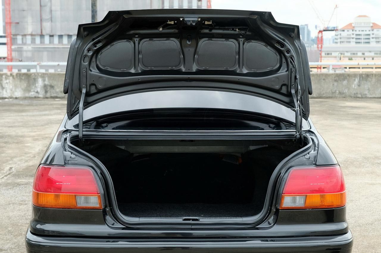 นอกจากนี้ ยังมีสปอยเลอร์หลังพร้อมไฟเบรก Koito ซึ่งเปลี่ยนหลอดแล้ว ใช้งานได้ดี ด้านท้ายรถมีสติกเกอร์ฉลองประกอบรถ Toyota ในไทยครบล้านคัน แม้ว่ารถคันนี้จะทำสีภายนอกมาแล้ว (27 ปีมีทำสีบ้างไม่แปลกหรอก) แต่ก็ใส่ใจในรายละเอียดมากพอที่จะเก็บสติกเกอร์ของเดิมไว้และแปะตรงจุดของเดิมถูกต้อง นอกเหนือจากนี้ไป ภายนอก ก็คือ Corolla AE111 ที่เปิดตัวในบ้านเราปี 1995 ซึ่งมีรูปโฉมที่ไม่ได้ก้าวไปไกลจากรุ่น AE101 ก่อนหน้าสักเท่าไหร่ การออกแบบรถญี่ปุ่นที่เป็นญี่ปุ่นขนานแท้สมัยนั้น คุณลองย้อนไปดูได้ว่า Toyota, Honda, Nissan ล้วนมีรถทรงเหลี่ยมๆ แบบนี้ บางคนกลับชอบรถโฉมแรกแบบนี้มากกว่ารุ่นไมเนอร์เชนจ์ ด้วยเหตุผลที่ว่า นี่คือ Original Design ตามความตั้งใจคนออกแบบ และไฟท้ายทรงโค้งช้อยของไมเนอร์เชนจ์นั้นดูไม่ค่อยเข้ากับตัวรถ