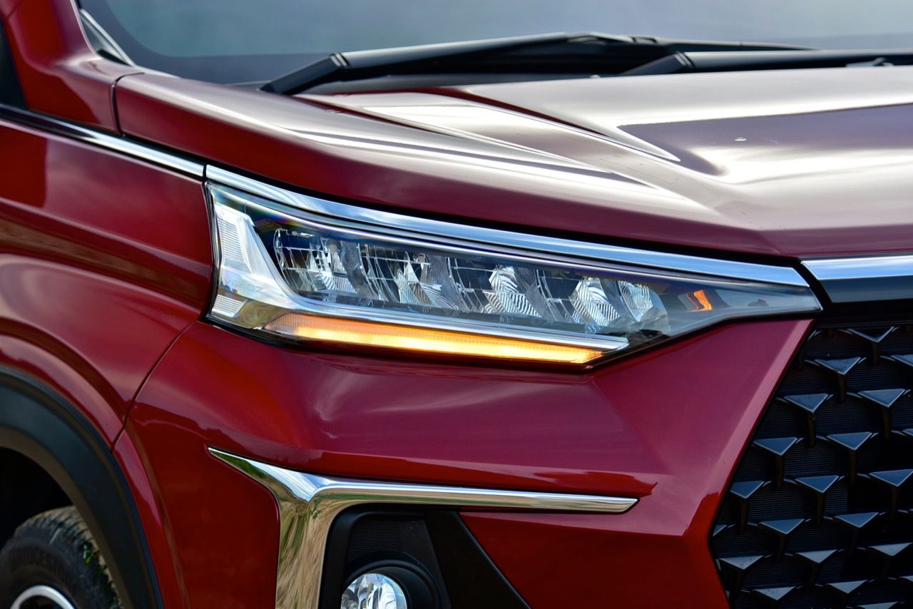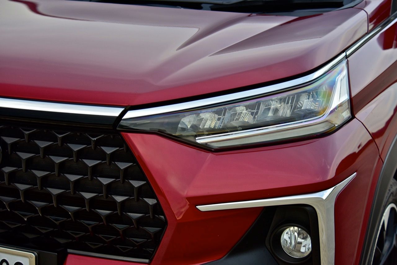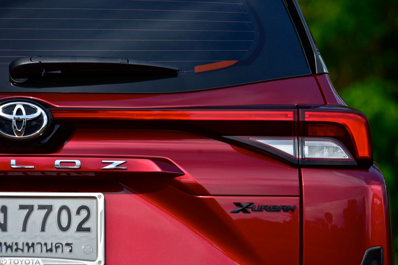 หน้าตาของ Toyota Veloz Premium + ชุดแต่ง X-Urban ดูเข้าทีดีเหมือนกันแม้กระจังหน้าจะใหญ่โตกินพื้นที่ส่วนหน้าของรถเกือบทั้งหมด แต่การออกแบบรายละเอียดพวกลวดลายภายในชุดกระจังและคาดพลาสติกโครเมียมที่ส่วนบนเพื่อเชื่อมโยงกับแนวของไฟหน้า ทำให้ใบหน้าของ Veloz ดูลงตัวใช้ได้ ระบบส่องสว่าง ติดตั้งไฟหน้า LED มีไฟหรี่กลางวัน LED Daytime running light มาพร้อมฟังก์ชันยกหรือลดไฟสูงแบบอัตโนมัติ เมื่อลองใช้งานในตอนกลางคืน บนถนนที่ไม่มีแสงไฟ ระบบไฟอัตโนมัติของ Veloz ก็มีความสว่างที่ใช้ได้ ทำให้มองเห็นบนถนนที่มืดมิดได้ดี การมองเห็นที่ดีในตอนกลางคืนยังช่วยเพิ่มความปลอดภัยในการใช้งาน ระบบอัตโนมัติทำงานเร็ว แต่ก็ต้องไม่มีแสงไฟรอบด้าน ระบบไฟสูงออโต้จะเข้ามาช่วยส่องในบริเวณที่คุณมองไม่เห็น สำหรับกันชนหน้าของ Veloz ใหญ่จนปิดคลุมส่วนหน้าของรถเกือบทั้งหมด มุมของกันชนหน้ามีไฟตัดหมอก LED ไฟหน้า LED พร้อมด้วย Light Guiding ไฟเลี้ยวแบบ Sequential วัสดุตกแต่งบริเวณไฟตัดหมอกหน้า (เฉพาะรุ่น Premium คันที่รีวิว) วัสดุตกแต่งด้านข้างประตู (เฉพาะรุ่น Premium) วัสดุตกแต่งสปอยเลอร์หลัง (เฉพาะรุ่น Premium) ล้ออัลลอยปัดเงาสีทูโทน ขนาด 17 นิ้ว รุ่น Premium ช่องรับอากาศของกันชนและชุดกระจังหน้าช่วยระบายความร้อนในห้องเครื่องยนต์ ฝากระโปรงหน้ายกสันนูน จากมุมของไฟหน้ากับกระจังหน้า เพื่อใช้เป็นเส้นนำสายตาที่ออกแบบให้มีรูปทรงของไฟที่ทันสมัย กระจกมองข้างมีกล้องซ่อนอยู่ทั้งสองฝั่ง รวมถึงเลนส์ไฟเลี้ยวแบบ LED ในกรอบกระจกมองข้างของรุ่นสูงสุดที่ช่วยเพิ่มความปลอดภัยในการเปลี่ยนช่องทางเมื่อเปิดใช้งานไฟเลี้ยว ในจุดนี้ถือว่าทำได้ดี