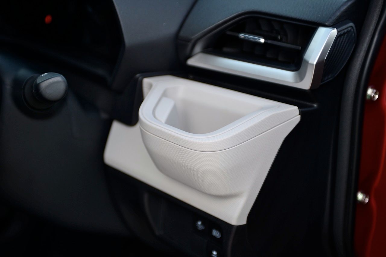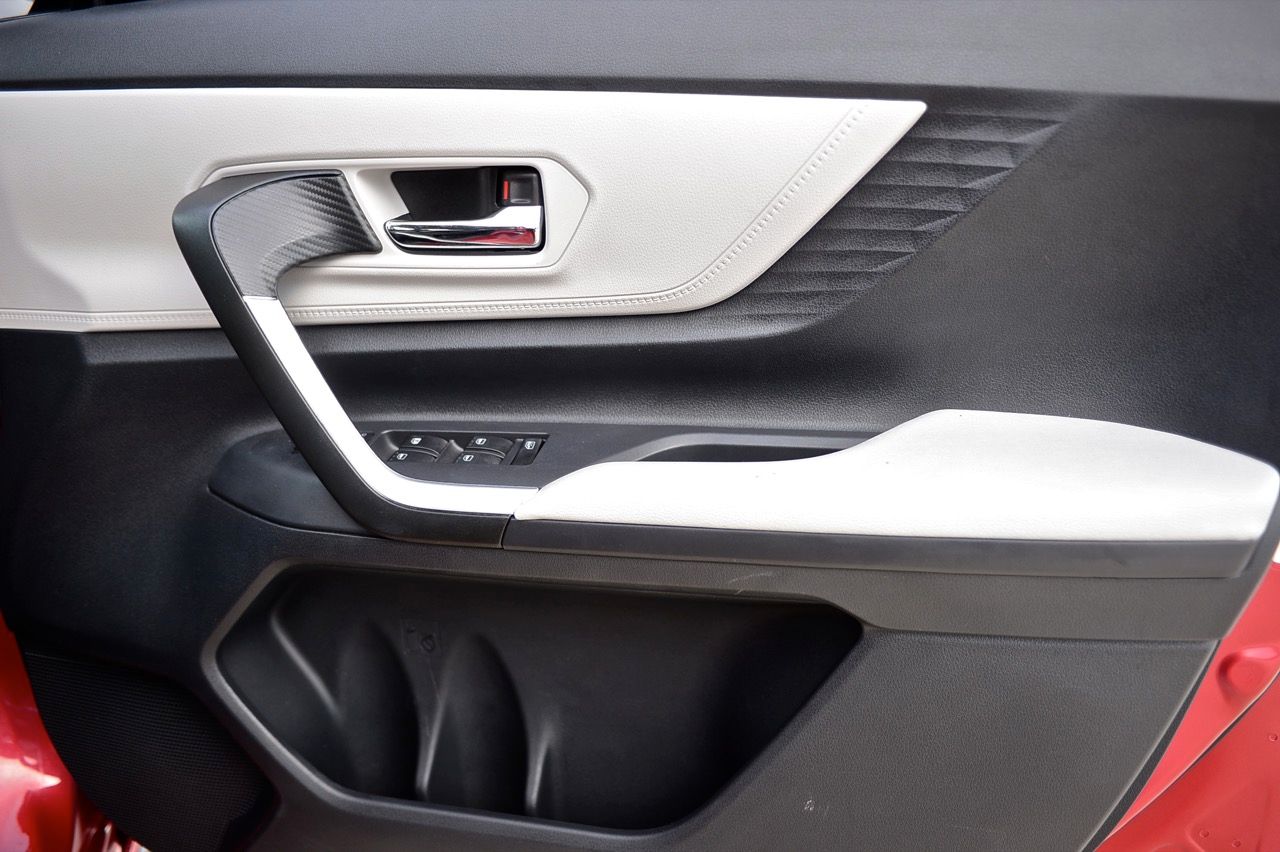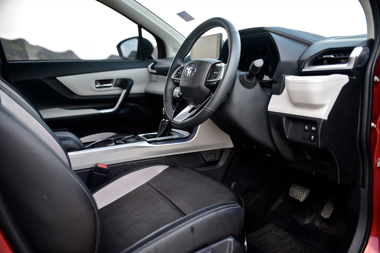 เบาะคนขับ ผู้โดยสารตอนหน้า เบาะแถวกลางและแถวที่สาม ทั้งหมด ปรับด้วยมือ เบาะหุ้มด้วยผ้าและหนังสังเคราะห์โทนสีขาว-ดำ สีทูโทนยังถูกใช้ในจุดต่างๆ เพื่อความสวยงาม แดชบอร์ดทรงทันสมัย แผงประตูตกแต่งด้วยไวนิล การวางตำแหน่งของจอภาพ ช่องใส่แก้วน้ำที่แดชบอร์ดคอนโซล ซุ้มเกียร์กั้นพื้นที่ระหว่างเบาะคู่หน้าโดยใช้ดีไซน์ที่เป็นสัดส่วนการใช้งานเฉพาะตำแหน่ง คันเกียร์หุ้มหนัง พร้อมฟังก์ชันการแปรผันแบบ 7 สปีดของชุดเกียร์อัตโนมัติ CVT เบรกมือไฟฟ้าและระบบ Auto Hold