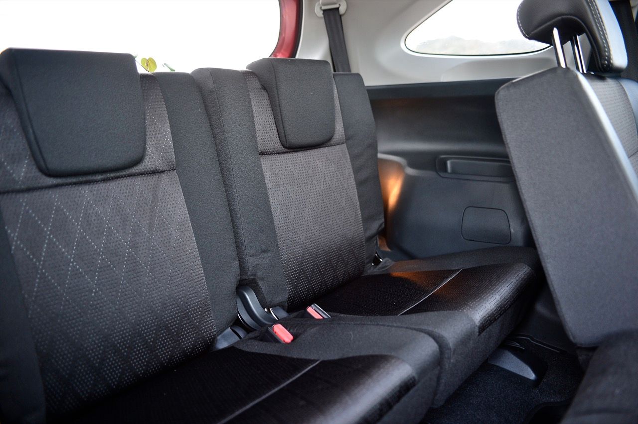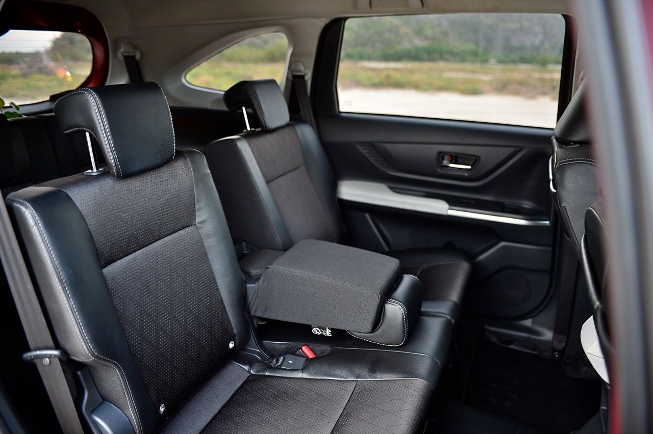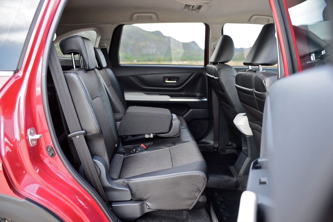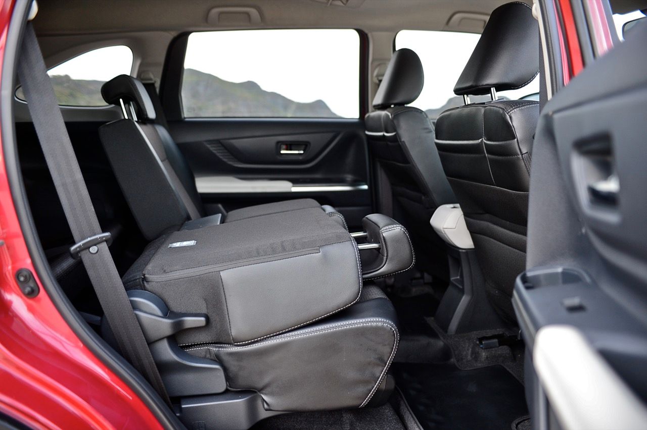 เมื่อมีผู้โดยสารถึง 6 คน เบาะแถวกลางหรือแถวที่สองออกแบบให้ปรับเอนได้เล็กน้อย เพื่อความสบายขณะเดินทางไกล ส่วนเบาะแถวสาม ค่อนข้างคับแคบเหมาะกับเด็กมากกว่าผู้ใหญ่ตัวโต เนื่องจาก พื้นที่วางขานั้นน้อยเกินไป หากเบาะแถวสองมีการปรับเอนเพื่อความสบายแผ่นหลัง พื้นที่วางเท้าของเบาะแถวสามก็จะยิ่งเหลือน้อยลงไปอีก ตำแหน่งของการนั่งโดยสาร แค่ 4-5 คนดูจะเหมาะสมและไม่สร้างความอึดอัดเมื่อต้องเดินทางไกล สำหรับระบบความปลอดภัย TSS เช่น ระบบรักษาช่องทางและช่วยดึงพวงมาลัยกลับเมื่อขับเข้าไปทับกับเส้นแบ่งช่องทางจราจรนั้นทำหน้าที่ได้ดี ระบบความปลอดภัยอื่นๆ เช่น ระบบช่วยออกตัวบนทางลาดชัน HAC ระบบช่วยเตือนมุมอับสายตาที่กระจกมองข้าง (Blind Spot Monitor) อันนี้ดีเลยสำหรับคนที่ไม่ค่อยจะระวังเวลาเปลี่ยนช่องทาง รวมถึงระบบช่วยเตือนขณะถอยรถ (Rear Cross Traffic Alert) ที่เหมาะกับการถอยจอดในที่คับแคบ ระบบความปลอดภัยก่อนการชน (Pre-Collision System) ส่วนระบบปรับไฟสูงอัตโนมัติ (Automatic High Beams) มีโอกาสได้ลองทดสอบบางช่วงของถนนไม่มีแสงไฟ ไฟอัตโนมัติของ Veloz Premium ทำงานเร็วใช้ได้และลดไฟสูงทันทีที่วิ่งเข้าไปใกล้กับท้ายรถคันหน้าหรือมีรถแล่นสวนทางมา