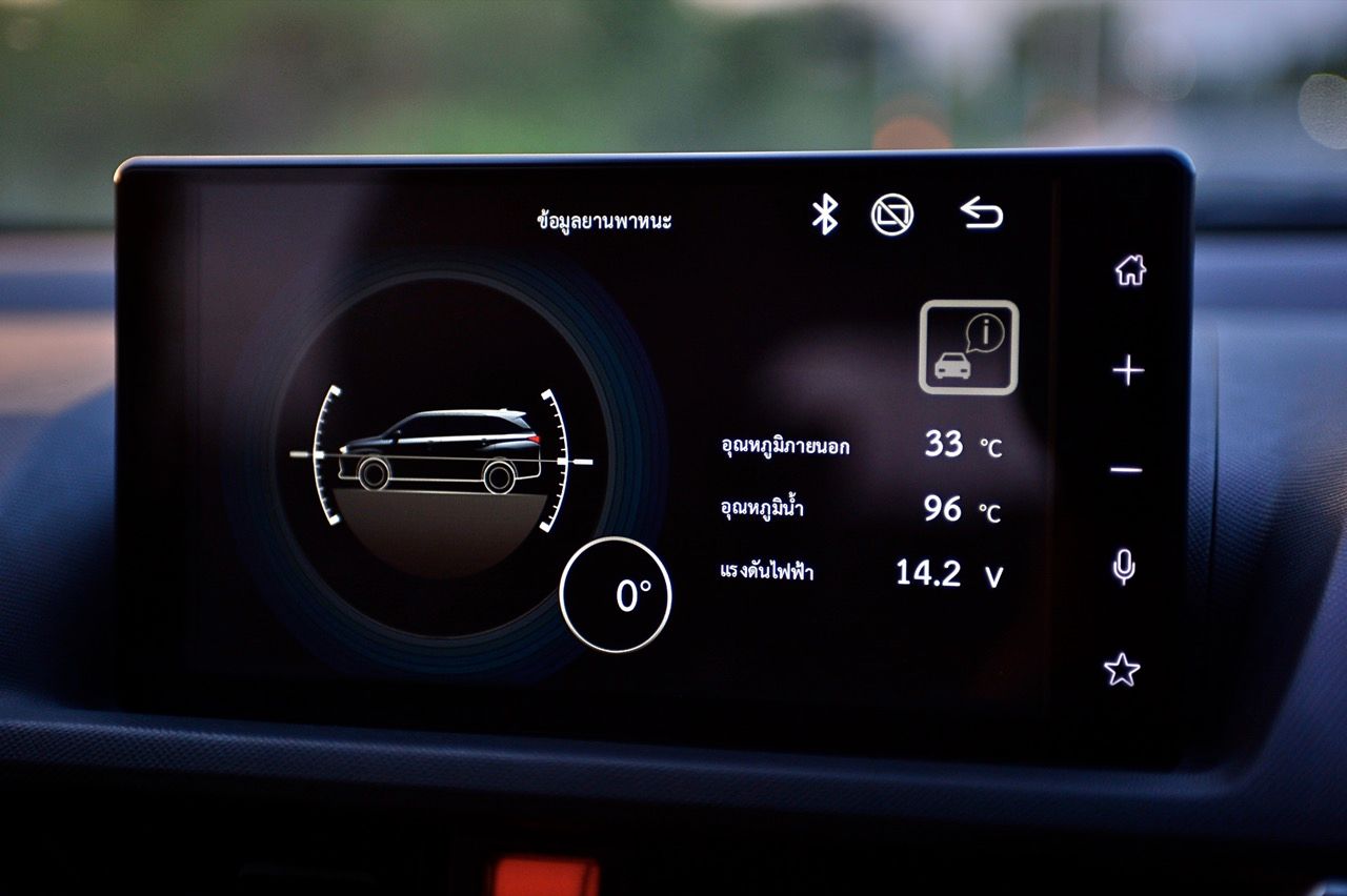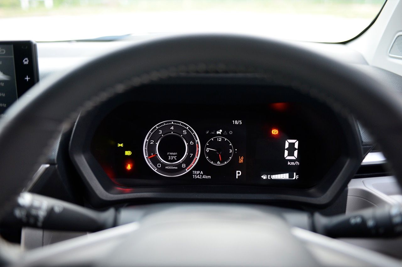 จอแสดงผลข้อมูลการขับขี่ (MID) แบบจอสี TFT ขนาด 7 นิ้ว เป็นมาตรวัดดิจิทัลที่ทันสมัย อ่านค่าได้ง่าย ทั้งวัดรอบเครื่องยนต์และความเร็วที่แสดงผลเป็นตัวเลขโตเท่ากับหม้อแกง! มาตรวัดของ Toyota Veloz ปรับเปลี่ยนการแสดงผลได้ 4 รูปแบบ มีทั้งแบบวัดรอบทรงกลมที่หมุนไป-มาซ้าย-ขวา คอยแจ้งเตือนระดับการทำงานของเครื่องยนต์ด้วยการวัดรอบเครื่องที่มีค่าแม่นยำใช้ได้ หน้าจอภาพยังมีจอแสดงข้อมูล MID multi function display ทั้งทริปมิเตอร์ ระดับเชื้อเพลิงในถัง คำนวณระยะทางต่อเชื้อเพลิงท่ีเหลืออยู่ ตำแหน่งของเกียร์ CVT รวมถึงไฟแจ้งเตือนสถานะการทำงานของระบบต่างๆ โดยเฉพาะระบบความปลอดภัย TSS