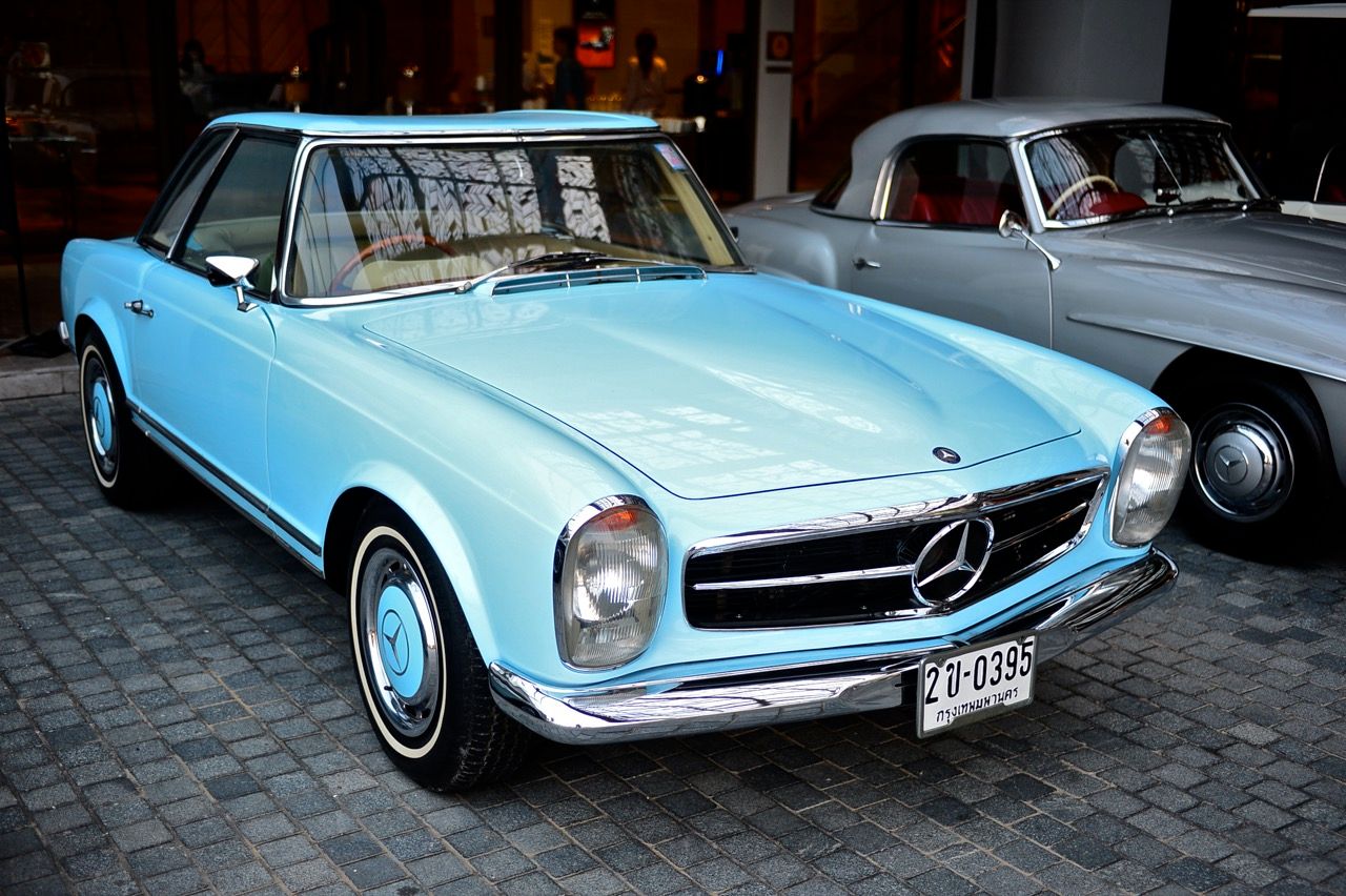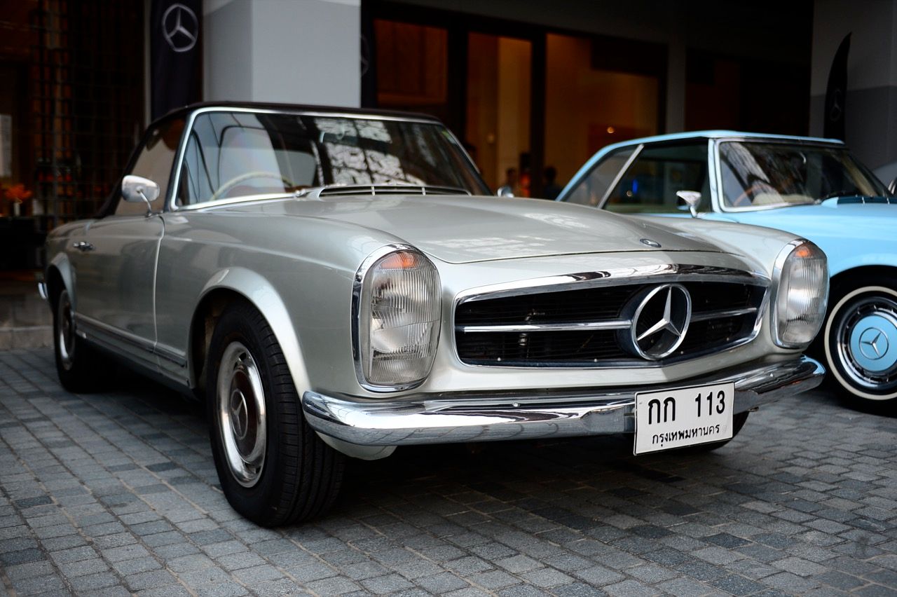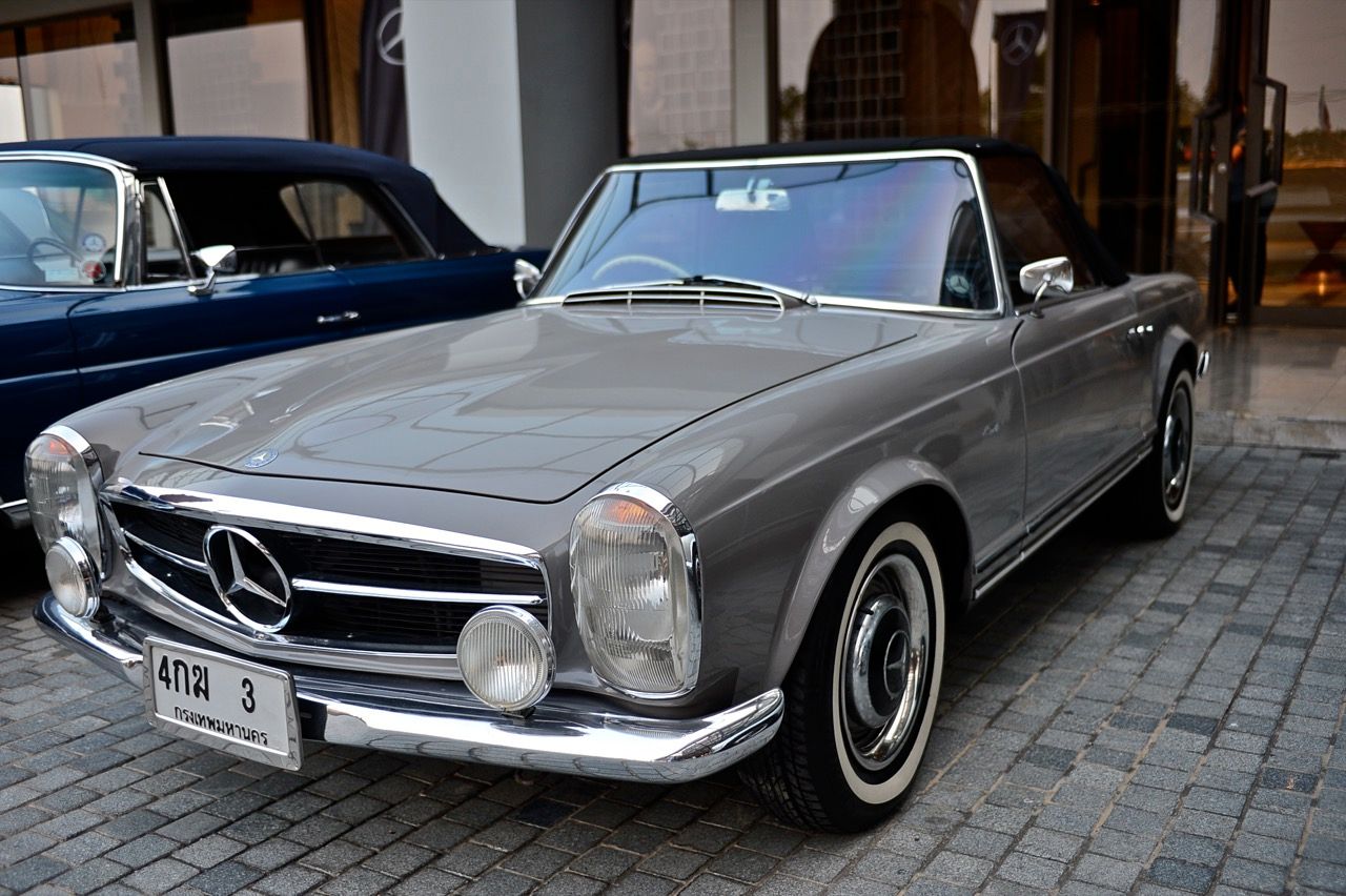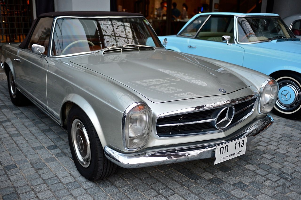 Mercedes-Benz 230SL W113 วางจำหน่ายตั้งแต่ฤดูร้อนปี ค.ศ. 1963 (พ.ศ. 2506) ด้วยหลังคาที่มีให้เลือกมากถึงสามรูปแบบ เริ่มจากหลังคาผ้าแบบพับได้ น้ำหนักเบาและออกแบบให้ใช้งานได้อย่างง่ายดาย ตามด้วยรุ่นเปิดประทุนที่มีหลังคาแข็งแบบฮาร์ดท็อปยกถอดออกได้ แต่ตัวถอดหลังคาแล้วห้อยไว้นั้นเหมาะกับรถยนต์ในพิพิธภัณฑ์มากกว่า หลังคาแบบสุดท้ายเป็นหลังคาฮาร์ดท็อปแนวรถคูเป้ สำหรับ W113 รุ่นนี้ จะไม่มีช่องเก็บหลังคาแบบ soft-top แต่มีพื้นที่สำหรับเก็บสัมภาระมากกว่าเดิม ทั้งสามเวอร์ชันสามารถขับเคลื่อนได้ด้วยการเปิดหลังคารับลม เบาะนั่งขวางด้านหลังเป็นอุปกรณ์เสริม เช่นเดียวกับ 190 SL แต่เหมาะกับหมาชิวาวามากกว่าจะให้คนเข้าไปนั่ง ส่วนใหญ่ จึงใช้วางกระเป๋าราคาแพงของสุภาพสตรีหรือของกระจุกกระจิกมากกว่า