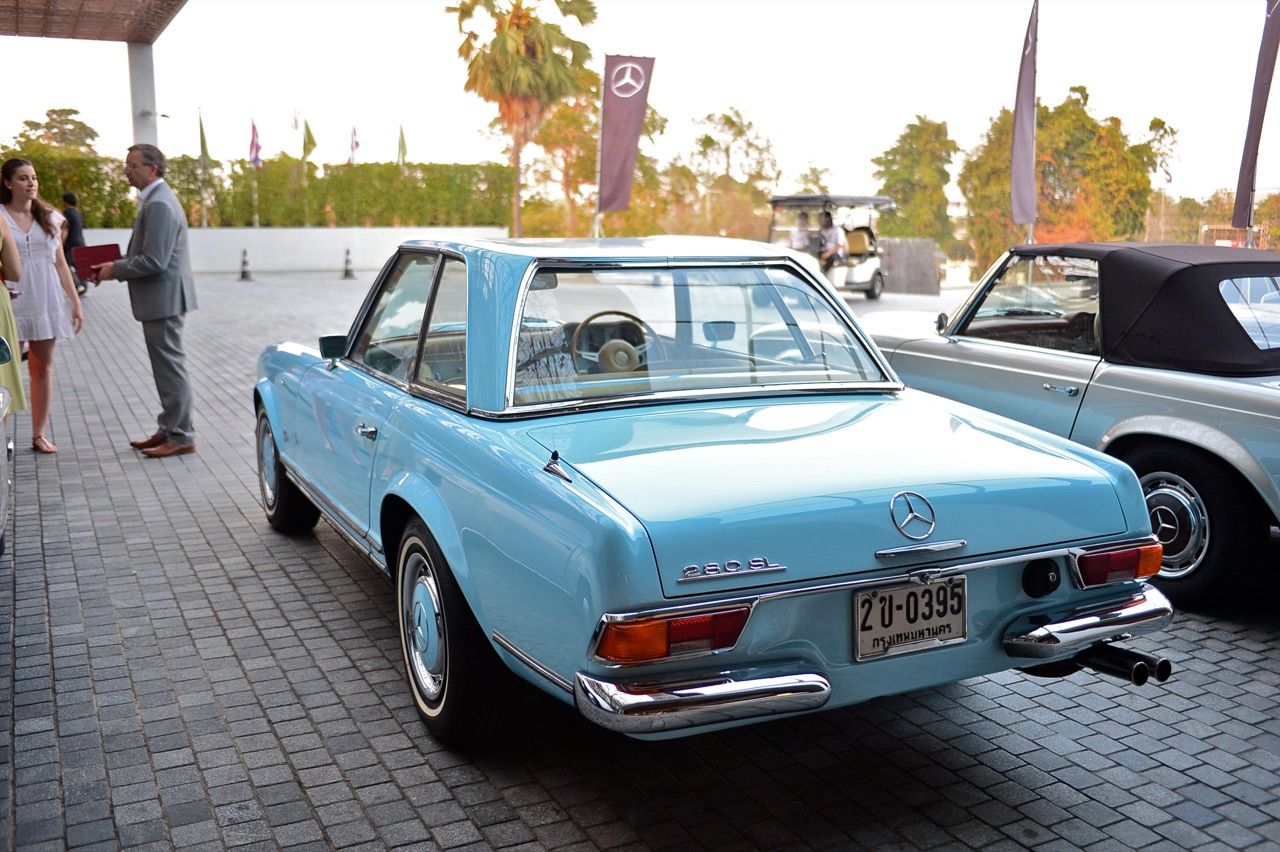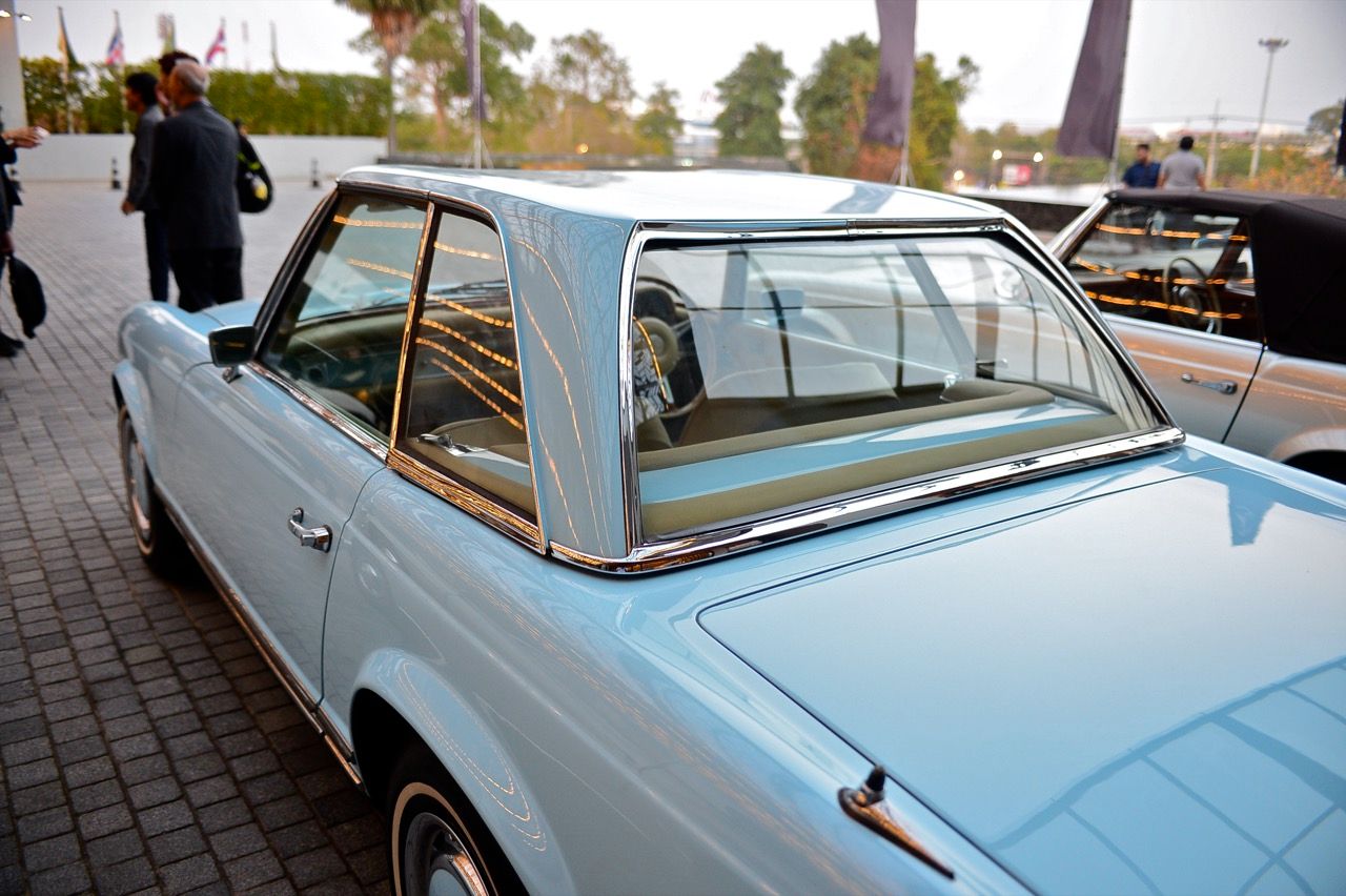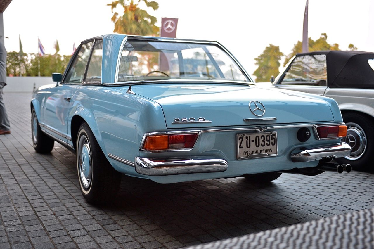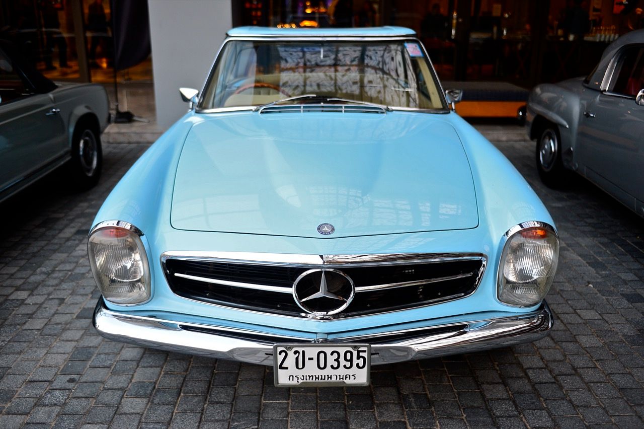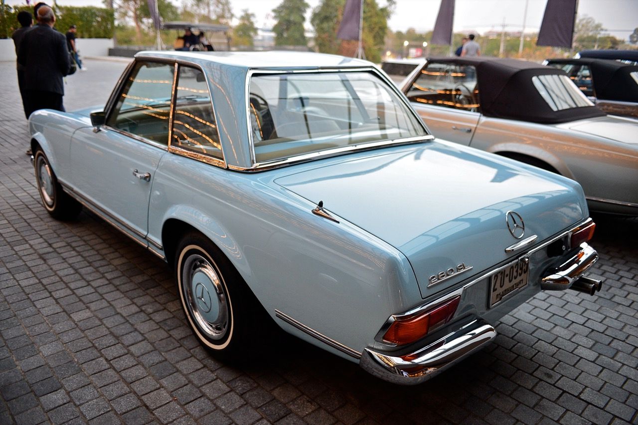 Mercedes-Benz 230SL W113 วางจำหน่ายตั้งแต่ฤดูร้อนปี ค.ศ. 1963 (พ.ศ. 2506) ด้วยหลังคาที่มีให้เลือกมากถึงสามรูปแบบ เริ่มจากหลังคาผ้าแบบพับได้ น้ำหนักเบาและออกแบบให้ใช้งานได้อย่างง่ายดาย ตามด้วยรุ่นเปิดประทุนที่มีหลังคาแข็งแบบฮาร์ดท็อปยกถอดออกได้ แต่ตัวถอดหลังคาแล้วห้อยไว้นั้นเหมาะกับรถยนต์ในพิพิธภัณฑ์มากกว่า หลังคาแบบสุดท้ายเป็นหลังคาฮาร์ดท็อปแนวรถคูเป้ สำหรับ W113 รุ่นนี้ จะไม่มีช่องเก็บหลังคาแบบ soft-top แต่มีพื้นที่สำหรับเก็บสัมภาระมากกว่าเดิม ทั้งสามเวอร์ชันสามารถขับเคลื่อนได้ด้วยการเปิดหลังคารับลม เบาะนั่งขวางด้านหลังเป็นอุปกรณ์เสริม เช่นเดียวกับ 190 SL แต่เหมาะกับหมาชิวาวามากกว่าจะให้คนเข้าไปนั่ง ส่วนใหญ่ จึงใช้วางกระเป๋าราคาแพงของสุภาพสตรีหรือของกระจุกกระจิกมากกว่า