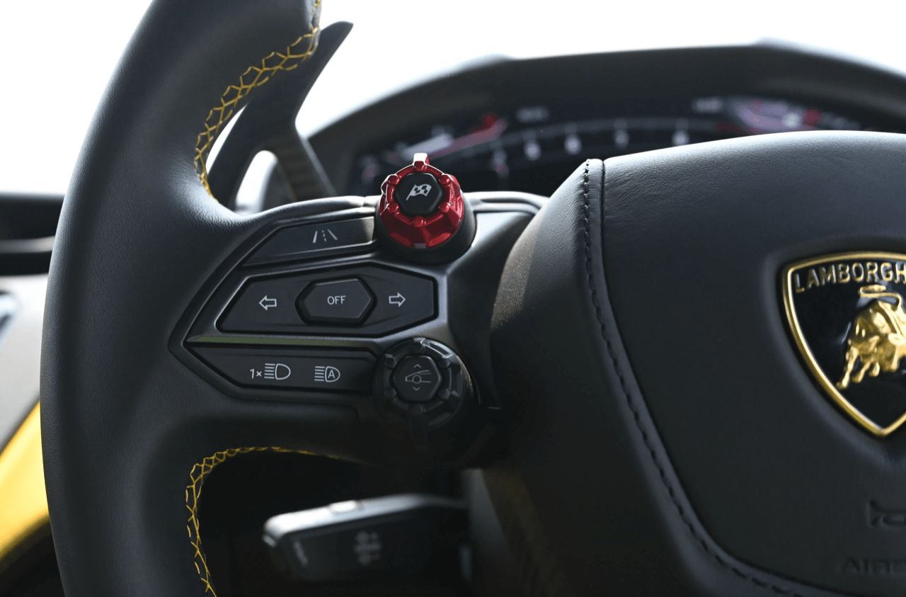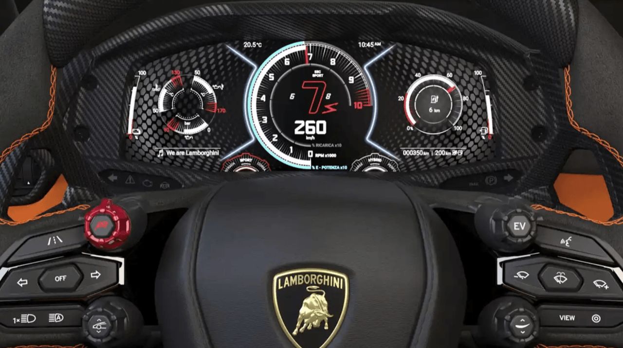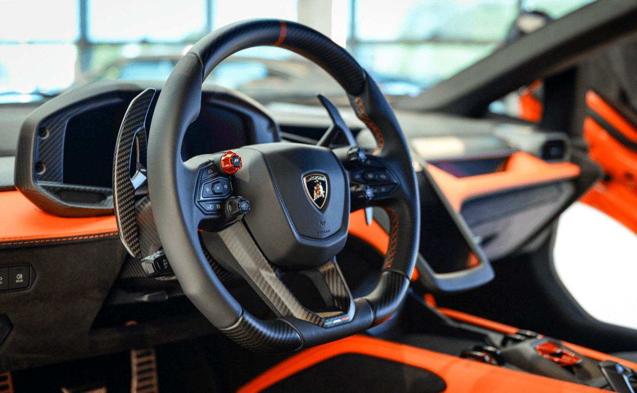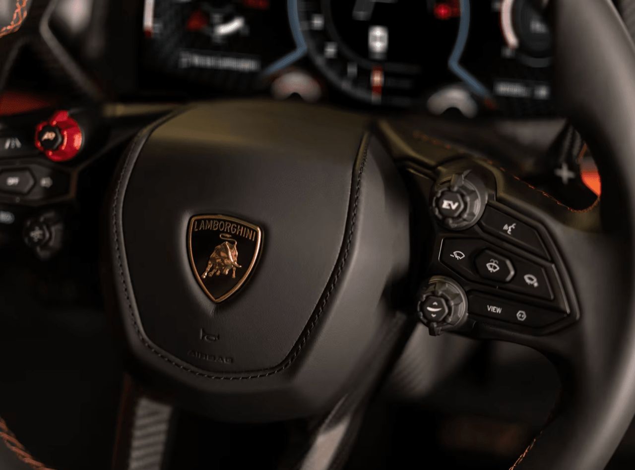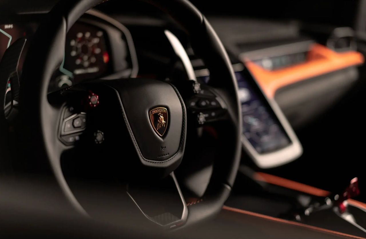 เส้นผ่าศูนย์กลาง 330 มม. มือจับที่ออกแบบตามหลักสรีรศาสตร์ จำลองรูปลักษณ์ ความรู้สึก และเค้าโครงของพวงมาลัยซูปเปอร์สปอร์ต จ ปุ่ม ลูกบิด และกลไกการตอบสนองแบบสัมผัสทุกส่วน สวิตช์หมุนที่เป็นเอกลักษณ์ ได้รับการสร้างสรรค์ขึ้นใหม่ เพื่อประสบการณ์ใช้งาน hypercar—Revuelto น้ำหนักของพวงมาลัยไฟฟ้าในโหมดปกติที่หนักกว่ารถบ้านประมาณ 2 เท่านั้นเหมาะสมกับซุปเปอร์คาร์รุ่นล่าสุดของค่ายกระทิงเปลี่ยว ระบบควบคุมเสถียรภาพ ระบบช่วยทรงตัวและกลไกไฟฟ้านับสิบรายการที่ต่อเชื่อมกับแกนประสาทของชุดบังคับเลี้ยวคอยประคับประคองรถให้อยู่กับร่องกับรอยโดยไม่ต้องออกแรงขืนกับพวงมาลัยมากจนเกินไป ความง่ายในการควบคุมของ Revuelto ถูกปรับมาให้เหมาะกับเศรษฐีขี้เบื่อที่ไม่ค่อยมีฝีไม้ลายมืออะไรมากนัก ขอเพียงแค่ขับรถเป็นและไม่เสียสติทำอะไรบ้าๆ มันจะพาคุณพุ่งไปข้างหน้าด้วยความรวดเร็วพร้อมๆ กับความสนุกสนานจากแรงจีในโค้ง พวงมาลัยที่ย่านความเร็วสูงปรับจูนให้เบาลงมานิดนึงเพื่อฟิลลิ่งการบังคับทิศทางที่ยอดเยี่ยม
