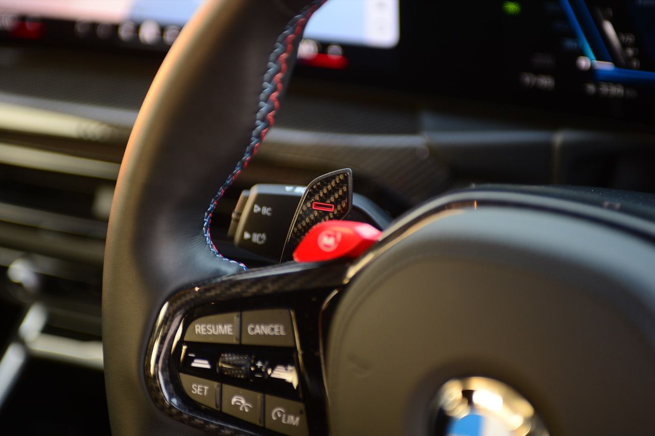 ทุกวันนี้ พวงมาลัยไฟฟ้าคือการเปลี่ยนแปลงครั้งใหญ่ในรถ M Car ของ BMW วิศวกรของ BMW M GmbH วางแผนงานการสร้างความรู้สึกใหม่ๆในระบบบังคับเลี้ยวบนรถสปอร์ตที่มีกำลังมากถึง 500-700 แรงม้า เป้าหมายในการออกแบบและผลิตเพื่อทำให้ประสิทธิภาพของชุดบังคับเลี้ยวในรถสปอร์ตรุ่นใหม่มีความเหนือชั้นกว่าพวงมาลัยของรถคู่แข่ง โดยภาพรวม พวงมาลัยของ M3/M4 G80-G82 เหนือกว่ารุ่นที่แล้วอย่างชัดเจนในด้านของการทดน้ำหนักและการส่งถ่ายความรู้สึกของการควบคุมทั้ง น้ำหนัก การตอบสนอง และประสิทธิภาพของความแม่นยำ ระบบมอเตอร์ไฟฟ้า พร้อมวาล์วแบบใหม่ กลบเกลื่อนสิ่งที่เคยขาดหายไปใน BMW M3 f80 รุ่นเก่า นอกจากสัมผัสที่ดีเยี่ยมแล้ว พวงมาลัยแบบใหม่รุ่นนี้ยังมีน้ำหนักลดลงอีก 1 กิโลกรัม รวมถึงยังช่วยทำให้ประหยัดเชื้อเพลิงขึ้นอีกนิด