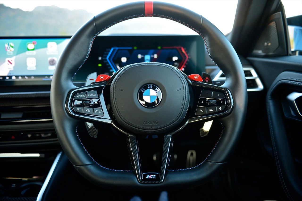 พวงมาลัยพาวเวอร์ไฟฟ้า BMW M Servotronic มีความแม่นยำสูง เพื่อการควบคุมจักรกลแห่งตำนานของ BMW ซึ่งมีกำลังเฉลี่ย 500-700 แรงม้า พวงมาลัยของ M2 M3 / M4 ประกอบด้วยฟังก์ชั่นบูรณาการ ครอบคลุมการขับขี่ทุกโหมดการขับเคลื่อน ด้วยการปรับตั้งน้ำหนักแบบอัตโนมัติด้วยระบบอิเล็กทรอนิกส์ Servotronic ใช้กลไกของวาล์วและมอเตอร์ไฟฟ้าปรับระดับของน้ำหนักตามความเร็วให้มีค่าที่เหมาะสมกับลักษณะของการขับขี่ พวงมาลัยสำหรับ BMW M2 M3 และ M4 ยังทำงานเชื่อมโยงกับโหมดการขับผ่านการตั้งค่า ผู้ขับสามารถเลือกโหมด ROAD / SPORT / TRACK ช่วยให้ระดับของน้ำหนักมีความเหมาะสมไปกับความเร็วในขณะนั้นๆ กลศาสตร์ขั้นสูงของแกนพวงมาลัย กับซอฟต์แวร์ที่ปรับตั้งมาเป็นอย่างดี ส่งผลให้เกิดความแม่นยำ และตอบสนองอย่างน่าทึ่ง โดยเชื่อมโยงการทำงานกับระบบรองรับได้เป็นอย่างดี