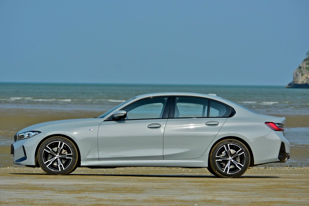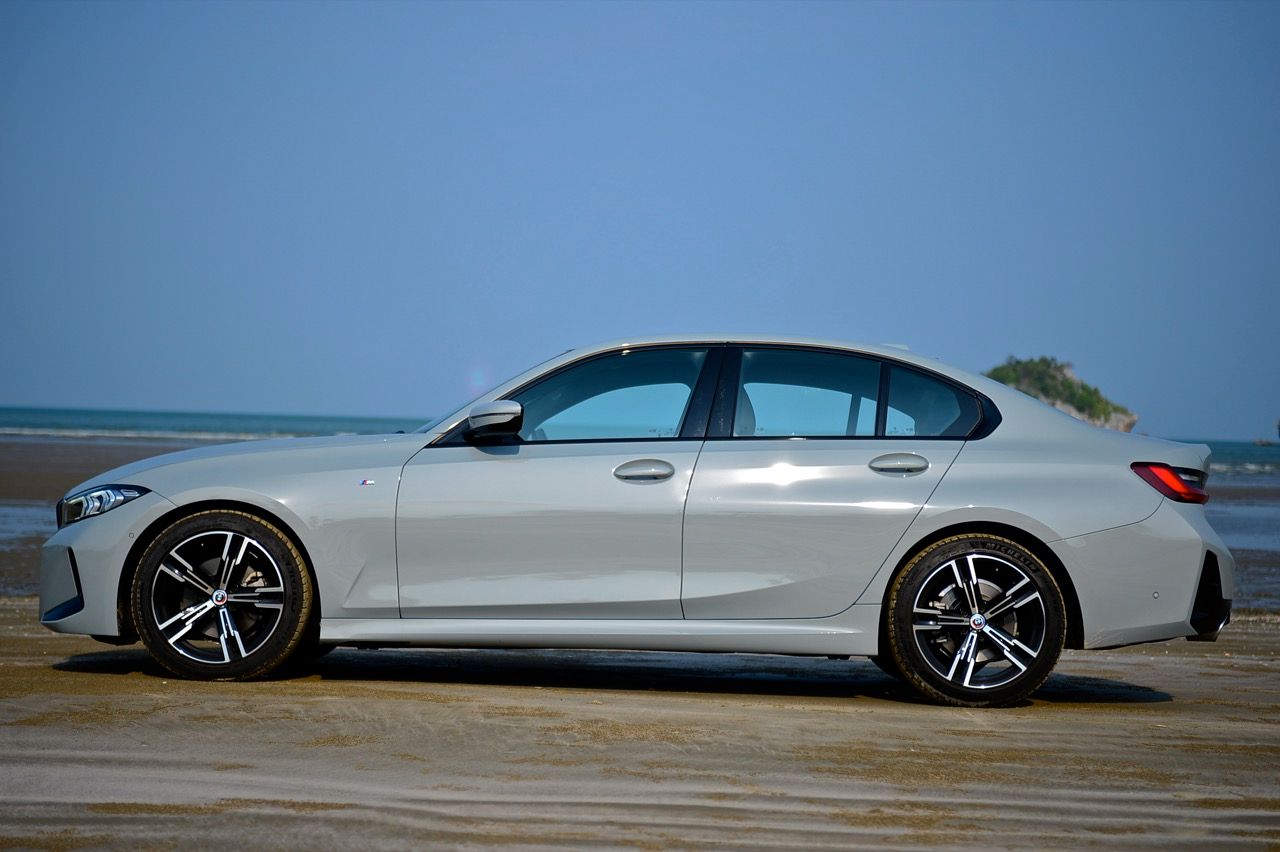 ลูกค้าที่ยกระดับตัวเองจากรถญี่ปุ่นแล้วหันมาซื้อ Series-3 แน่นอนว่า...มีความคาดหวังสูงมาก น้ำหนักตัวที่พอดีกับขนาดของตัวถัง มิติตัวถังมีขนาดที่ใหญ่ขึ้นคือ เรื่องที่มีความขัดแย้งกันสำหรับงานวิศวกรรมยานยนต์สมัยใหม่ BMW 320d M Sport ความยาว 4,709 มิลลิเมตร สัดส่วนความกว้างอยู่ที่ 1,827 มิลลิเมตร สำหรับความสูงของ 320d อยู่ที่ 1,435 มิลลิเมตร น้ำหนัก 1,530 กิโลกรัม ขนาดของตัวถังที่ใหญ่ขึ้นเมื่อเทียบกับ Series-3 รหัส F30 ผนวกกับฐานล้อที่ยาวขึ้นทำให้พื้นที่ห้องโดยสารของ Series-3 G20 มีขนาดที่เกือบจะเท่ากับรถรุ่นพี่อย่าง Series-5 G30 เลยทีเดียว โดยเฉพาะพื้นที่เบาะคู่หน้า ส่วนล้อและยางของ 320d M Sport LCI ใส่ล้ออัลลอย M ลาย 5 ก้านแบบใหม่ ขอบ 18 นิ้ว ขนาด 7.5Jx18 ยางสปอร์ตยี่ห้อ michelin pilot sport 4ZP ยางหน้าไซส์ 225/45R18 95Y ยางหลัง 255/40R18 89Y