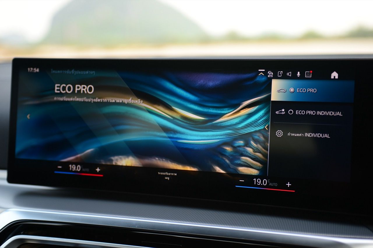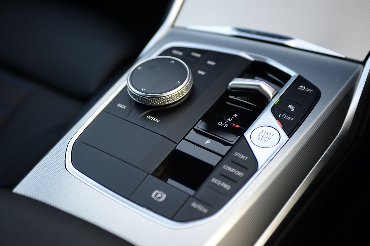 การปรับเปลี่ยนหัวเกียร์ใหม่ให้กลายเป็นสวิตช์สี่เหลี่ยมเล็กๆ ที่ใช้นิ้วจับเลื่อนขึ้นลงในตำแหน่ง RND และ D/S หัวเกียร์เล็กจิ๋ว มีดีไซน์ที่เก๋ไก๋ทันสมัยแต่ให้ความรู้สึกแปลกๆ เวลาใช้งาน หัวเกียร์ ZF-8HP หน้าตาประหลาดจะอยู่ใน BMW ยุคใหม่เกือบทุกรุ่นยกเว้น M Car ข้างคันเกียร์ด้านซ้ายมีปุ่มควบคุมอยู่เพียบ เช่น ปุ่มแทรคชั่นคอนโทรล ปุ่มสตาร์ตเครื่องยนต์สีเงินยวง ปุ่มควบคุมระบบถอยหลังอัตโนมัติที่มาพร้อมกับกล้องมองภาพ ปุ่มปรับโหมดของการขับเคลื่อน เช่น SPORT / COMFORT/ ECO/ ปุ่มควบคุมระบบเบรก Auto Brake hold สวิตช์เบรกมือไฟฟ้า ด้านซ้ายของคันเกียร์ติดตั้งสวิตช์ควบคุมมัลติฟังก์ชันระบบ iDRIVE 8 แบบใหม่เชื่อมโยงกับระบบ BMW live cockpit professional มาพร้อมเมนูภาษาไทยและฟังก์ชันใช้งานเพิ่มเติมที่ใส่เข้ามาให้ใช้กันอย่างนับไม่ถ้วน ที่ชอบก็คือการสั่งงานด้วยเสียงภาษาไทยที่ระบบจะตอบโต้กับคำสั่งได้ดีขึ้น