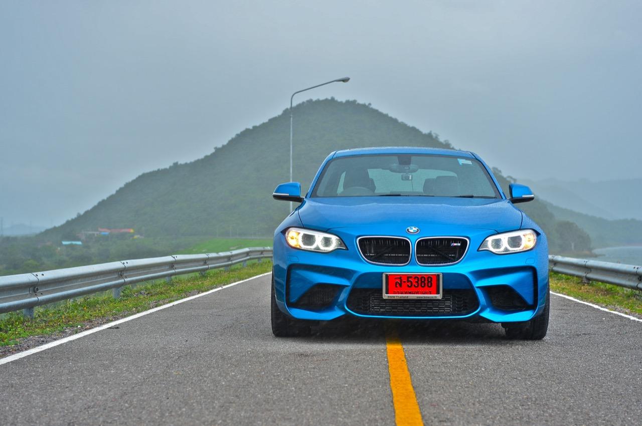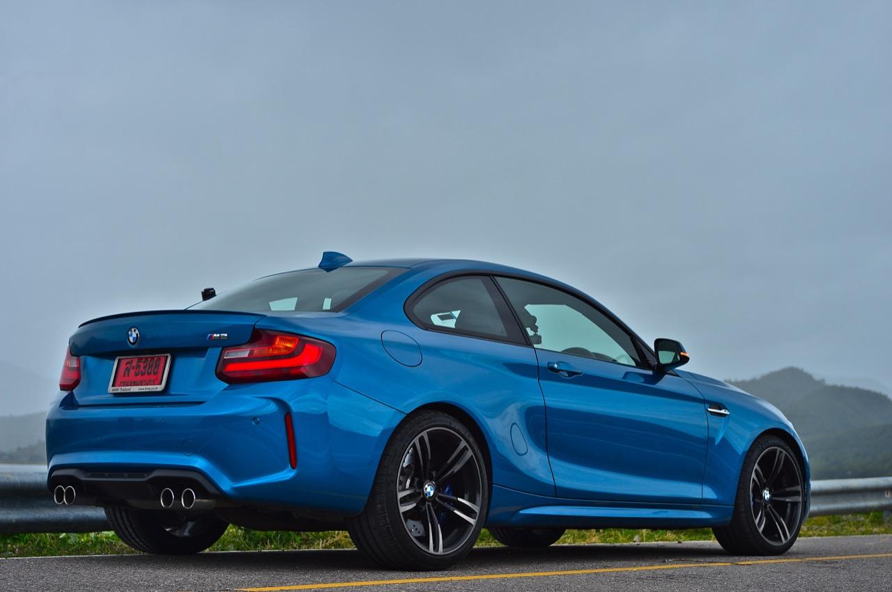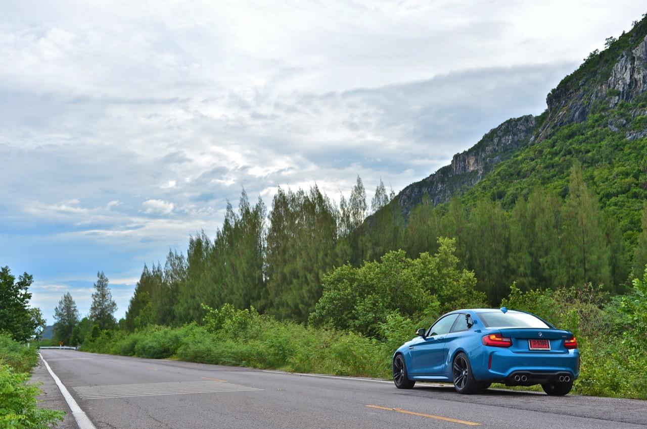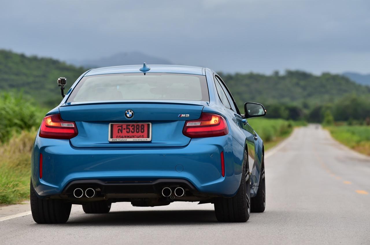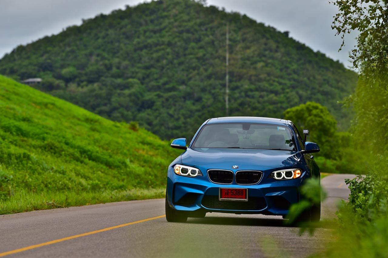ถนนเล็กๆ แถบปากน้ำปราณไปจนถึงอุทยานสามร้อยยอด เจ้า M2 ก็ยังทำตัวเหมือนเดิมไม่เปลี่ยนแปลง นั่นก็คือทั้งแข็งขืนและแม่นยำ การถ่ายเทน้ำหนักอยู่ในเกณฑ์ที่ดีมาก ไม่ว่าจะหวดมาเต็มในโค้งหรือเบรกหนักๆ เพื่อลดความเร็วก็ไม่มีอาการซวนเป๋เซไปมา สมรรถนะด้านอัตราเร่งจาก 0-100 ทำได้ 4.5 วินาที ช้ากว่า M4 นิดเดียวเท่านั้น ความเร็วสูงสุดเป็นเรื่องอันตรายไม่ควรขับให้ถึงขอบเขตจำกัดด้วยความเร็วที่สูงมากขนาดนั้น (250 กิโลเมตรต่อชั่วโมง และ 280 กิโลเมตรต่อชั่วโมงด้วยแพ็กเก็จ M-Driver Package ซึ่งจะปลดล็อกความเร็วให้ขยับไปใกล้ 300 กิโลเมตรต่อชั่วโมง! เป็นเครื่องยนต์และระบบเกียร์ที่สมบูรณ์แบบและมีกำลังมากพอที่จะฟรีทิ้งเมื่อออกตัวเร็วๆ ด้วยเกียร์ 2 แรงบิด 500 นิวตันเมตร น้อยกว่า M4 ที่ทำได้ 550 นิวตันเมตร แต่พอขับแล้วแทบไม่รู้สึกถึงความแตกต่าง ที่ชอบมากก็คือเสียงท่อและเสียงเครื่องยนต์ทำงานในรอบสูง เป็นความชอบที่ต้องแลกด้วยอาการซดเชื้อเพลิงแต่ก็ยอมเพราะมันสุดจริงๆ