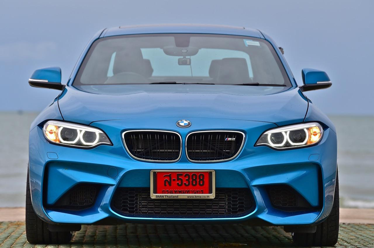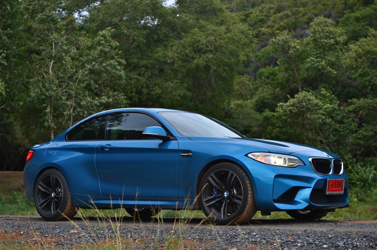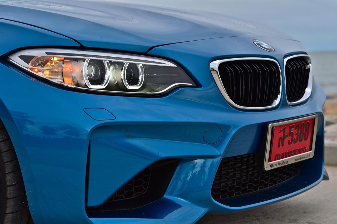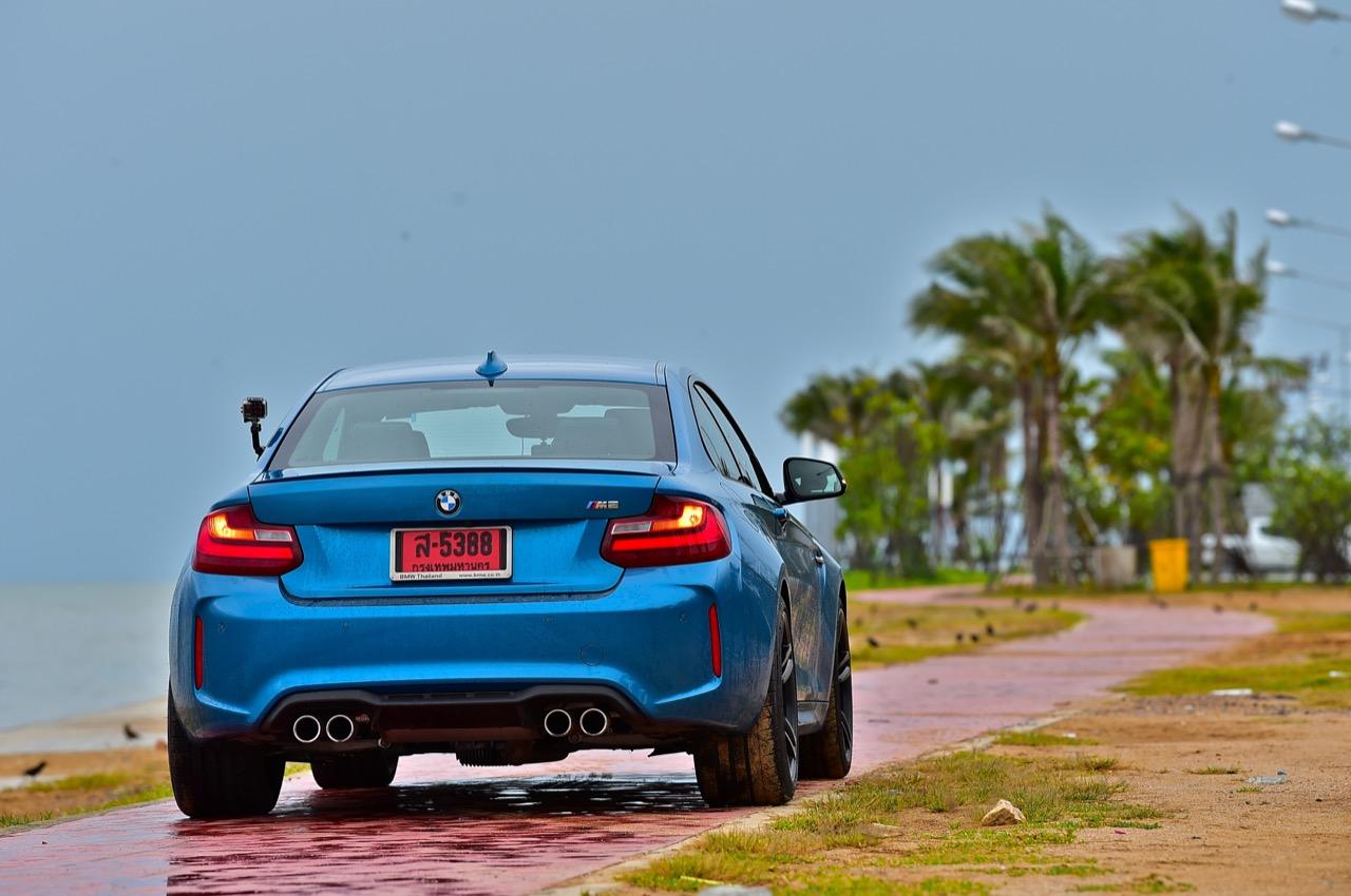 ถนนเล็กๆ แถบปากน้ำปราณไปจนถึงอุทยานสามร้อยยอด เจ้า M2 ก็ยังทำตัวเหมือนเดิมไม่เปลี่ยนแปลง นั่นก็คือทั้งแข็งขืนและแม่นยำ การถ่ายเทน้ำหนักอยู่ในเกณฑ์ที่ดีมาก ไม่ว่าจะหวดมาเต็มในโค้งหรือเบรกหนักๆ เพื่อลดความเร็วก็ไม่มีอาการซวนเป๋เซไปมา สมรรถนะด้านอัตราเร่งจาก 0-100 ทำได้ 4.5 วินาที ช้ากว่า M4 นิดเดียวเท่านั้น ความเร็วสูงสุดเป็นเรื่องอันตรายไม่ควรขับให้ถึงขอบเขตจำกัดด้วยความเร็วที่สูงมากขนาดนั้น (250 กิโลเมตรต่อชั่วโมง และ 280 กิโลเมตรต่อชั่วโมงด้วยแพ็กเก็จ M-Driver Package ซึ่งจะปลดล็อกความเร็วให้ขยับไปใกล้ 300 กิโลเมตรต่อชั่วโมง! เป็นเครื่องยนต์และระบบเกียร์ที่สมบูรณ์แบบและมีกำลังมากพอที่จะฟรีทิ้งเมื่อออกตัวเร็วๆ ด้วยเกียร์ 2 แรงบิด 500 นิวตันเมตร น้อยกว่า M4 ที่ทำได้ 550 นิวตันเมตร แต่พอขับแล้วแทบไม่รู้สึกถึงความแตกต่าง ที่ชอบมากก็คือเสียงท่อและเสียงเครื่องยนต์ทำงานในรอบสูง เป็นความชอบที่ต้องแลกด้วยอาการซดเชื้อเพลิงแต่ก็ยอมเพราะมันสุดจริงๆ