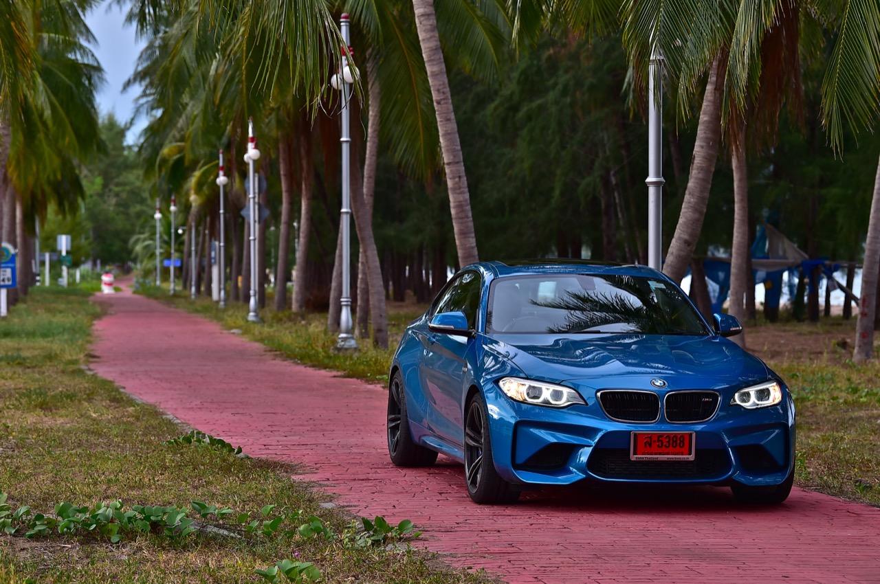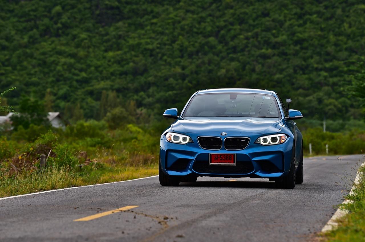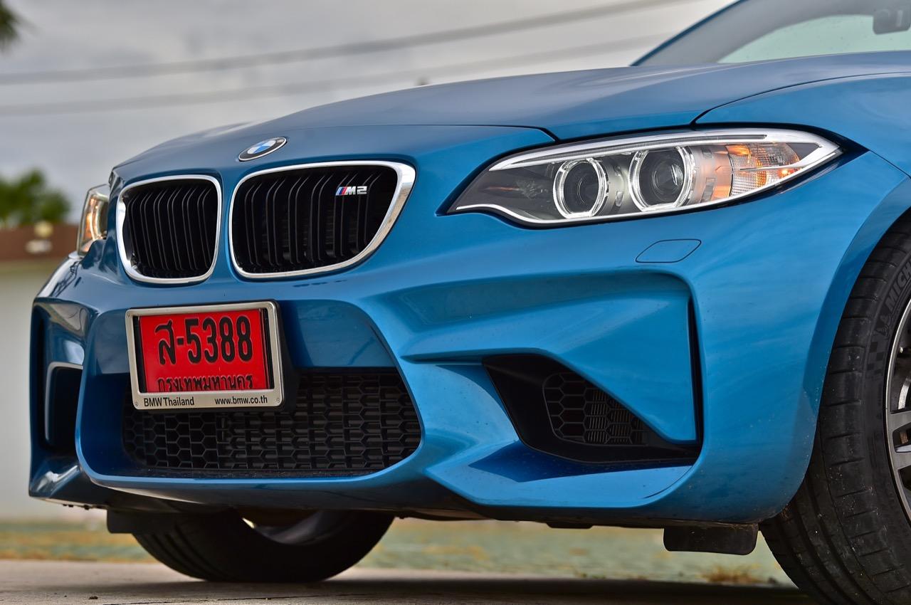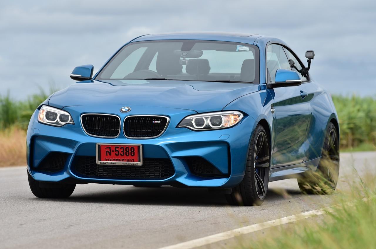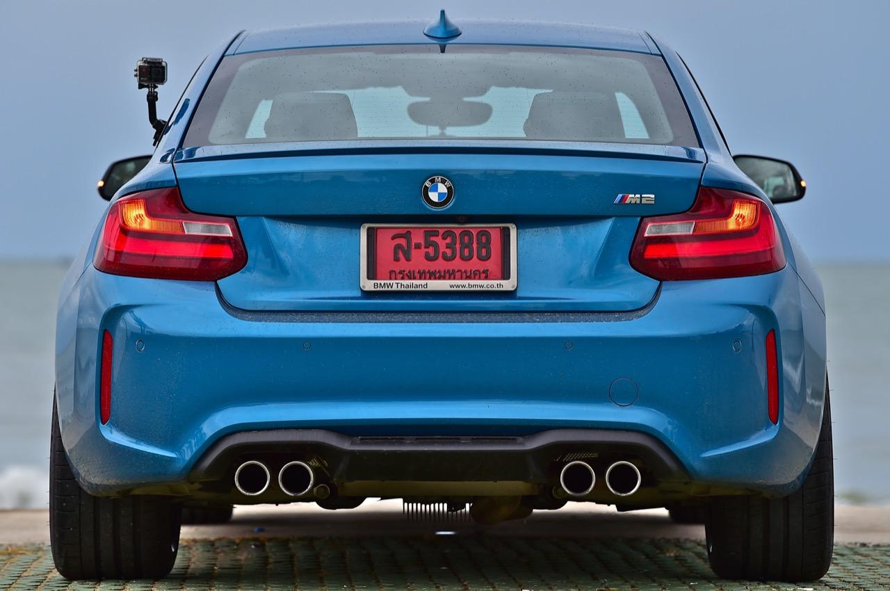 ถนนเล็กๆ แถบปากน้ำปราณไปจนถึงอุทยานสามร้อยยอด เจ้า M2 ก็ยังทำตัวเหมือนเดิมไม่เปลี่ยนแปลง นั่นก็คือทั้งแข็งขืนและแม่นยำ การถ่ายเทน้ำหนักอยู่ในเกณฑ์ที่ดีมาก ไม่ว่าจะหวดมาเต็มในโค้งหรือเบรกหนักๆ เพื่อลดความเร็วก็ไม่มีอาการซวนเป๋เซไปมา สมรรถนะด้านอัตราเร่งจาก 0-100 ทำได้ 4.5 วินาที ช้ากว่า M4 นิดเดียวเท่านั้น ความเร็วสูงสุดเป็นเรื่องอันตรายไม่ควรขับให้ถึงขอบเขตจำกัดด้วยความเร็วที่สูงมากขนาดนั้น (250 กิโลเมตรต่อชั่วโมง และ 280 กิโลเมตรต่อชั่วโมงด้วยแพ็กเก็จ M-Driver Package ซึ่งจะปลดล็อกความเร็วให้ขยับไปใกล้ 300 กิโลเมตรต่อชั่วโมง! เป็นเครื่องยนต์และระบบเกียร์ที่สมบูรณ์แบบและมีกำลังมากพอที่จะฟรีทิ้งเมื่อออกตัวเร็วๆ ด้วยเกียร์ 2 แรงบิด 500 นิวตันเมตร น้อยกว่า M4 ที่ทำได้ 550 นิวตันเมตร แต่พอขับแล้วแทบไม่รู้สึกถึงความแตกต่าง ที่ชอบมากก็คือเสียงท่อและเสียงเครื่องยนต์ทำงานในรอบสูง เป็นความชอบที่ต้องแลกด้วยอาการซดเชื้อเพลิงแต่ก็ยอมเพราะมันสุดจริงๆ