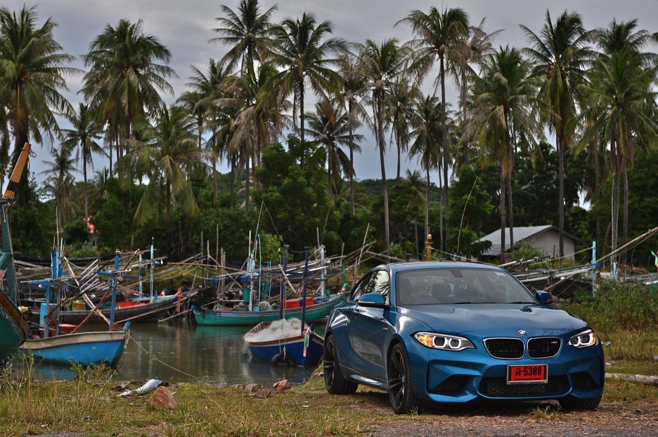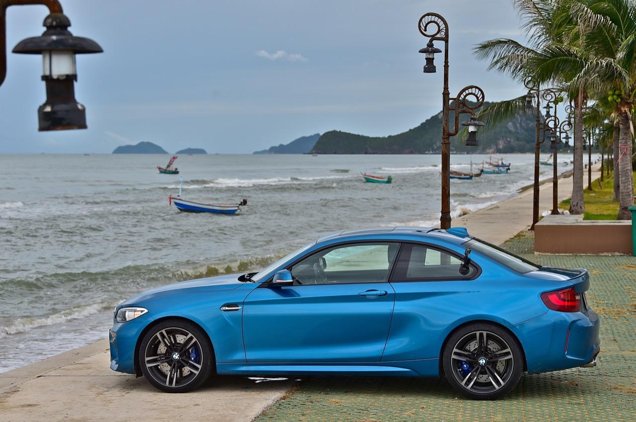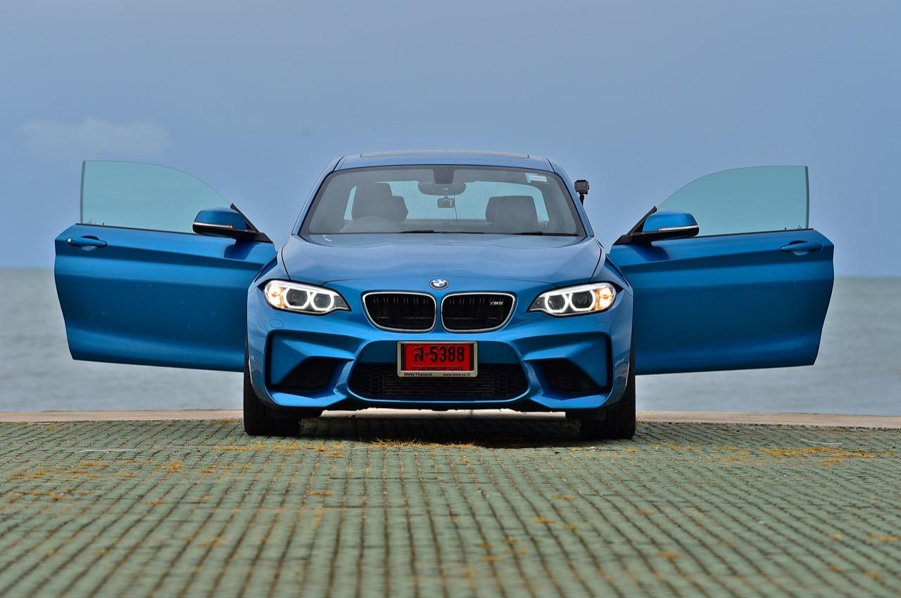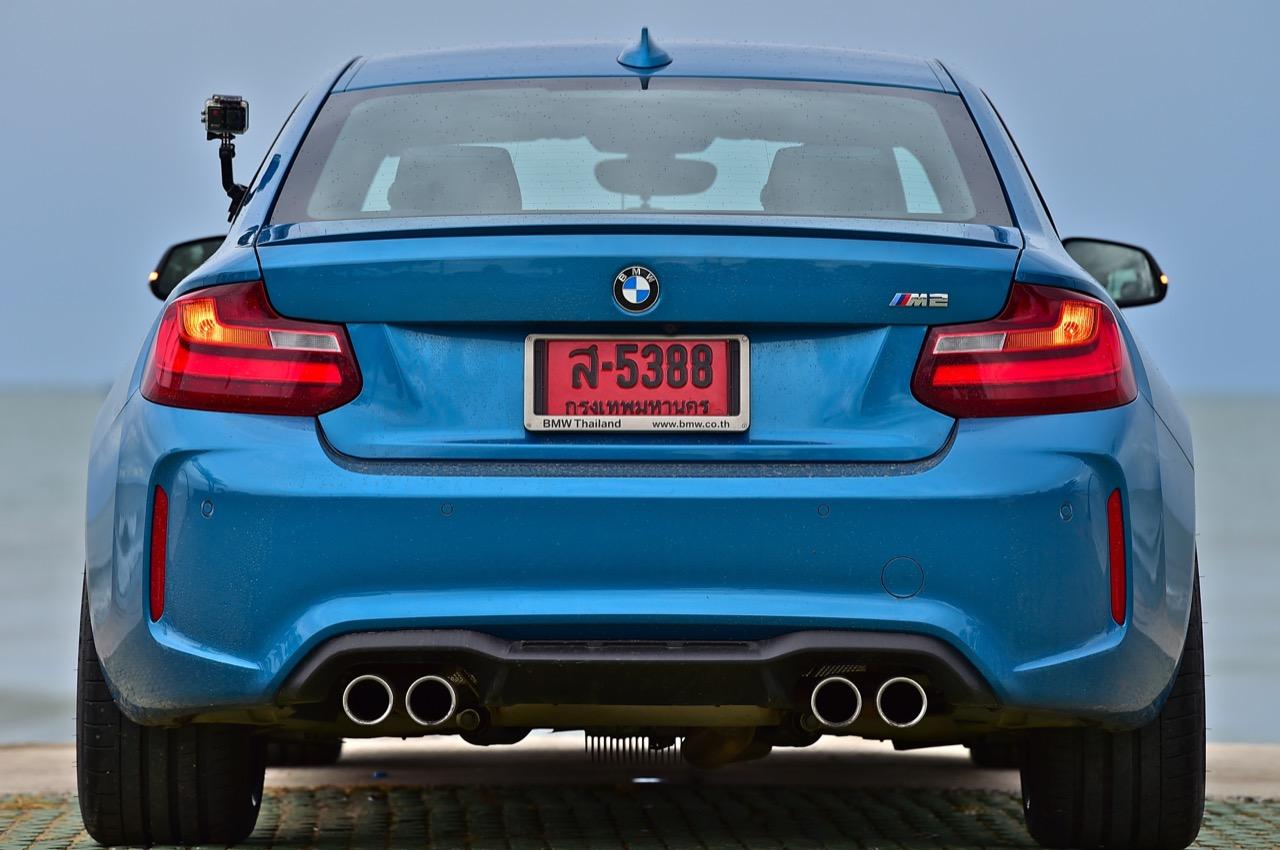 ถนนเล็กๆ แถบปากน้ำปราณไปจนถึงอุทยานสามร้อยยอด เจ้า M2 ก็ยังทำตัวเหมือนเดิมไม่เปลี่ยนแปลง นั่นก็คือทั้งแข็งขืนและแม่นยำ การถ่ายเทน้ำหนักอยู่ในเกณฑ์ที่ดีมาก ไม่ว่าจะหวดมาเต็มในโค้งหรือเบรกหนักๆ เพื่อลดความเร็วก็ไม่มีอาการซวนเป๋เซไปมา สมรรถนะด้านอัตราเร่งจาก 0-100 ทำได้ 4.5 วินาที ช้ากว่า M4 นิดเดียวเท่านั้น ความเร็วสูงสุดเป็นเรื่องอันตรายไม่ควรขับให้ถึงขอบเขตจำกัดด้วยความเร็วที่สูงมากขนาดนั้น (250 กิโลเมตรต่อชั่วโมง และ 280 กิโลเมตรต่อชั่วโมงด้วยแพ็กเก็จ M-Driver Package ซึ่งจะปลดล็อกความเร็วให้ขยับไปใกล้ 300 กิโลเมตรต่อชั่วโมง! เป็นเครื่องยนต์และระบบเกียร์ที่สมบูรณ์แบบและมีกำลังมากพอที่จะฟรีทิ้งเมื่อออกตัวเร็วๆ ด้วยเกียร์ 2 แรงบิด 500 นิวตันเมตร น้อยกว่า M4 ที่ทำได้ 550 นิวตันเมตร แต่พอขับแล้วแทบไม่รู้สึกถึงความแตกต่าง ที่ชอบมากก็คือเสียงท่อและเสียงเครื่องยนต์ทำงานในรอบสูง เป็นความชอบที่ต้องแลกด้วยอาการซดเชื้อเพลิงแต่ก็ยอมเพราะมันสุดจริงๆ