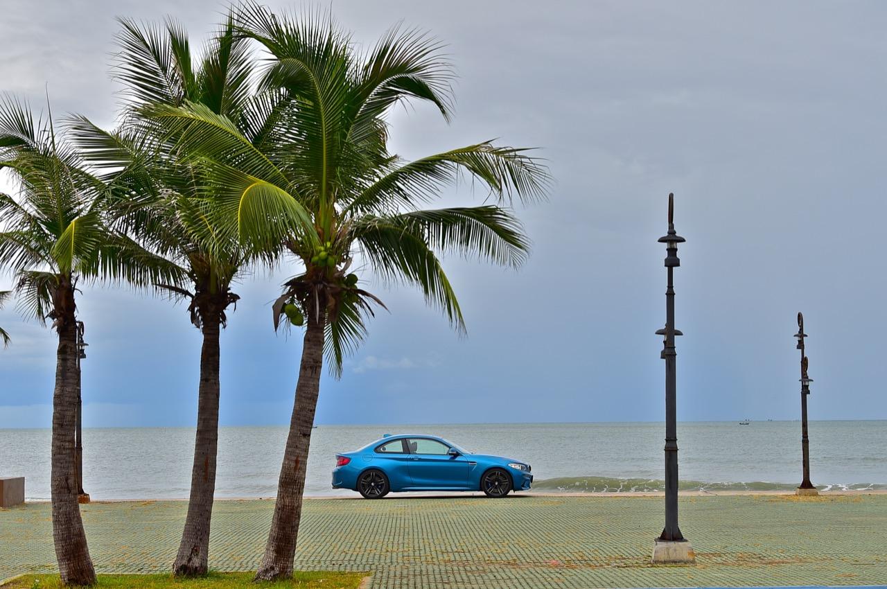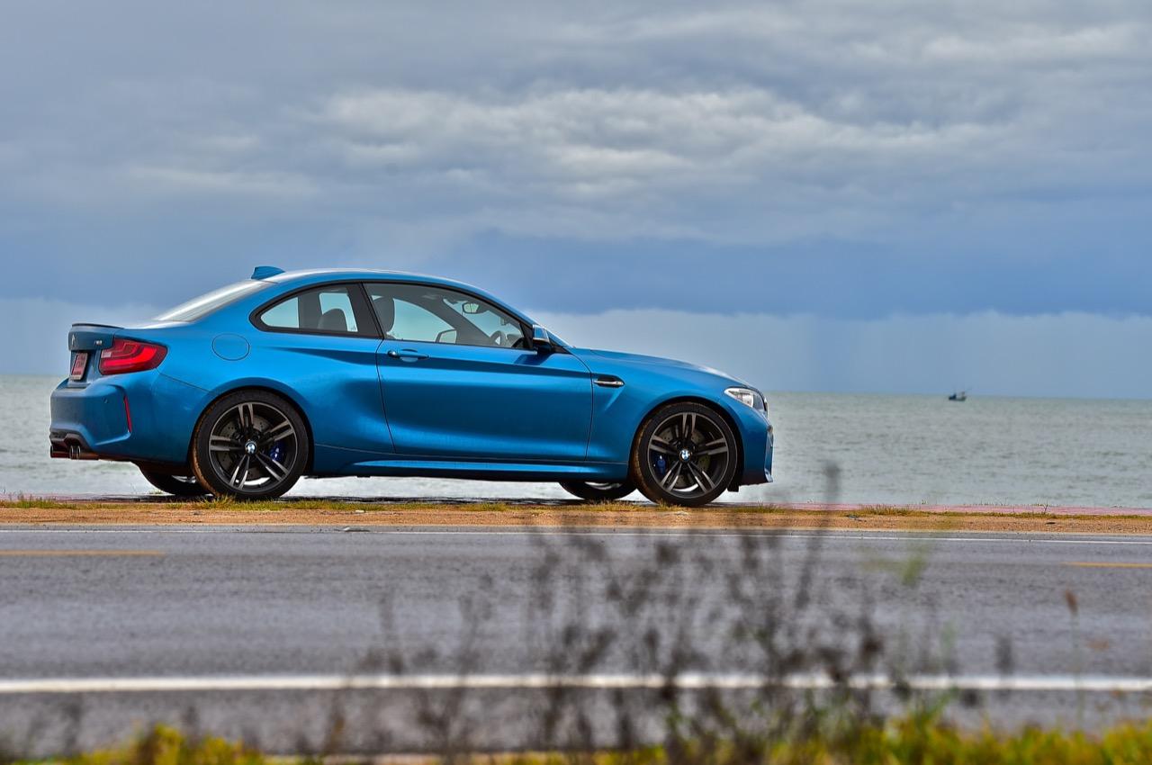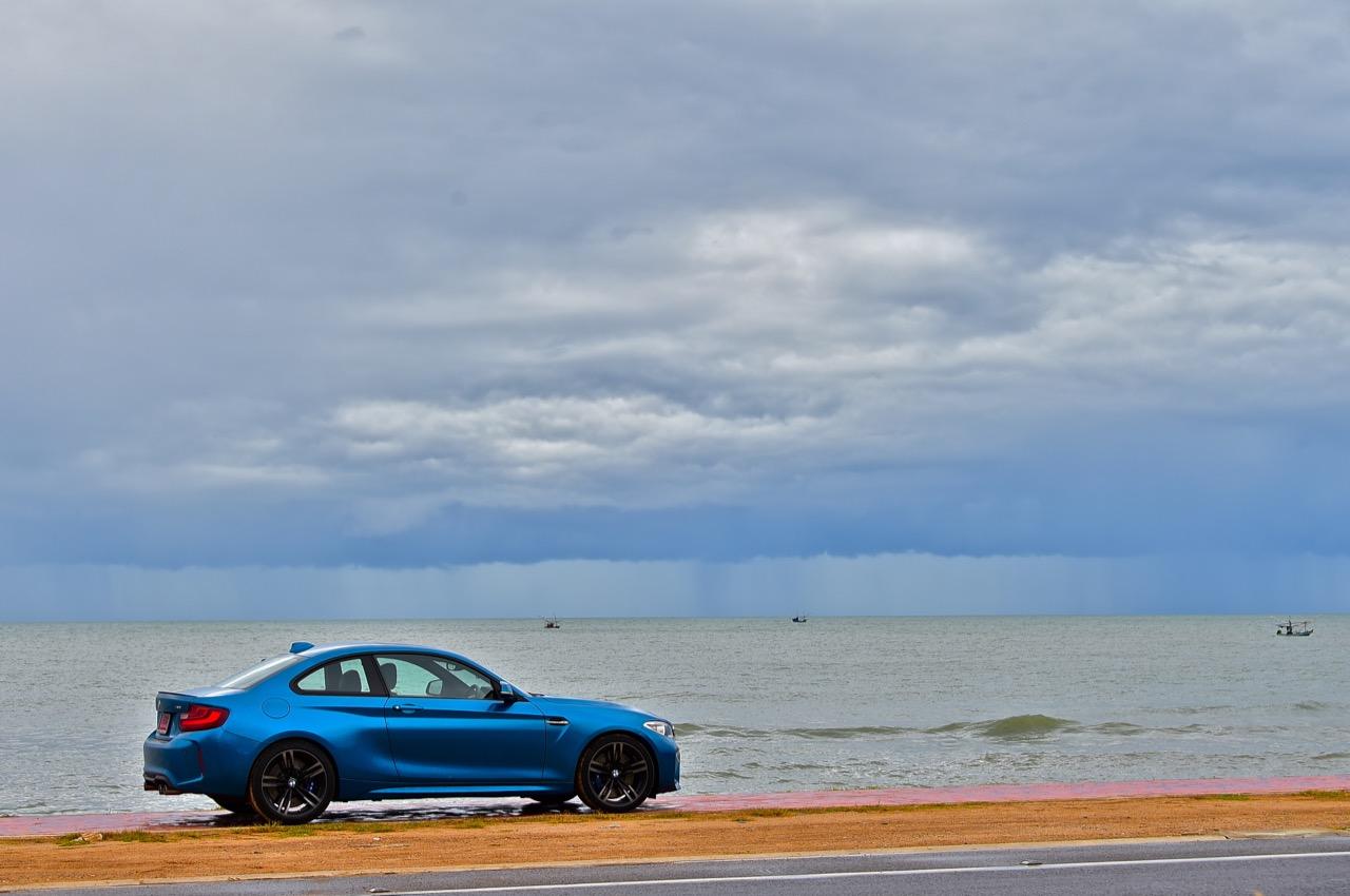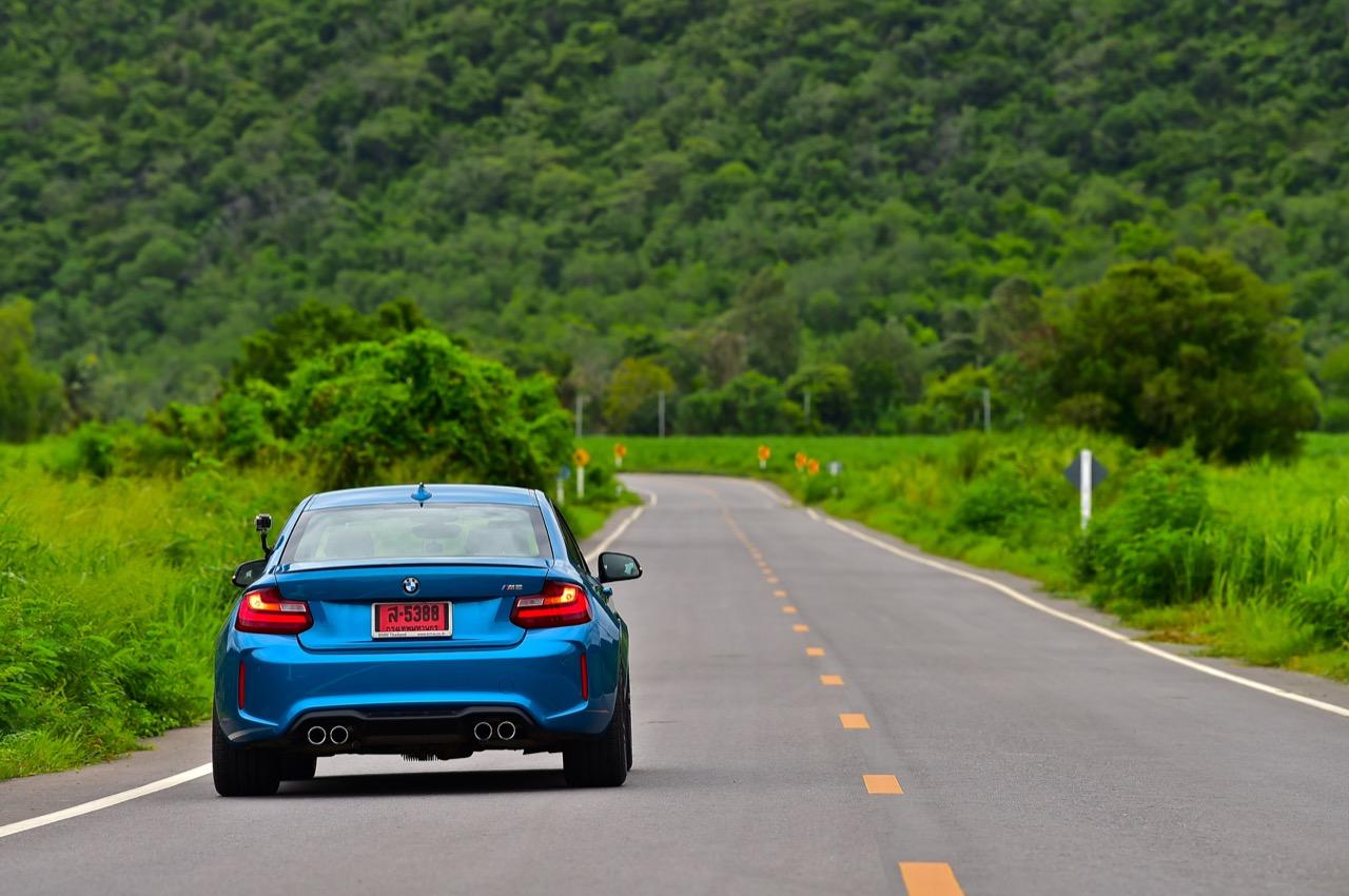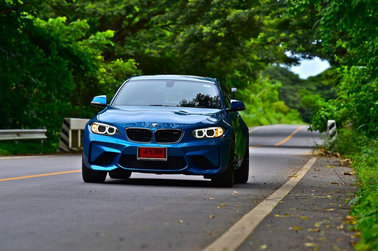ถนนเล็กๆ แถบปากน้ำปราณไปจนถึงอุทยานสามร้อยยอด เจ้า M2 ก็ยังทำตัวเหมือนเดิมไม่เปลี่ยนแปลง นั่นก็คือทั้งแข็งขืนและแม่นยำ การถ่ายเทน้ำหนักอยู่ในเกณฑ์ที่ดีมาก ไม่ว่าจะหวดมาเต็มในโค้งหรือเบรกหนักๆ เพื่อลดความเร็วก็ไม่มีอาการซวนเป๋เซไปมา สมรรถนะด้านอัตราเร่งจาก 0-100 ทำได้ 4.5 วินาที ช้ากว่า M4 นิดเดียวเท่านั้น ความเร็วสูงสุดเป็นเรื่องอันตรายไม่ควรขับให้ถึงขอบเขตจำกัดด้วยความเร็วที่สูงมากขนาดนั้น (250 กิโลเมตรต่อชั่วโมง และ 280 กิโลเมตรต่อชั่วโมงด้วยแพ็กเก็จ M-Driver Package ซึ่งจะปลดล็อกความเร็วให้ขยับไปใกล้ 300 กิโลเมตรต่อชั่วโมง! เป็นเครื่องยนต์และระบบเกียร์ที่สมบูรณ์แบบและมีกำลังมากพอที่จะฟรีทิ้งเมื่อออกตัวเร็วๆ ด้วยเกียร์ 2 แรงบิด 500 นิวตันเมตร น้อยกว่า M4 ที่ทำได้ 550 นิวตันเมตร แต่พอขับแล้วแทบไม่รู้สึกถึงความแตกต่าง ที่ชอบมากก็คือเสียงท่อและเสียงเครื่องยนต์ทำงานในรอบสูง เป็นความชอบที่ต้องแลกด้วยอาการซดเชื้อเพลิงแต่ก็ยอมเพราะมันสุดจริงๆ