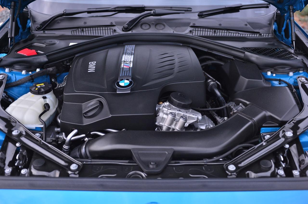 ใต้ฝากระโปรงเป็นที่อยู่ของขุมกำลังมหากาฬ 6 สูบเรียง เป็นเครื่องยนต์บล็อกเดียวกับ M235i ที่มีไส้ในมาจากรถ M4 กรองอากาศที่ปรับแต่งให้โล่งขึ้น อ่างน้ำมันเครื่องกับปั๊มของ M4 ป้องกันอาการเครื่องยนต์เป็นไข้ตัวร้อนได้ดี แม้จะอัดกันหนักๆ ตั้งแต่เช้าจดเย็น ลูกสูบ ปลอกสูบ แบร์ริ่งก้านสูบก็นำมาจากรถ M4 ฟังก์ชั่น Over Boost ของเทอร์โบประสิทธิภาพสูงแบบ Twin Scroll เพิ่มแรงบิดช่วงปลายเอาไว้ดูดติดท้ายซุปเปอร์คาร์มากถึง 35 นิวตันเมตร รอบเครื่องยนต์สูงสุดถูกจำกัดเอาไว้แค่ 7,000 รอบต่อนาที ระบบลดอุณหภูมิไอดีหรืออินเตอร์คูลเลอร์ยกมาทั้งยวงจาก M4 หม้อน้ำและระบบระบายความร้อนมีขนาดใหญ่ขึ้น แม้จะออกแบบให้สปอยเลอร์หน้ามีช่องรับอากาศที่ใหญ่โตเพื่อระบายความร้อนให้เครื่องยนต์ แต่แรงต้านอากาศของ M2 กลับลดลง 35%