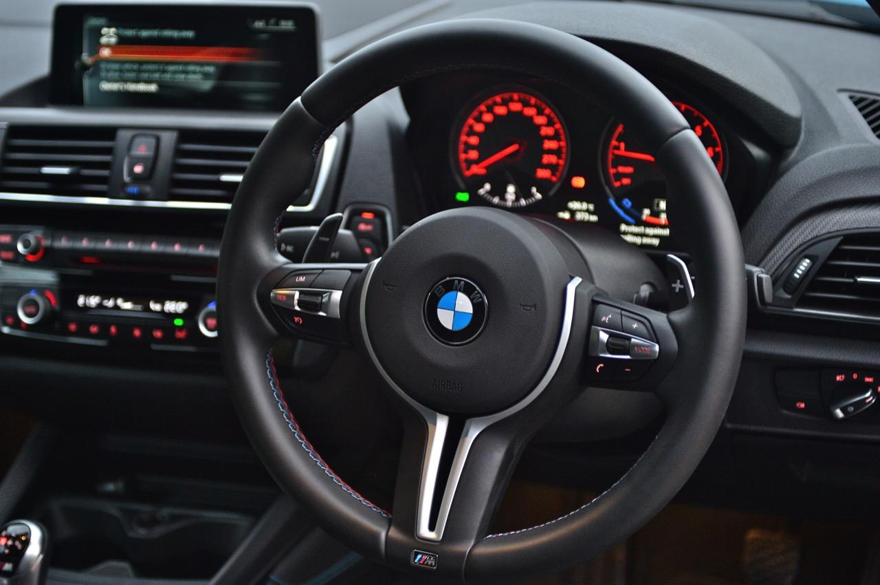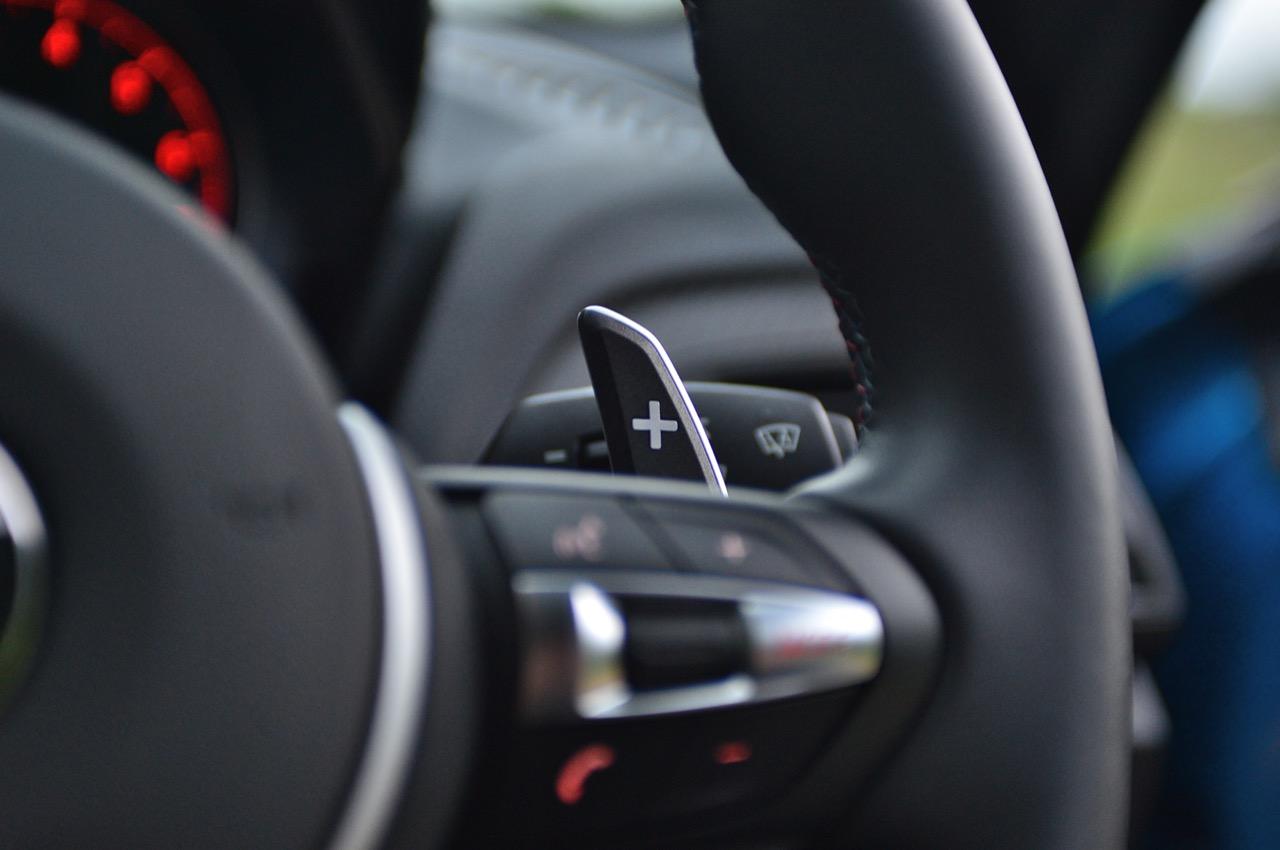 พวงมาลัย M แบบ 3 ก้านรอบวงเย็บเดินตะเข็บด้วยด้ายลาย M แป้น Paddle Shift เรียวบางและมีขนาดที่แตกต่างจากแพตเดิลปกติของ Series-2 หนังแท้ที่ใช้หุ้มรอบวงทำให้จับยึดได้ถนัดมือ ลูกแอร์แบ็กทรงกลมพร้อมปุ่มแตร เป็นพวงมาลัยที่ยกมาจาก BMW M4 อีกเช่นกัน