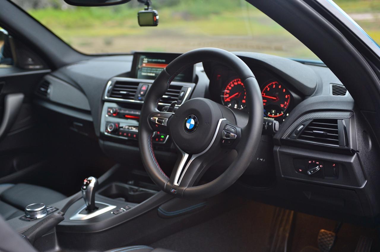 ด้วยประสิทธิภาพแบบรถแข่งที่ถูกนำมาปรับแต่งให้สามารถใช้งานได้ในชีวิตประจำวันสำหรับเศรษฐีชอบสนุก แชสซีที่ดีผสานระบบควบคุมที่ไม่สลับซับซ้อนเท่ากับ M4 ทำให้ M2 ดูดิบกว่านิดๆ เป็นรถสปอร์ตคันเล็กที่เร็วอย่างเหลือเชื่อ ตัวถังแกร่งและตอบสนองไวกว่า M235i แต่ก็แอบยืดหยุ่นบ้างอย่างพอเพียง ยาง Pilot Super Sport ที่ผ่านการทดสอบมาเป็นอย่างดีในช่วงของการพัฒนาทำให้ยางรุ่นนี้กลายเป็นยางติดรถมาจากโรงงานเหมือนกับ M3 และ M4 แต่ก็ต้องระวังหลุมบ่อรอยแตกมุมเอียงให้ดีๆ รวมถึงการจอดที่ต้องคอยมองปูนกั้นที่จอดรถเพราะสปอยเลอร์หน้านั้นเตี้ยเกือบจะถึงพื้น การใช้งานจริงในชีวิตประจำวันคุณสามารถขับมันได้ทุกวันเท่าที่ต้องการไม่เหมือนซุปเปอร์คาร์ที่ชอบจุกจิกกวนใจจนกลายเป็นรถขับเล่นสำหรับวันหยุด แถมค่าบำรุงรักษาก็แพงกว่ารถ BMW รุ่นปกติไม่มาก ทำให้เป็นรถที่น่าสนใจอีกคันเมื่อเปรียบเทียบกับ Mercedes Benz C-Coupe C43 AMG