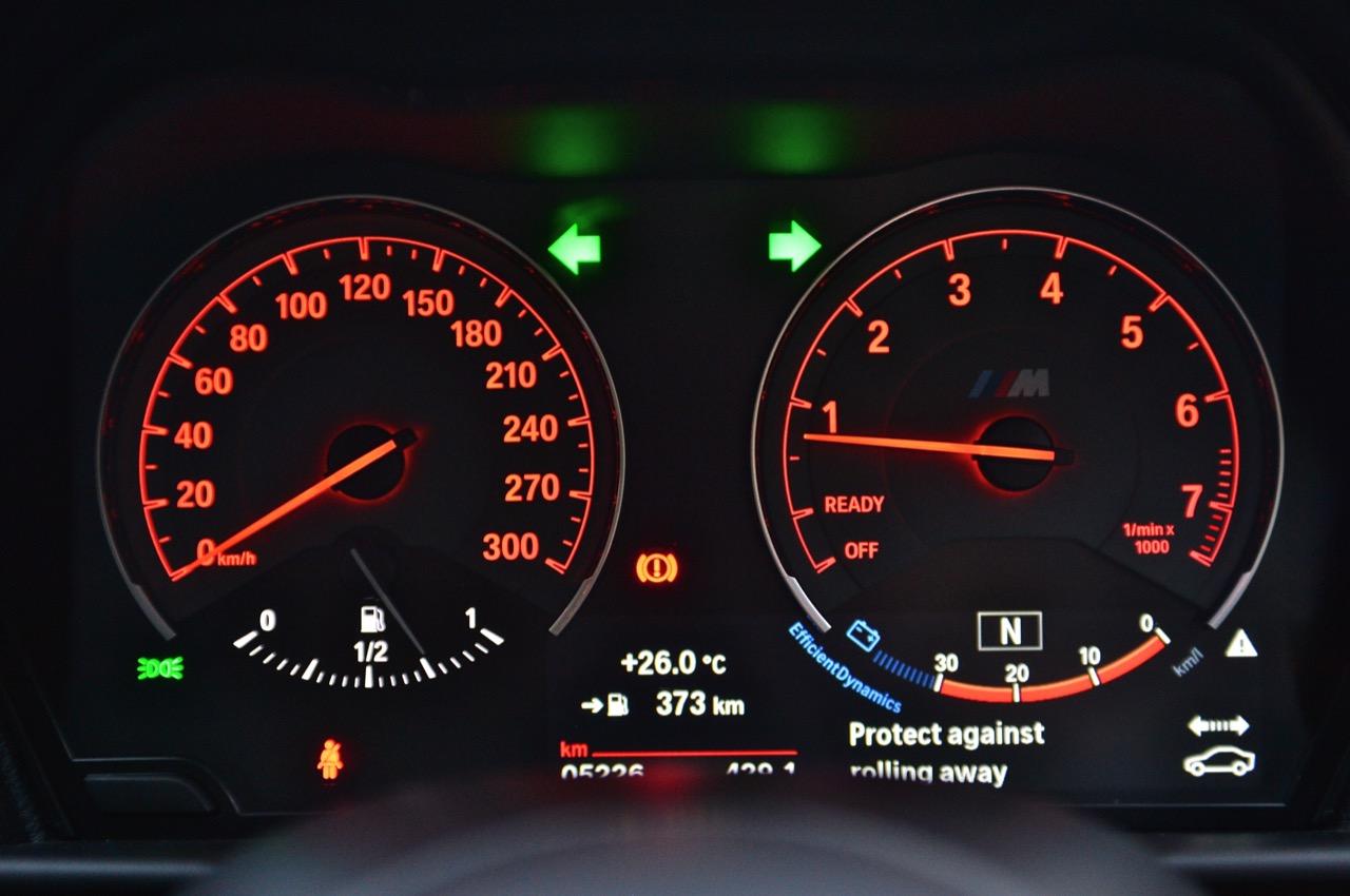มาตรวัดแบบเข็มสไตล์คลาสสิกของรถ M-Car มีขนาดกะทัดรัด มาตรวัดรอบเครื่องยนต์ทางด้านขวาแปะตรา M ใต้มาตรวัดรอบเป็นจอภาพ MID multi information display แสดงอุณหภูมิภายนอก ระดับเชื้อเพลิงในถังต่อระยะทางที่วิ่งถึง ทริปมิเตอร์ A/B การชาร์จไฟเข้าแบตฯ ของระบบ Auto Start/Stop และอื่นๆ มาตรวัดความเร็วด้านซ้ายมีตัวเลขมาให้ถึง 300 กิโลเมตร ทรงแบบกระบอกกับครอบมาตรวัดขนาดเล็กดูแปลกตาแต่ยกมาจาก Series-2 ทั้งยวง