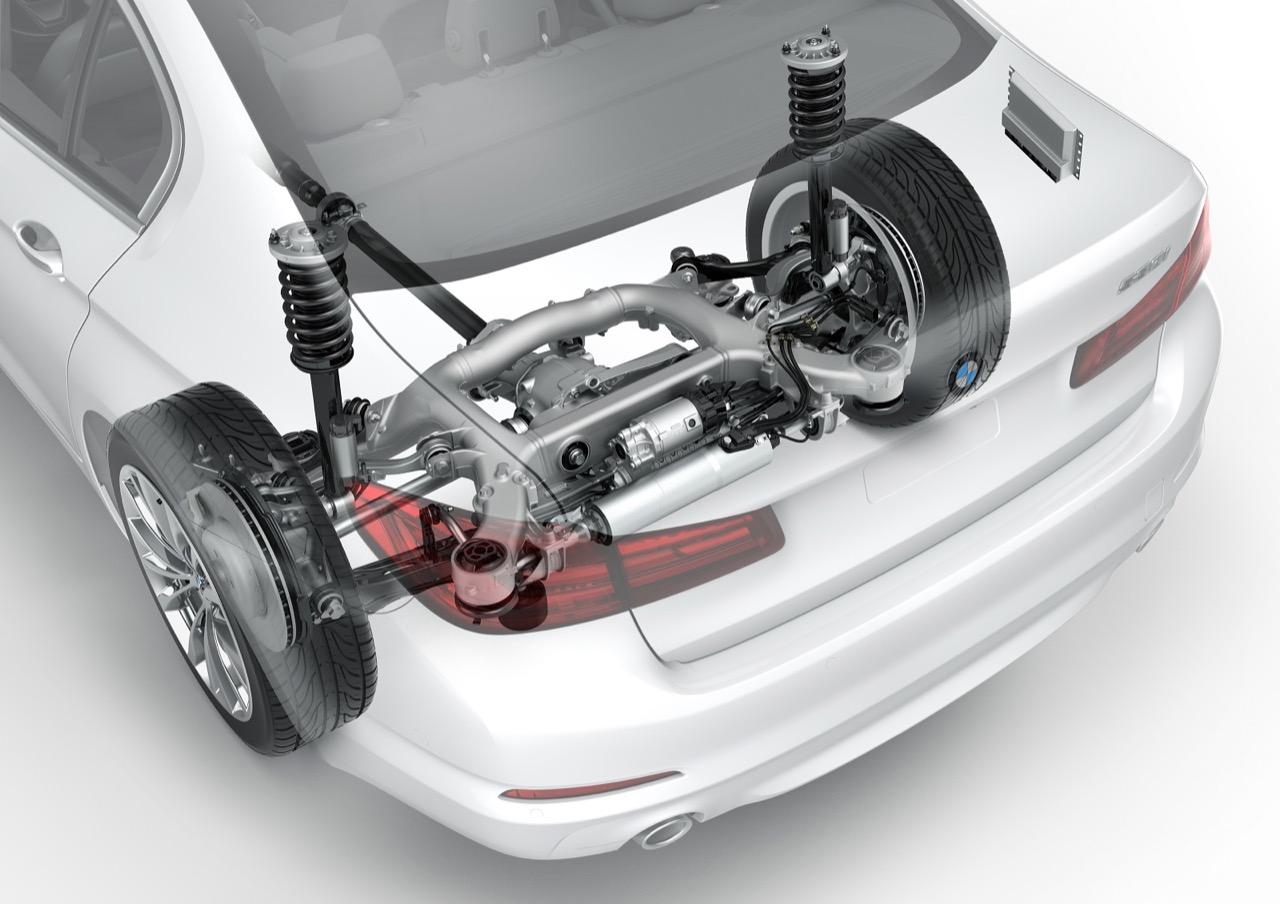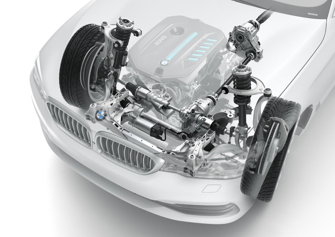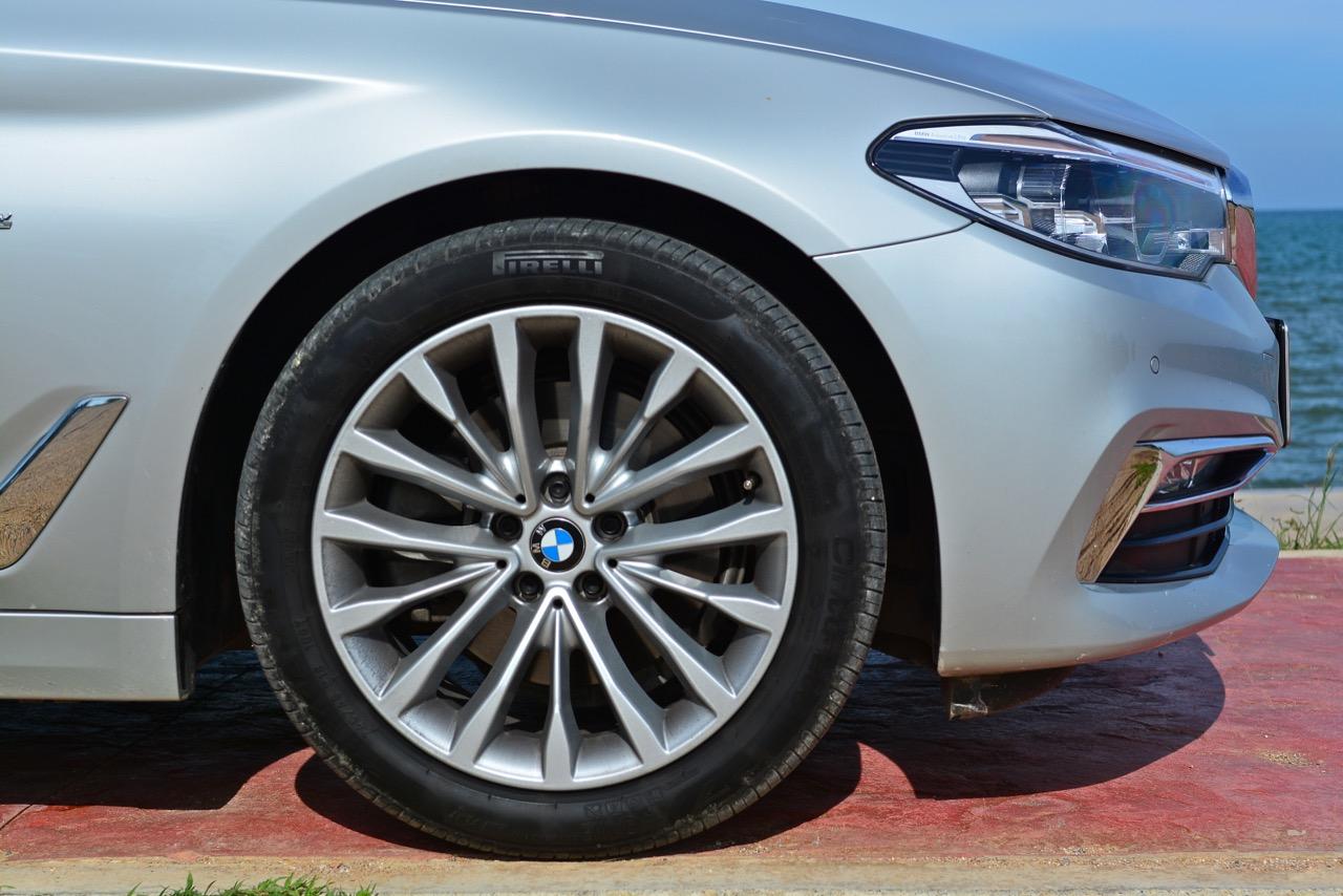 Series-5 รุ่น 520d Luxury ใช้ระบบรองรับหรือช่วงล่างด้านหน้าแบบดับเบิ้ลวิชโบน สปริง โช็คอัพและกันโคลง ส่วนด้านหลังเป็นแบบมัลติลิงค์ สปริง โช็คอัพและกันโคลง ปีกนกและแขนยึดทำจากอลูมินั่มอัลลอยทั้งหน้าและหลัง ทำให้น้ำหนักใต้สปริงลดลง ส่งผลให้ช่วงล่างทำงานเต็มประสิทธิภาพ โดยมีการปรับการทำงานของโช็คอัพให้ส่งถ่ายความนิ่มนวลได้มากกว่า Series-5 F10 ส่วนล้อและยางของ 520d Luxury ยัดอัลลอยขนาด 18 นิ้ว แบบ W-spoke พร้อมยางสปอร์ตไซส์ 245/45 R18 100Y จากแบรนด์ Pirelli รุ่น Cinturato P7