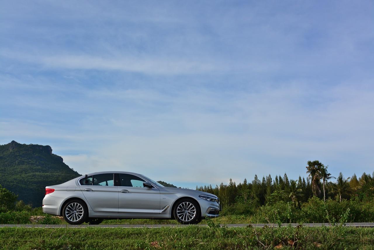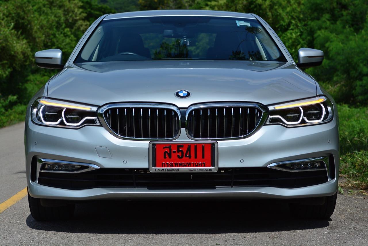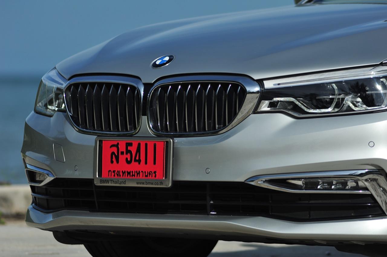 รุ่นเก่าผ่านไปถึงเวลาของรถรุ่นใหม่อย่าง Series-5 G30 รถทดสอบในอาทิตย์นี้คือซาลูนหรู 4 ประตู รุ่น New Series-5 520d Luxury ประกอบต่างประเทศ เมื่อลองส่องดูทั่วทั้งคันก็จะพบว่าทรวดทรงองค์เอวของ BMW ยุคใหม่นั้นมีความสวยงามลงตัวแตกต่างจากรุ่นที่แล้วไม่มากทั้งขนาดและน้ำหนัก งานออกแบบเรือนร่างอันเข้มข้นของ New Series-5 ใช้แนวคิด BMW Efficient Lightweight เน้นการใช้วัสดุน้ำหนักเบาอย่างอลูมิเนียมและเหล็กกล้าที่มีความทนทานสูงแต่น้ำหนักเบามาใช้เป็นเปลือกตัวถังและแชสซี New Series-5 รุ่น 520d จึงมีน้ำหนักเบากว่ารุ่นก่อนถึง 115 กิโลกรัม ตัวถังถูกออกแบบให้มีจุดศูนย์ถ่วงที่ต่ำ กระจายน้ำหนักอย่างสมดุล 50/50 และมีแรงเสียดทานอากาศต่ำที่สุดในรถระดับเดียวกัน ส่งผลให้การขับขี่มีความคล่องตัว เข้ากับความนุ่มสบายของระบบรองรับที่เซตมานุ่มขึ้นกว่าเดิมเล็กน้อย ทีมวิศวกรของ BMW ทำงานอย่างหนักเพื่อลดค่าสัมประสิทธิ์แรงต้านอากาศลง 10% เมื่อเทียบกับรุ่นก่อนหน้า โดยมีค่าสัมประสิทธิ์แรงต้านอากาศอยู่ที่ 0.22 เป็นมาตรฐานใหม่สำหรับรถยนต์ซาลูนขนาดกลาง