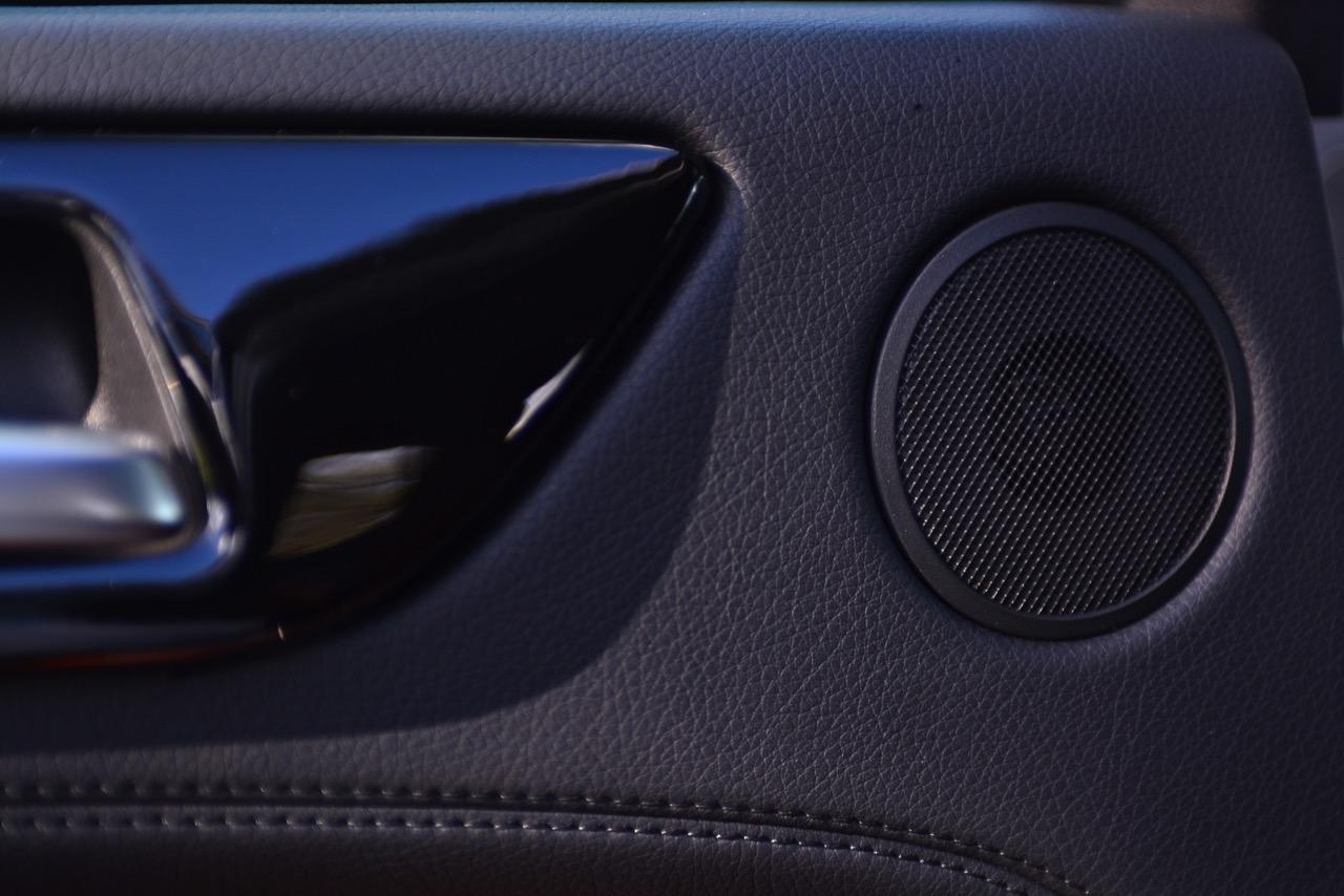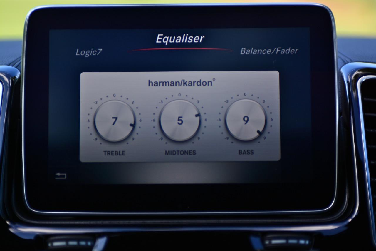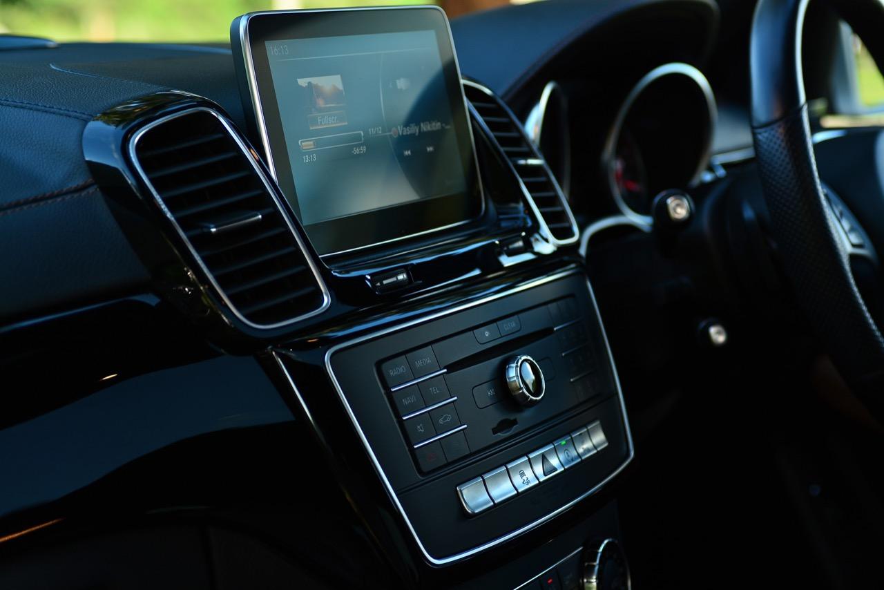 สำหรับเครื่องเสียงของ Mercedes Benz GLE350d เป็นชุดลำโพงจาก harman kardon ไม่ใช่ Burmester® high end 3D surround sound system เหมือนอย่างที่คิดเอาไว้แต่แรก คุณภาพของเสียงเพลงที่ขับขานผ่านลำโพงมีความคมชัดใช้ได้ แต่มิติของความหนักแน่นยังคงเป็นรอง Burmester® อยู่นิดๆ การเล่นเพลงผ่าน USB / CD / DVD / ipod ซึ่งควบคุมด้วยอุปกรณ์ Mercedes Benz Comand Controller สะดวกง่ายดายทั้งการเข้าหรือออกจากเมนู การปรับตั้งเสียงและการรับชมภาพผ่านจอมอนิเตอร์กลางขนาด 8 นิ้ว รวมถึงการปรับตั้งค่าของระบบขับเคลื่อนที่มองผ่านจอภาพมอนิเตอร์ที่มีความคมชัดสูง
