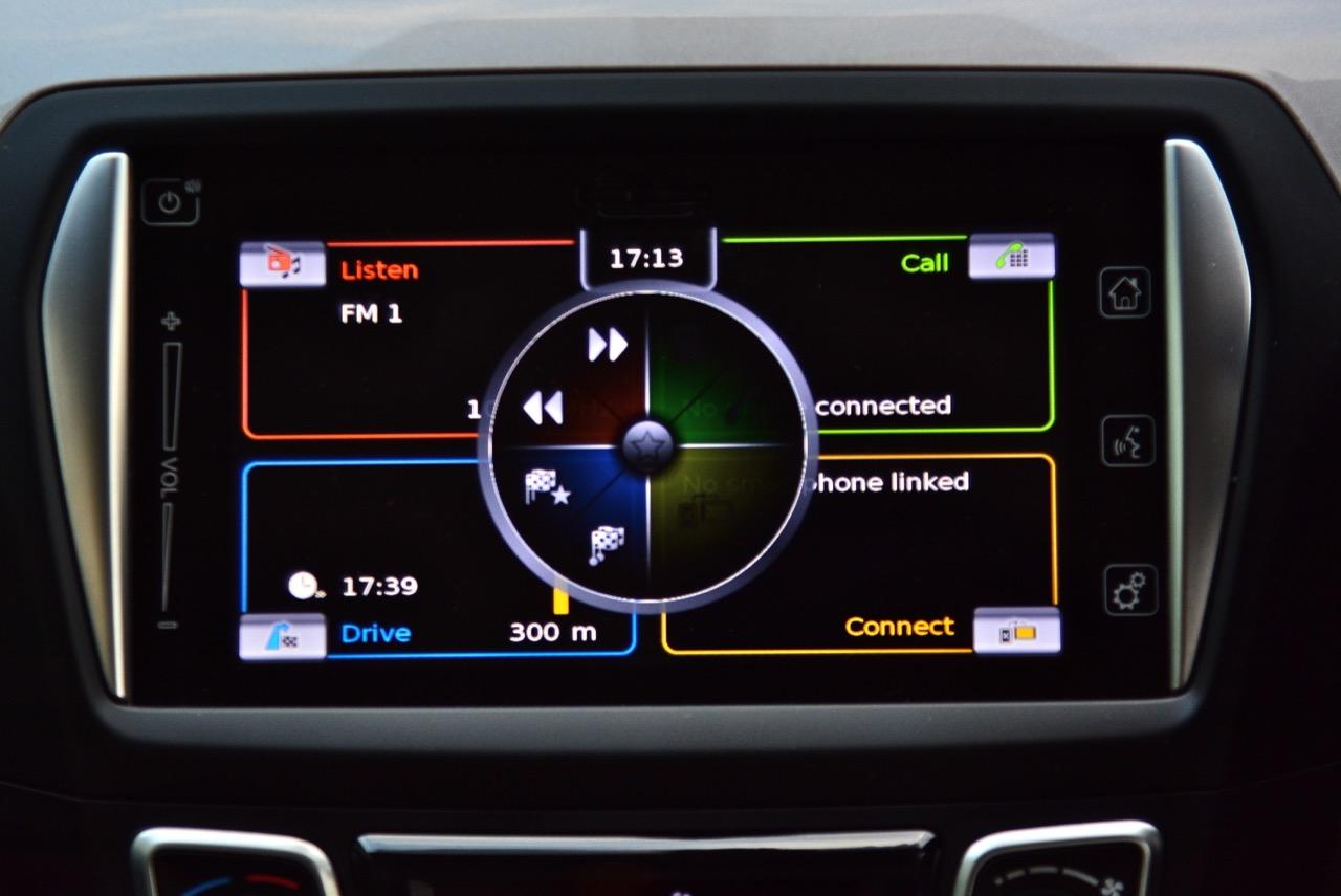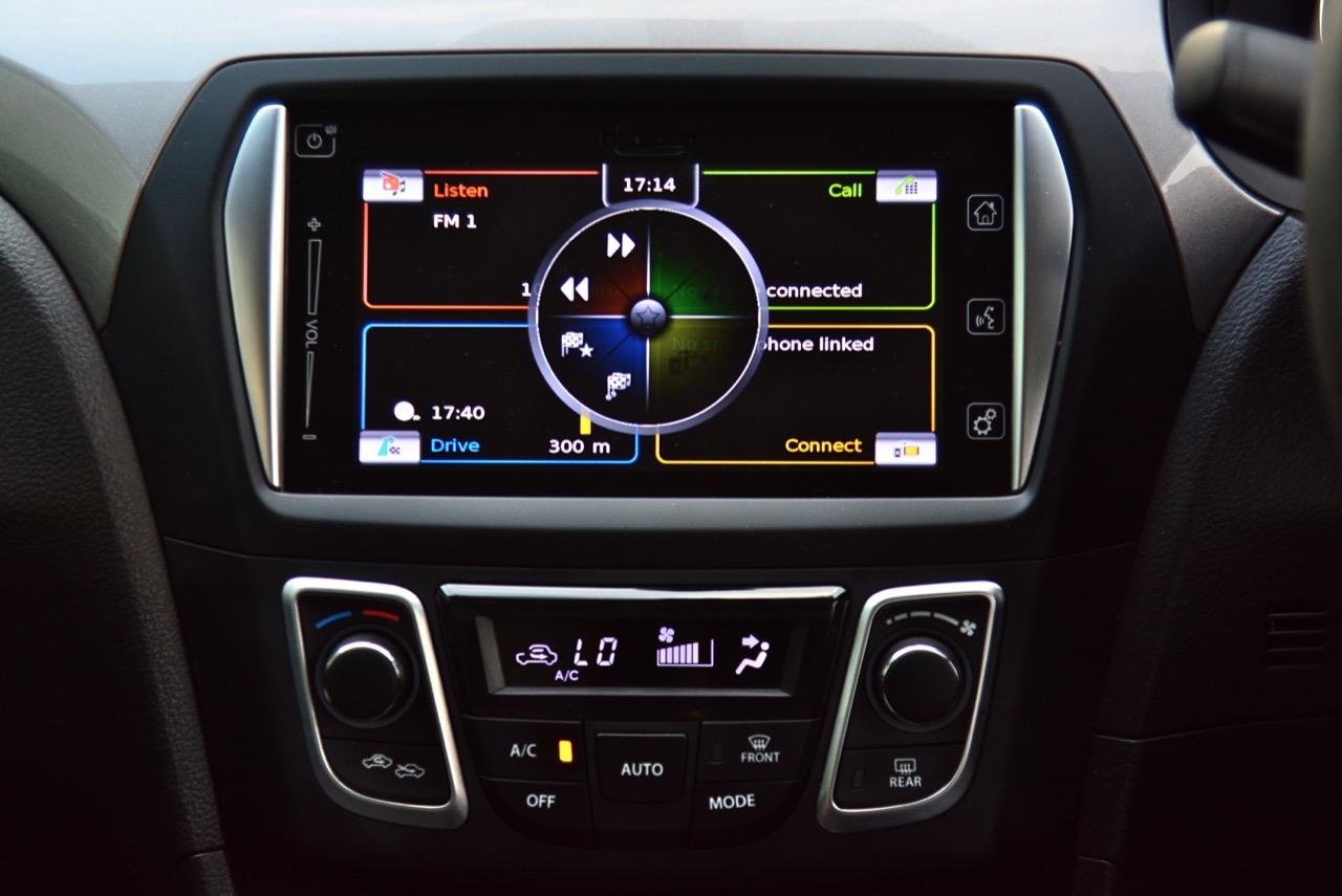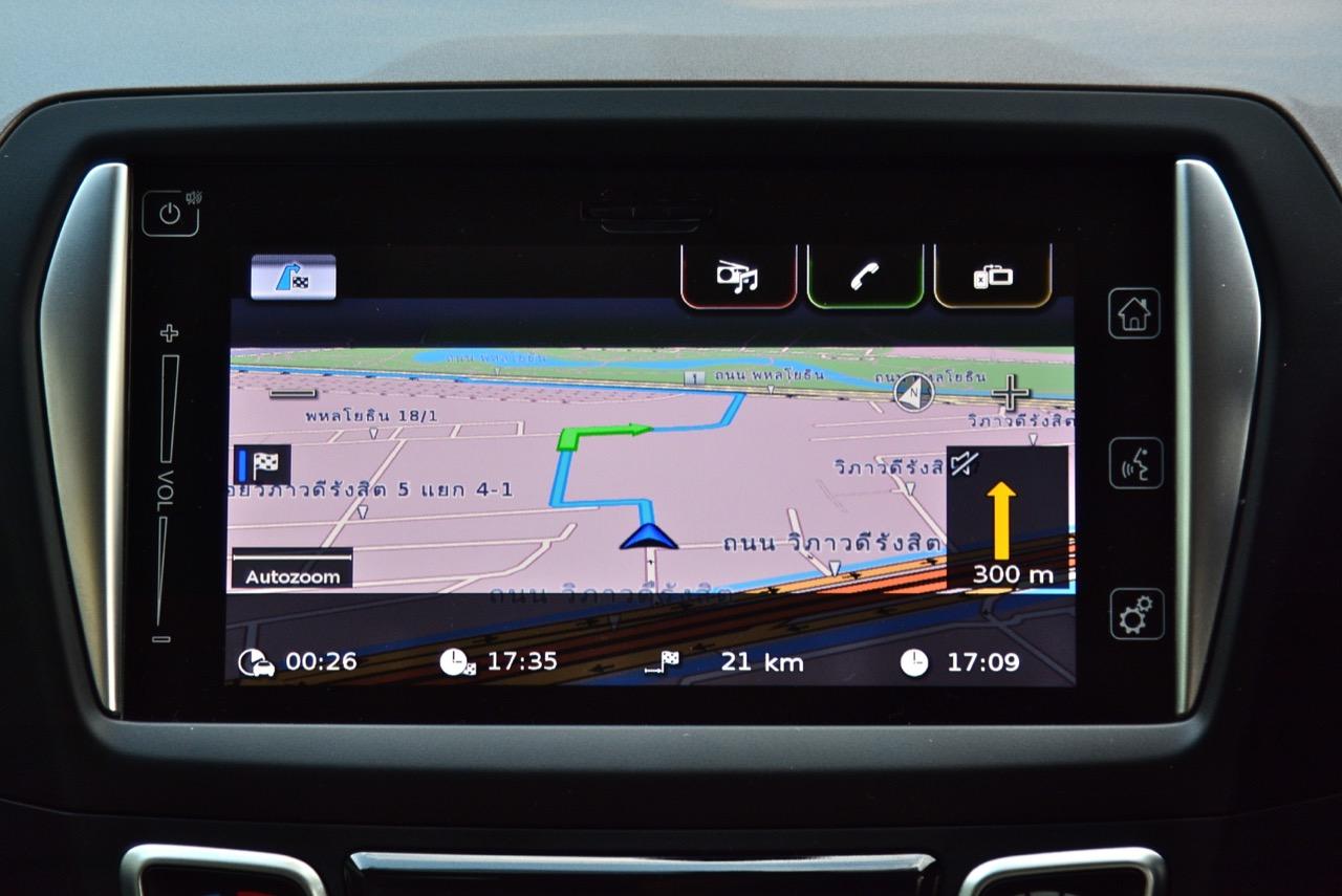 จอมอนิเตอร์แสดงผลส่วนกลางขนาด 7 นิ้ว สั่งงานด้วยระบบสัมผัส รองรับการทำงานด้วยการเชื่อมต่อกับ USB AUX i-Pod รวมถึงภาครับคลื่นวิทยุ AM/FM ตามด้วยระบบนำทาง และกำหนดพิกัดด้วยดาวเทียมที่ค่อนข้างละเอียดคมชัด ใช้งานง่าย ด้วยเมนูภาษาไทย จอมอนิเตอร์แสดงผลส่วนกลางยังรองรับการใช้งาน Apple CarPlay พร้อมระบบสั่งงานด้วยเสียง ควบรวมกับการเชื่อมต่อโทรศัพท์เคลื่อนที่ Bluetooth