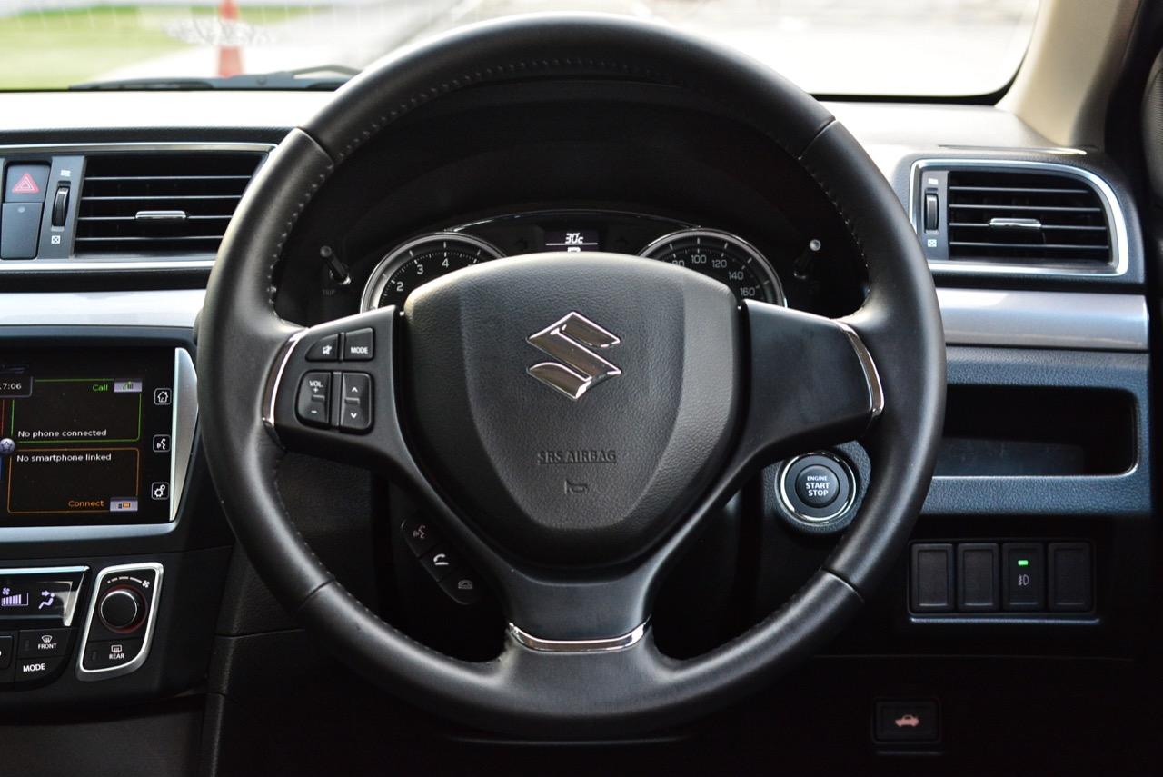 ความรู้สึก และพวงมาลัยของ Ciaz RS คล้ายกับ Swift อยู่บ้างในด้านของการหมุนและน้ำหนักที่ทดมาให้จากโรงงาน ส่วนระบบห้ามล้อ จากความที่ใช้เบรกแบบผสมด้านหน้าเป็นดิสก์เบรก ส่วนด้านหลังยังคงใช้เบรกแบบดรัม จึงไม่ควรที่จะห้อมาแบบเต็มเหนี่ยวแล้วใช้เบรกหนักๆ ลึกๆ การใช้งานด้วยการขับในย่านความเร็วเดินทางที่ถูกกฎหมายพร้อมๆ ไปกับการทิ้งระยะให้ห่างจากรถคันข้างหน้าพอสมควรเมื่อวิ่งอยู่บนไฮเวย์จะเป็นการขับขี่ใช้งานอีโคคาร์ที่ถูกต้อง เบรกเอาอยู่แต่ต้องไม่ใส่มาแบบจัดเต็ม แค่ขับแบบปกติก็จะสามารถใช้งานเจ้า Suzuki Ciaz RS ได้อย่างสบายอุรา