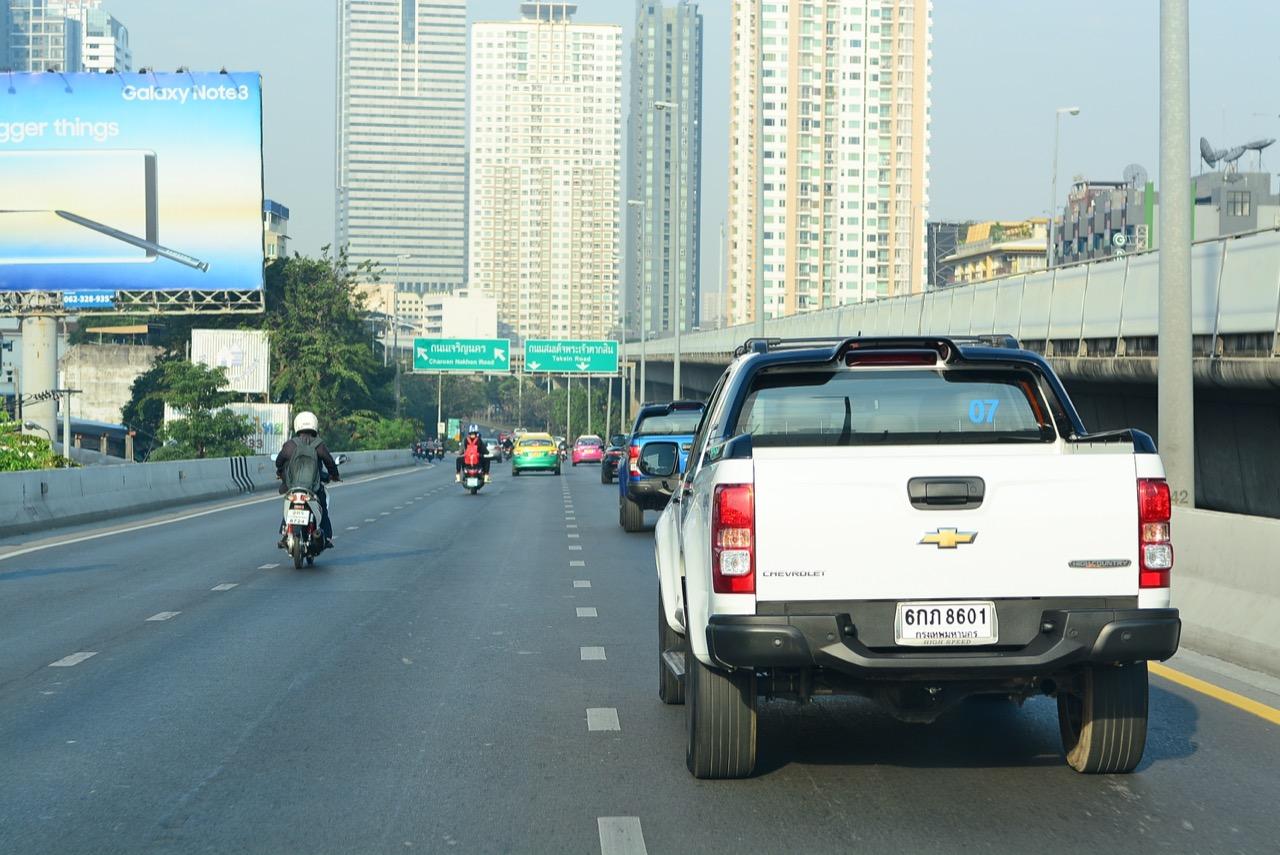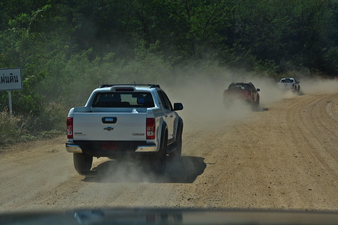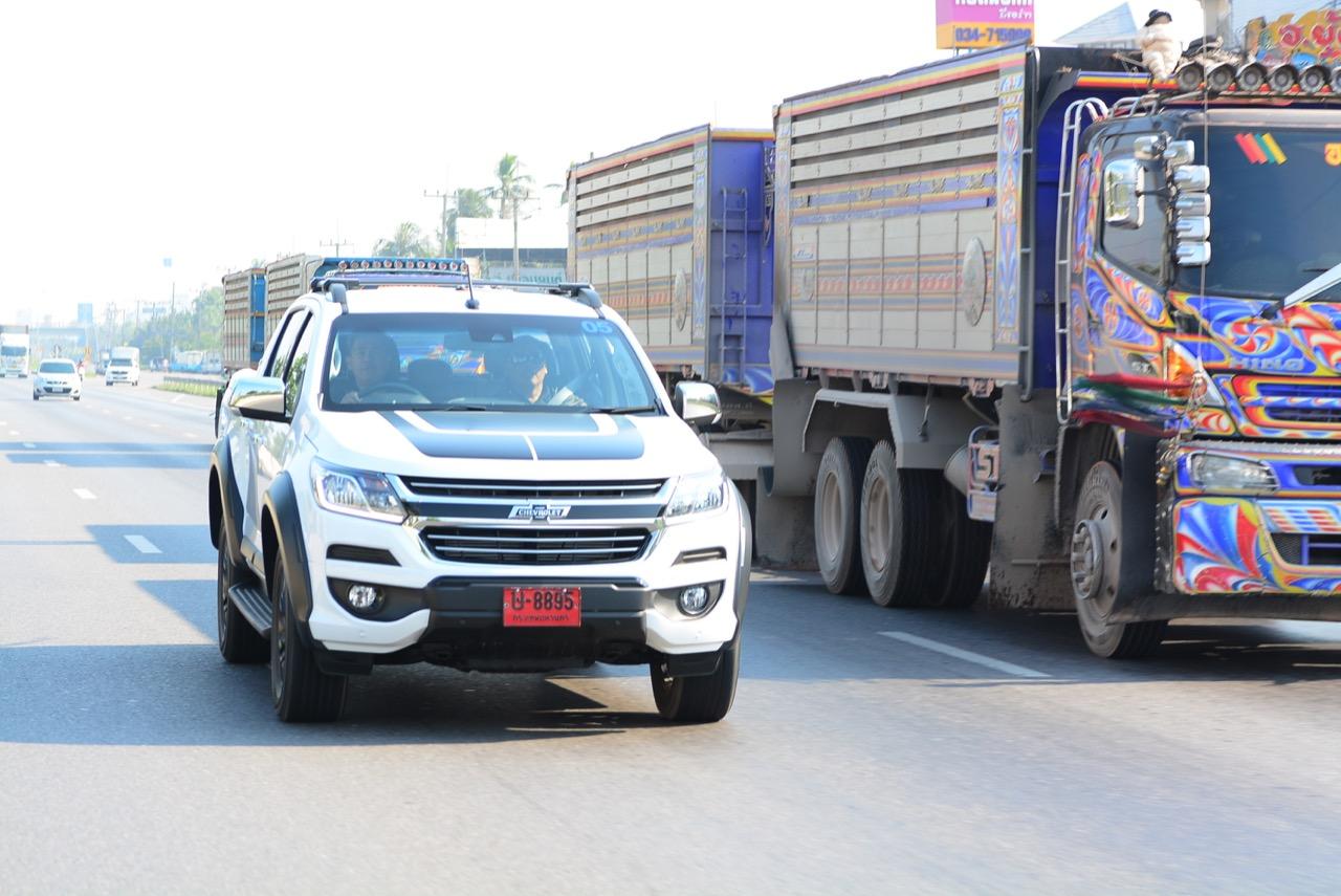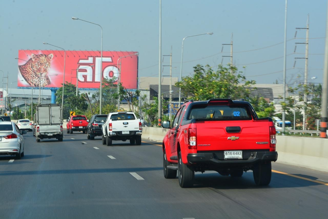 จากพระราม 2 จนมาถึงทางแยกคลองโคน New Colorado 2.5 High Country Centennial Edition วิ่งบนไฮเวย์ได้อย่างมั่นคง แม้จะตัวสูงโย่งแต่การปรับแต่งชุดกันสะเทือนใหม่ทำให้อาการโดยรวมดีขึ้นมาก เครื่องยนต์ 2.5 Duramax Diesel Turbo ส่งเสียงกระหึ่มดังสนั่นในรอบเครื่องเกิน 2,000 รอบต่อนาที มันคือเอกลักษณ์ของเครื่องดีเซลจากค่าย Chevy ที่ให้แรงบิดอย่างต่อเนื่องเมื่อระบบอัดอากาศทำงาน ชุดเทอร์โบแบบ Variable Geomety Turbo ซึ่งทำงานด้วยการแปรผันไปตามรอบของเครื่องยนต์ส่งถ่ายแรงบิดไปยังชุดส่งกำลัง 6 สปีดแบบแอคทีฟ อัตราทดในโหมดออโต้ (D) ต่อเนื่อง ไม่มีอาการกระตุกกระชาก ผิวถนนที่เป็นลอนหรือไม่เรียบในบางช่วงอาจสร้างปัญหาให้กับการควบคุมตัวรถที่ความเร็วสูงบ้างแต่ไม่มากนัก อาการโคลงน้อยลง การขับปิกอัพยกสูงที่มีกระแสลมเข้าเกี่ยวเนื่องทั้งลมที่หมุนวนบริเวณกระบะท้ายกับใต้ท้องรถ มวลน้ำหนัก 1.7 ตัน กับการปรับจูนช่วงล่างทำให้เมื่อขับที่ย่านความเร็วสูงไม่สร้างความเครียดมากนักหากผิวถนนอยู่ในสภาพปกติ