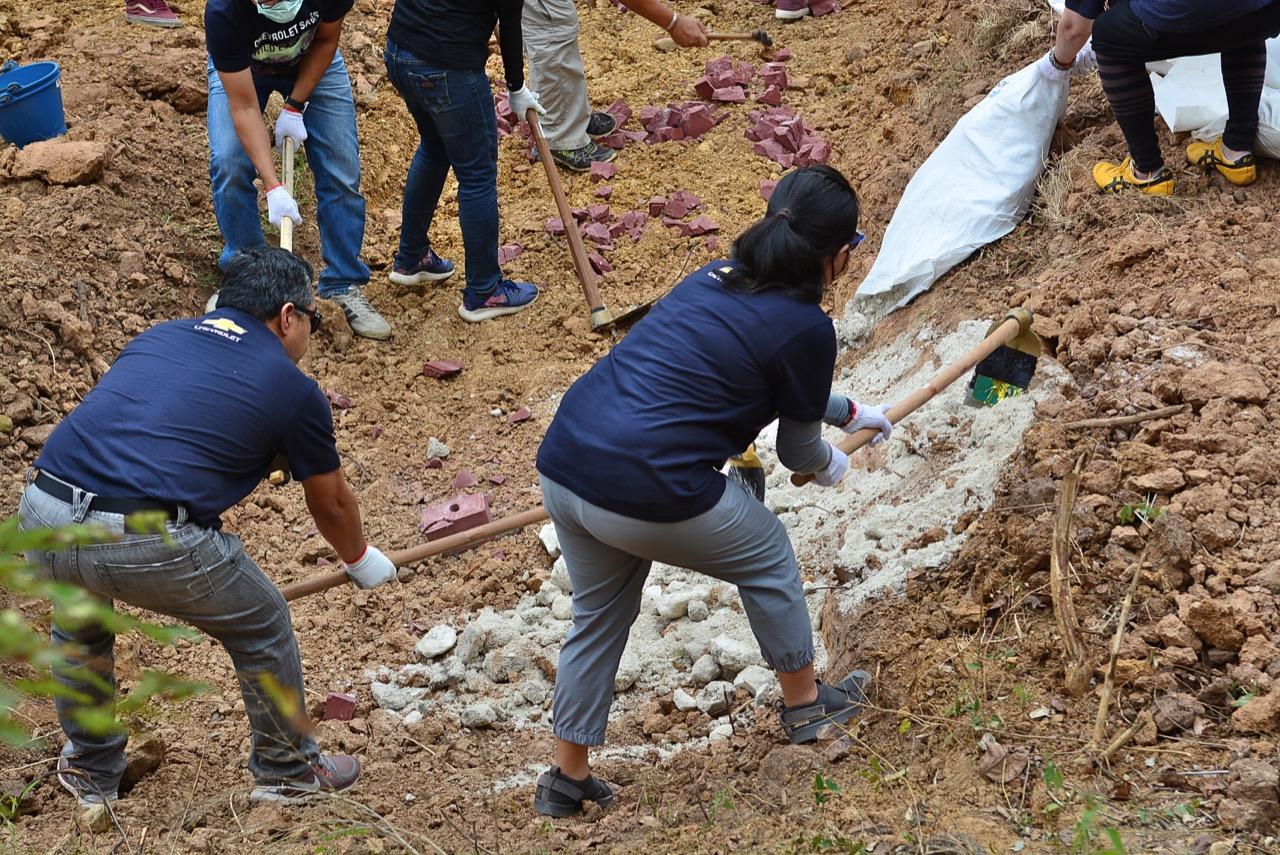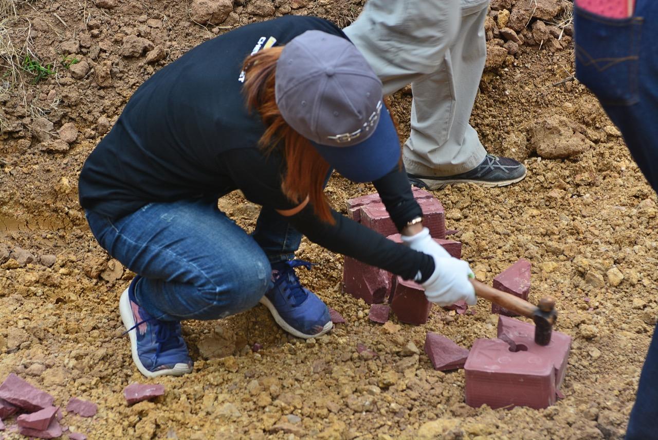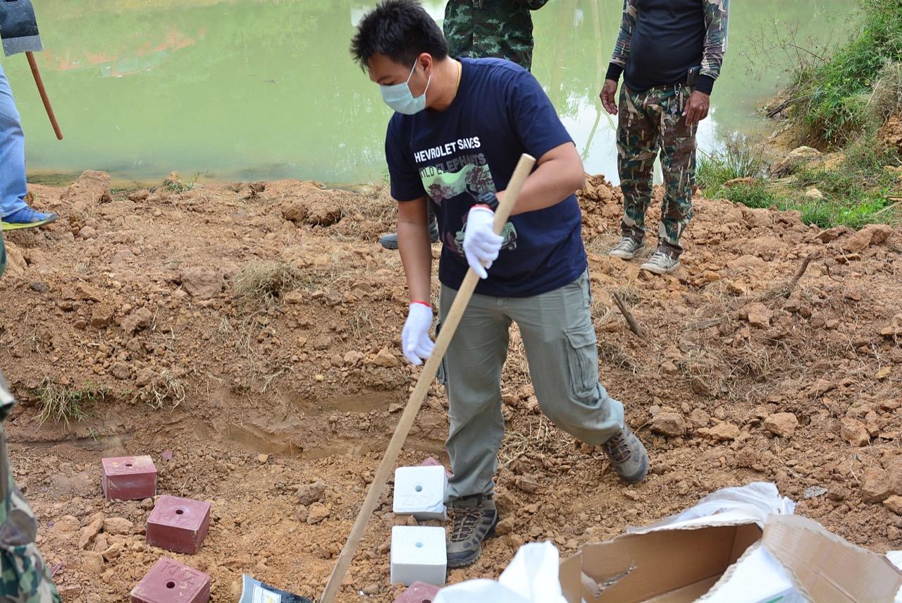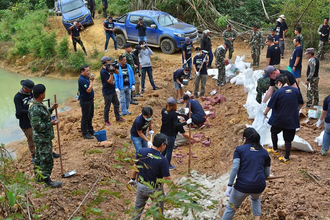 หลุมขนาดใหญ่ที่เจ้าหน้าที่ทหารและเจ้าหน้าที่ของหน่วยพิทักษ์อุทยานทที่ขุดรอสื่อมวลชนอยู่ในตำแหน่งหรืออยู่ในบริเวณเส้นทางหากินของช้างป่า หลุมยักษ์ที่ขุดเสร็จเรียบร้อยเมื่อเวลาผ่านไปไม่นานนัก หลังจากการร่วมแรงร่วมใจกันทำโป่งดินเทียมสำหรับช้างและสัตว์ป่า เช่น วัวแดง เก้งและกวาง โดยช่วยกันเทเกลือทะเลกับก้อนแร่ธาตุซึ่งเป็นสารอาหารที่จำเป็นสำหรับสัตว์ใหญ่ เจ้าหน้าที่ทหารช่วยกันกลบหลุมแล้วราดน้ำเพื่อเป็นตัวทำละลายให้เกลือแร่ซึมลงไปในดินสำหรับให้ช้างกิน