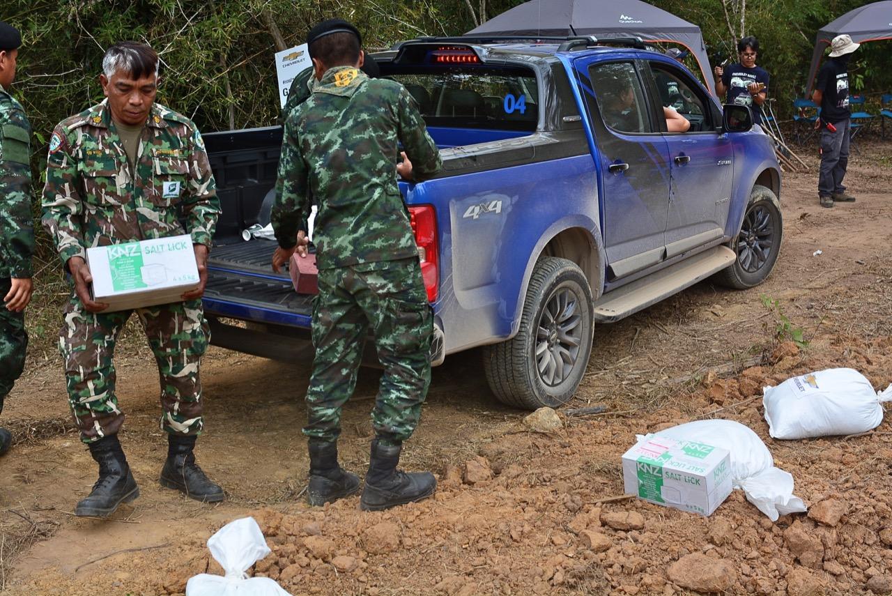 ไม่นานขบวนรถทดสอบทั้งหมดก็ขับเข้าสู่พื้นที่นาเกลือของชาวบ้าน การขนเกลือแร่เพื่อใช้ทำโป่งดินเทียมเริ่มต้นขึ้นและใช้เวลาไม่นานโดยบรรทุกกระสอบเกลือและแร่ธาตุที่จำเป็นสำหรับสัตว์ขนาดใหญ่อย่างช้างป่าแค่คันละ 200-300 กิโลกรัม หลังจากนั้นก็มุ่งหน้าเข้าสู่อุทยานแห่งชาติป่าละอูเพื่อเริ่มต้นการทำโป่งเทียมในช่วงบ่าย